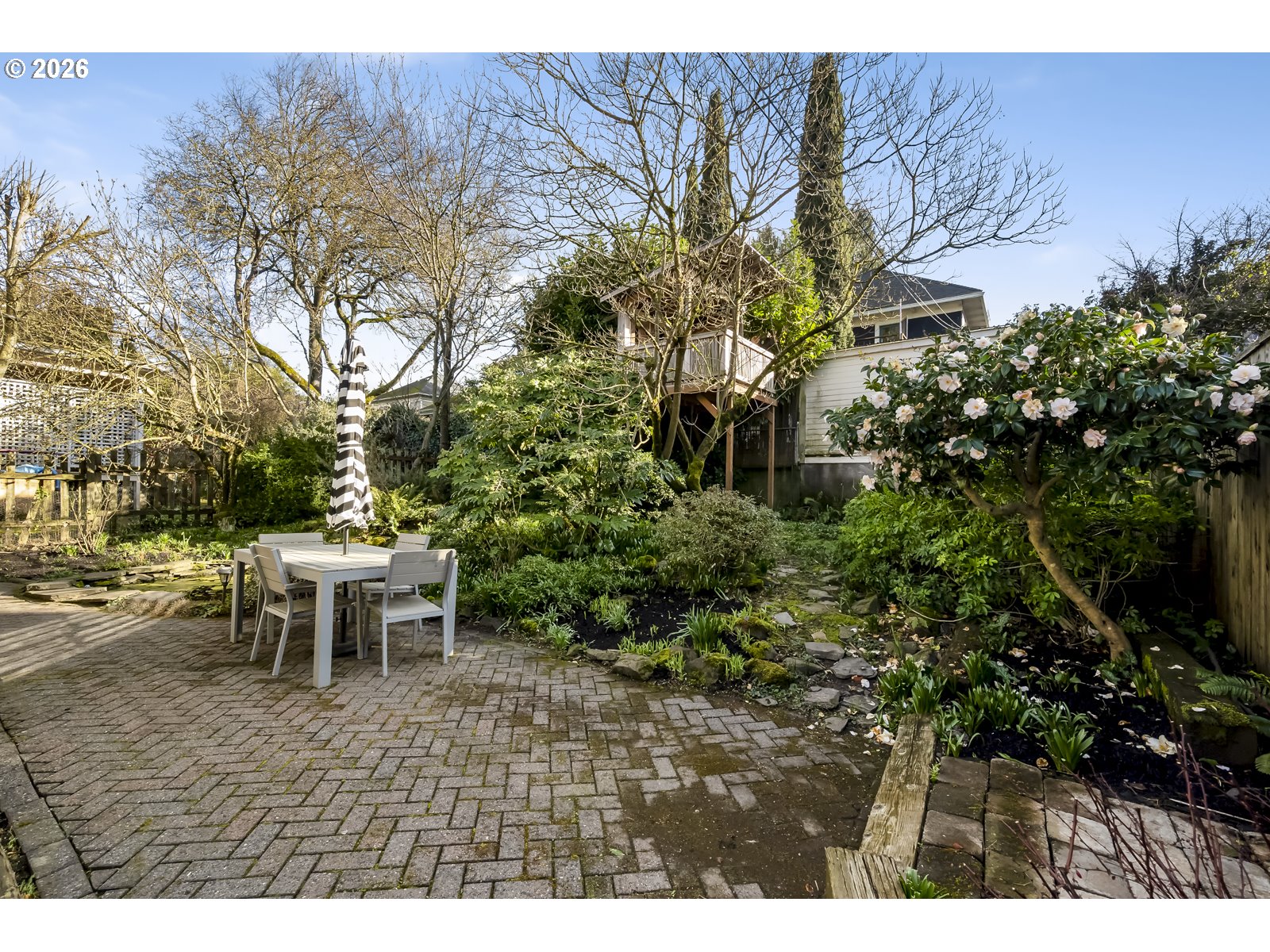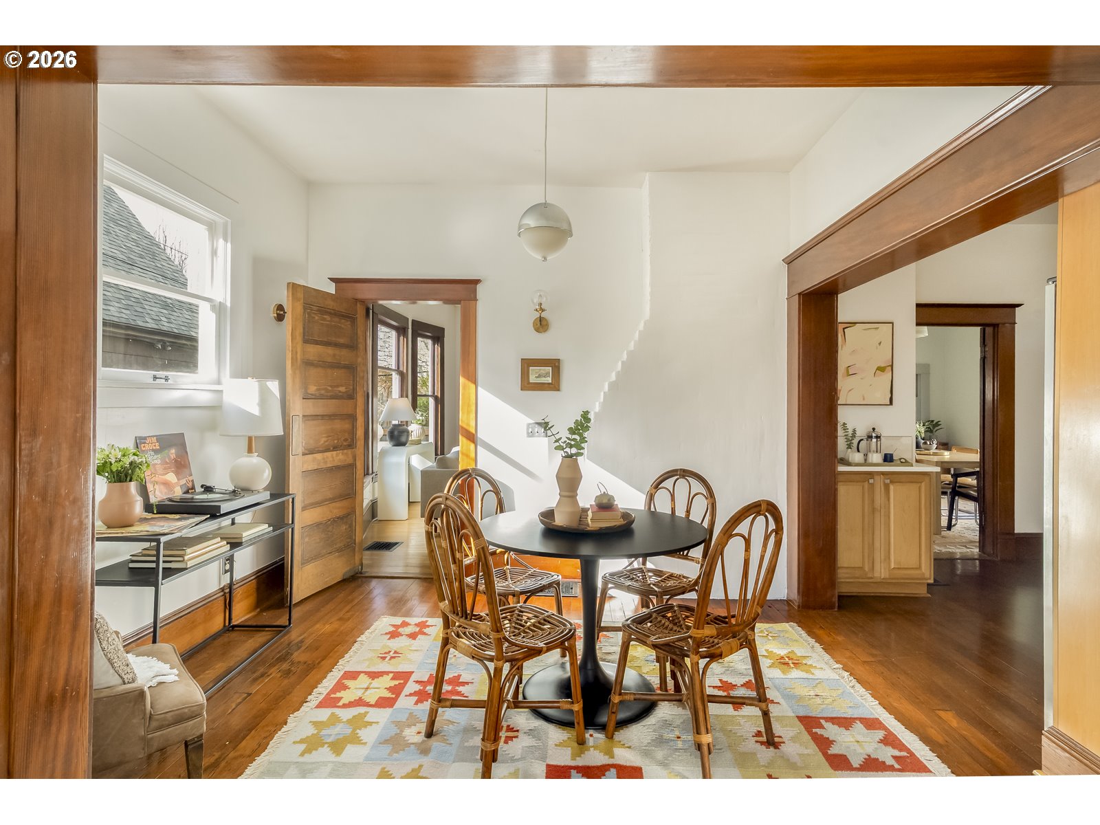 The Kerns neighborhood hums with creative energy. Named one of the “coolest neighborhoods” in the U.S. in 2024, it’s a true playground for food lovers — a place to sip, savor, and wander — with this charming old home right at its heart. Opulent umbrella leaves drape the entry, welcoming you inside to tall ceilings and sunlit rooms that unfold one into the next. Multiple living spaces invite lounging and gathering, following the light as it moves gracefully through the day. The kitchen is spacious and inviting, yet can be closed off from the dining and living rooms for the cook who prefers a little privacy. French doors open to a serene, zen-like garden patio, complete with a pond with visiting springtime ducks. There’s even a tree fort waiting for a young adventurer. Upstairs, four bedrooms spiral from the landing, including a generously sized primary with room for all your favorite pieces. A blend of vintage lighting, marble tile, slate, and warm fir floors creates an eclectic tapestry of texture & creativity. Below, a versatile space with its own private entrance offers endless possibility — a guest retreat, teen haven, studio, or work-from-home sanctuary. The attached garage is perfect for mopeds + bikes. With a walkability score of 94, cycling friendly streets & just a 5 mins walk to mass transit convenience is effortless~ Imagine starting your morning with coffee and donut at Le Crema, spending the afternoon beneath the trees at Laurelhurst Park, catching a film at the beloved 1923 Laurelhurst Theater, and ending the evening with wine and small bites at Cheese & Crack unless you feel torn between that and Ken's Artisan Pizza. This is more than a home — it’s an invitation to settle into a vibrant neighborhood that feels like a small-town community.