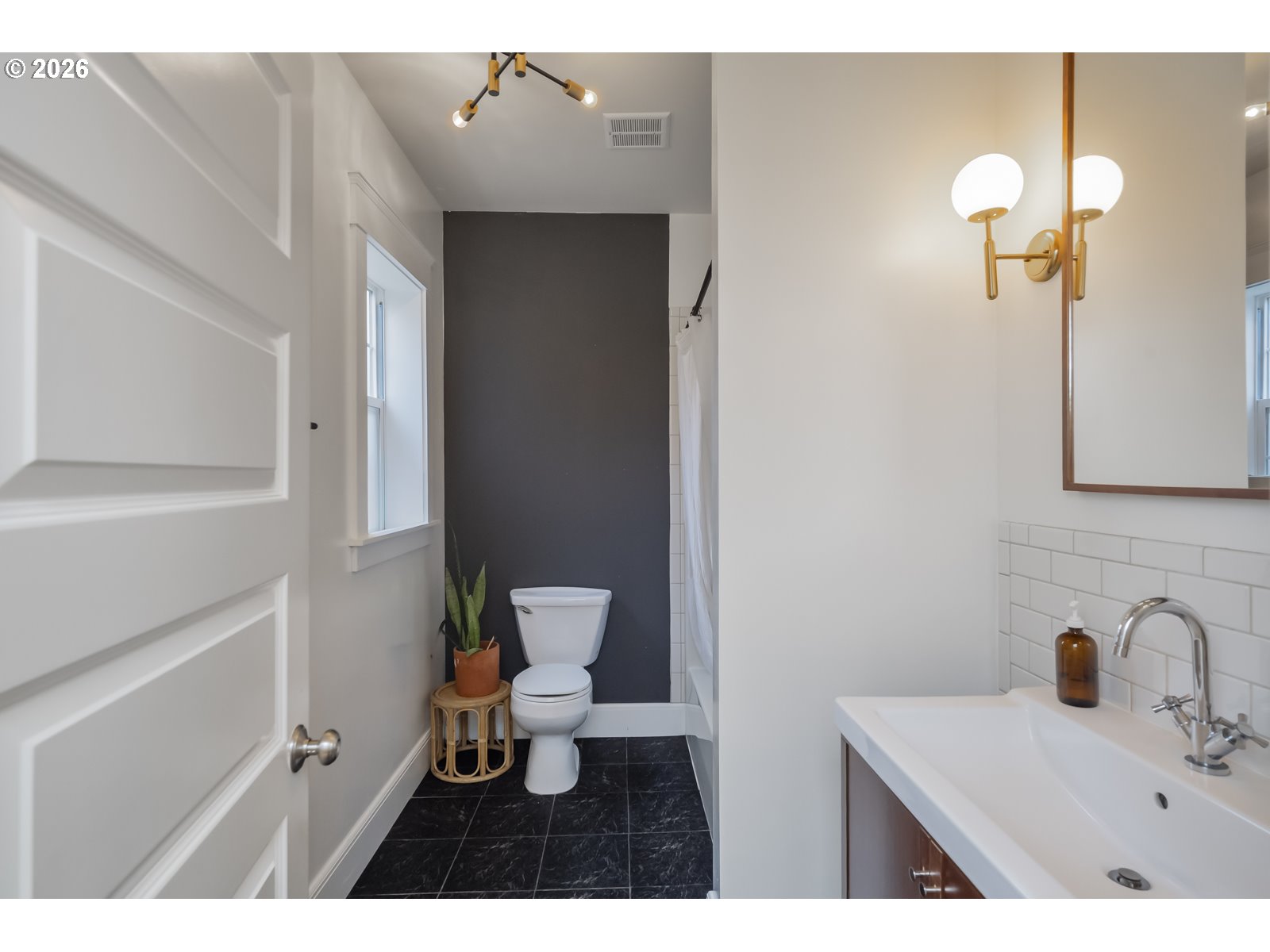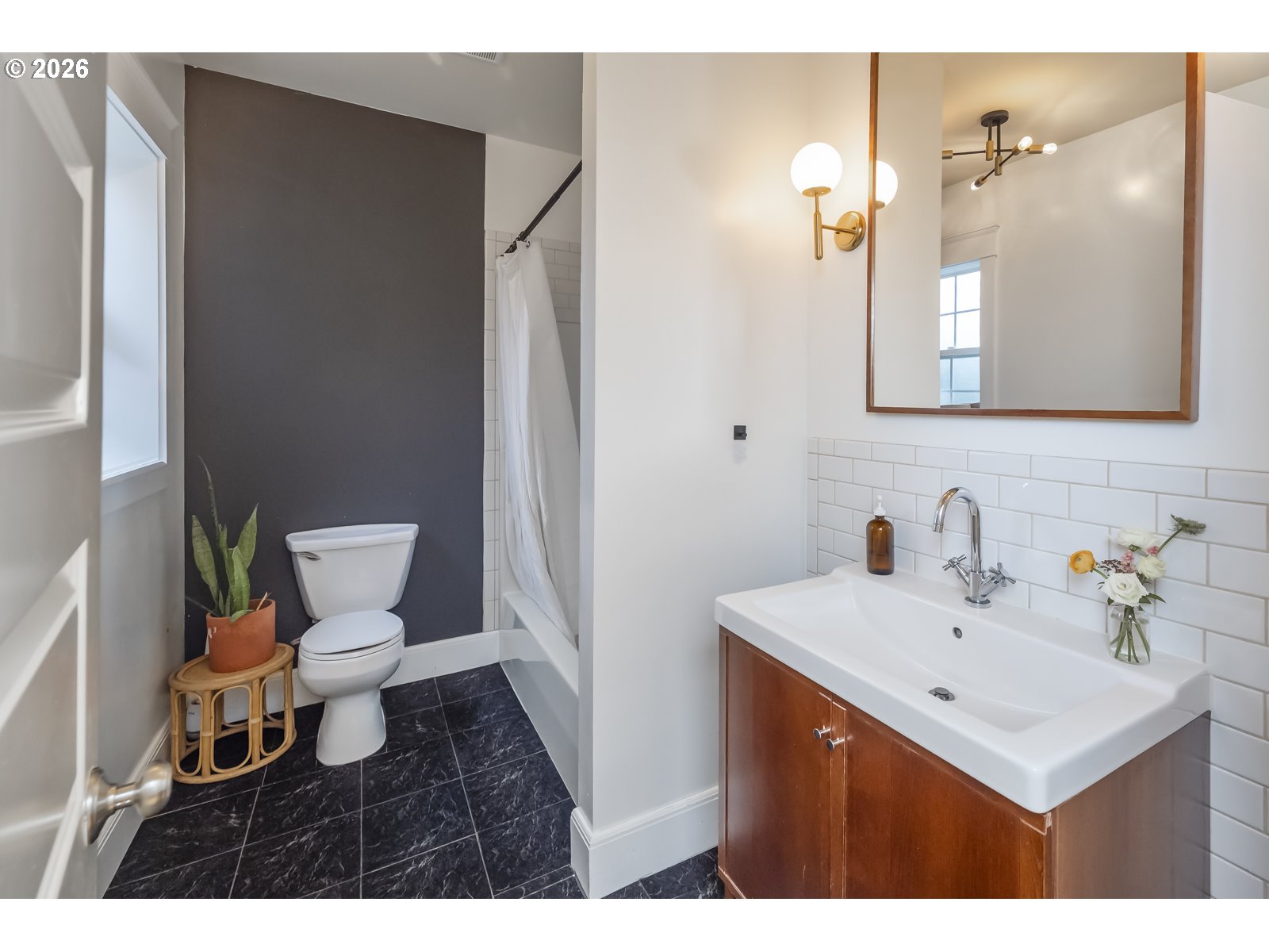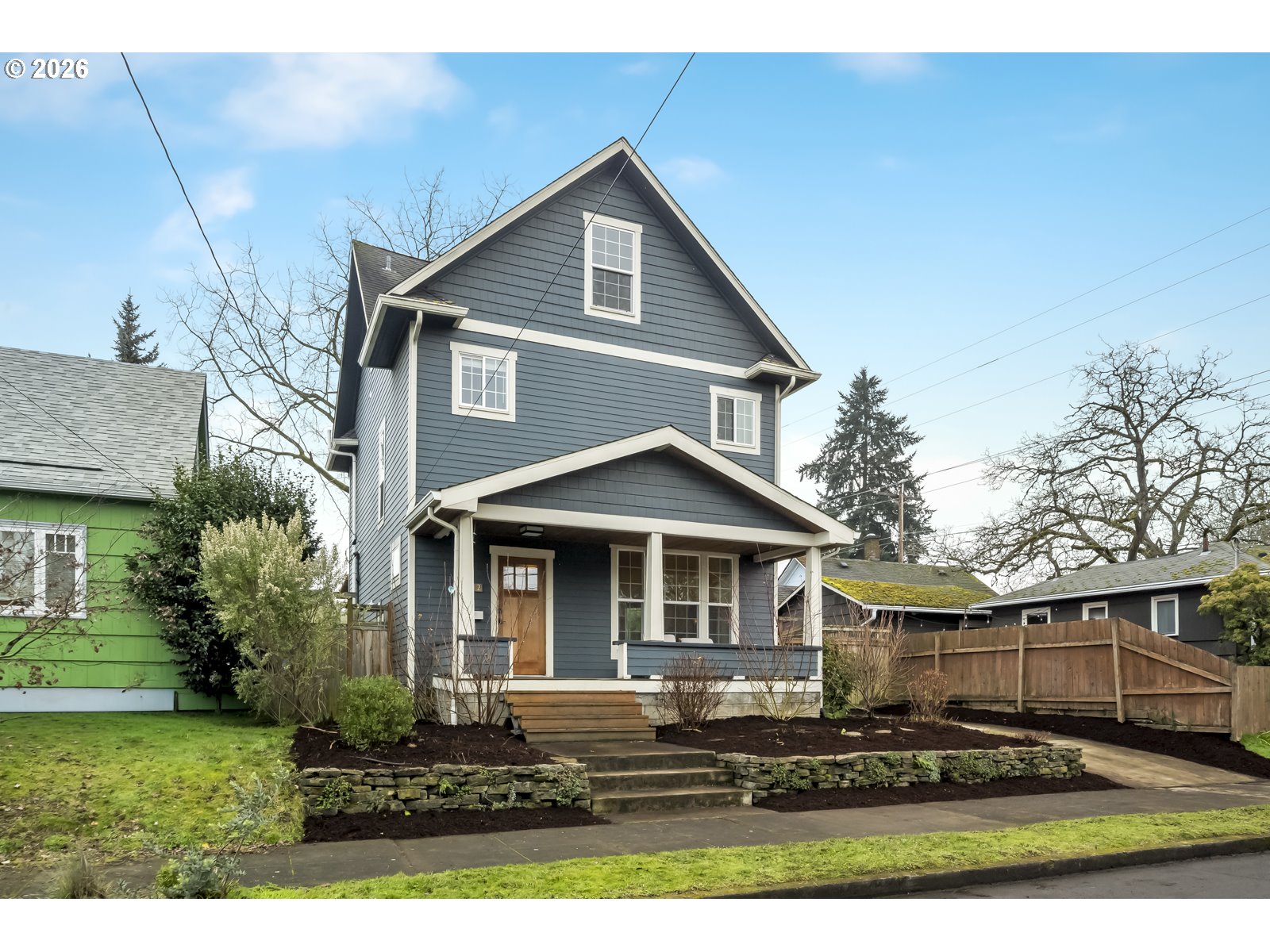 Behold this 1909 Craftsman farmhouse that has been lovingly updated for easy 21st century living. The charm has been kept with the original fir floors, wood banister, and bay window bench seat, while the list of upgrades is long. Newer sewer, siding, insulated walls, plumbing, electrical, windows, radon system, a high efficiency gas furnace AND mini splits for effective heating and cooling across multiple floors. The spacious first floor is ideal for gathering in community, with its four square layout and circular flow. The kitchen has the perfect Goldilocks amount of openness, and flows easily to the covered back deck and south facing backyard, with fire pit and many seasonal native plantings. The second floor has all three bedrooms and an updated bathroom with walk-in shower. There is so much potential on the reinforced third floor, with high ceilings and 520 square feet--think creative studio space, play room for all the toys, or cozy relaxation zone. The partially finished basement has 7 foot ceilings and new flooring and a zen spa-like feel, with ample storage in multiple areas. All of this within 1 mile of Kenton and Kenton Park, Arbor Lodge Park, Columbia Park, the max line, and public transit on Lombard and Interstate. [Home Energy Score = 8. HES Report at https://rpt.greenbuildingregistry.com/hes/OR10035213]