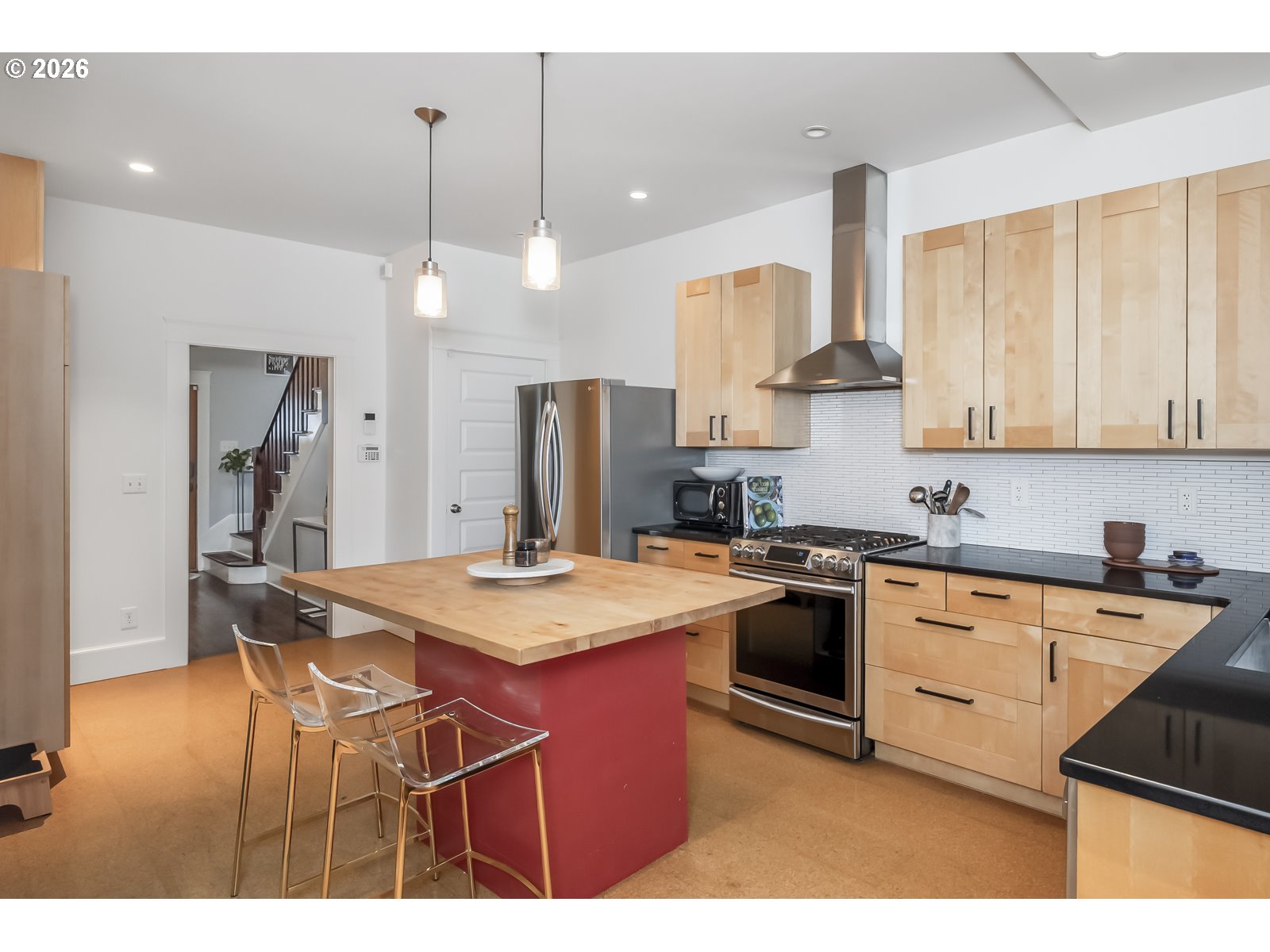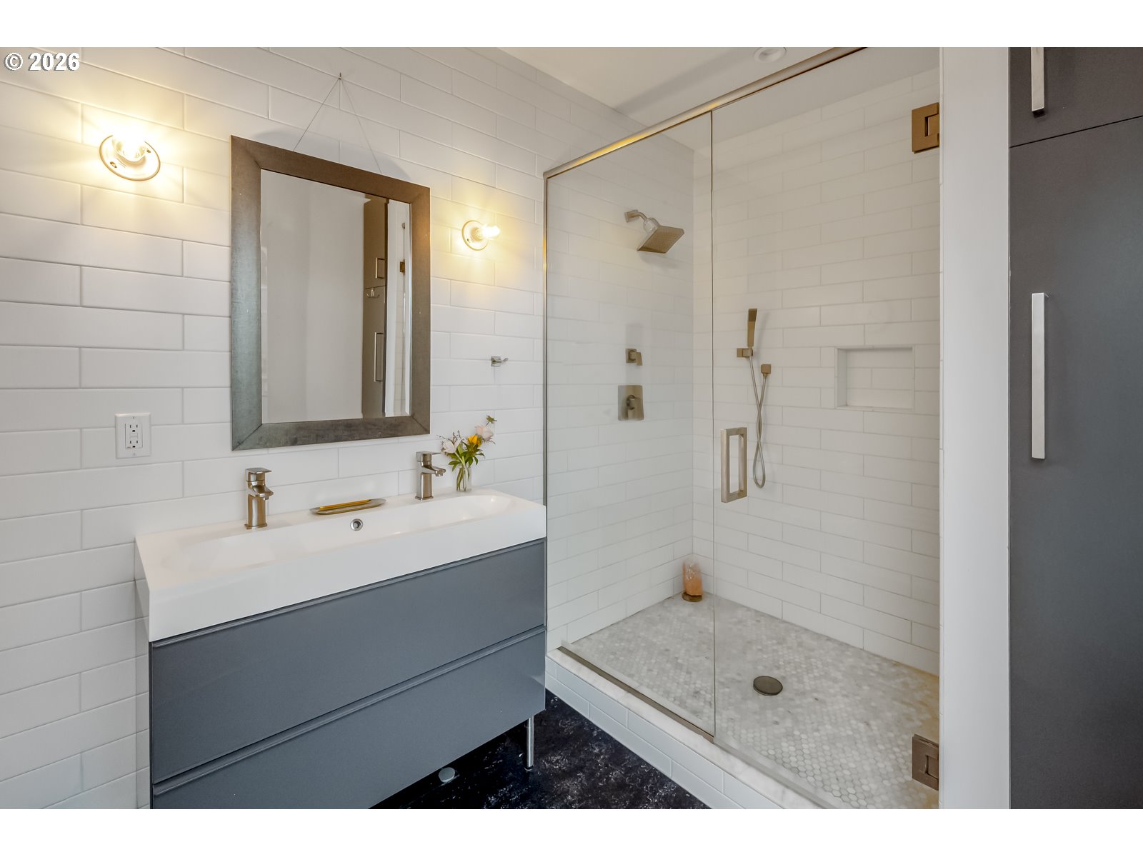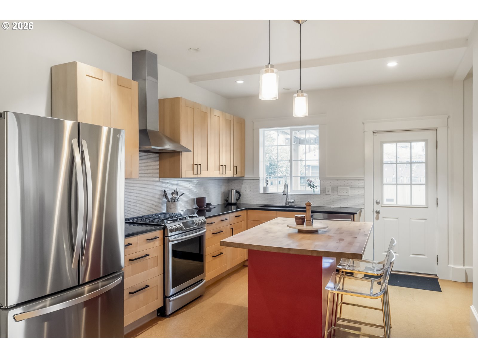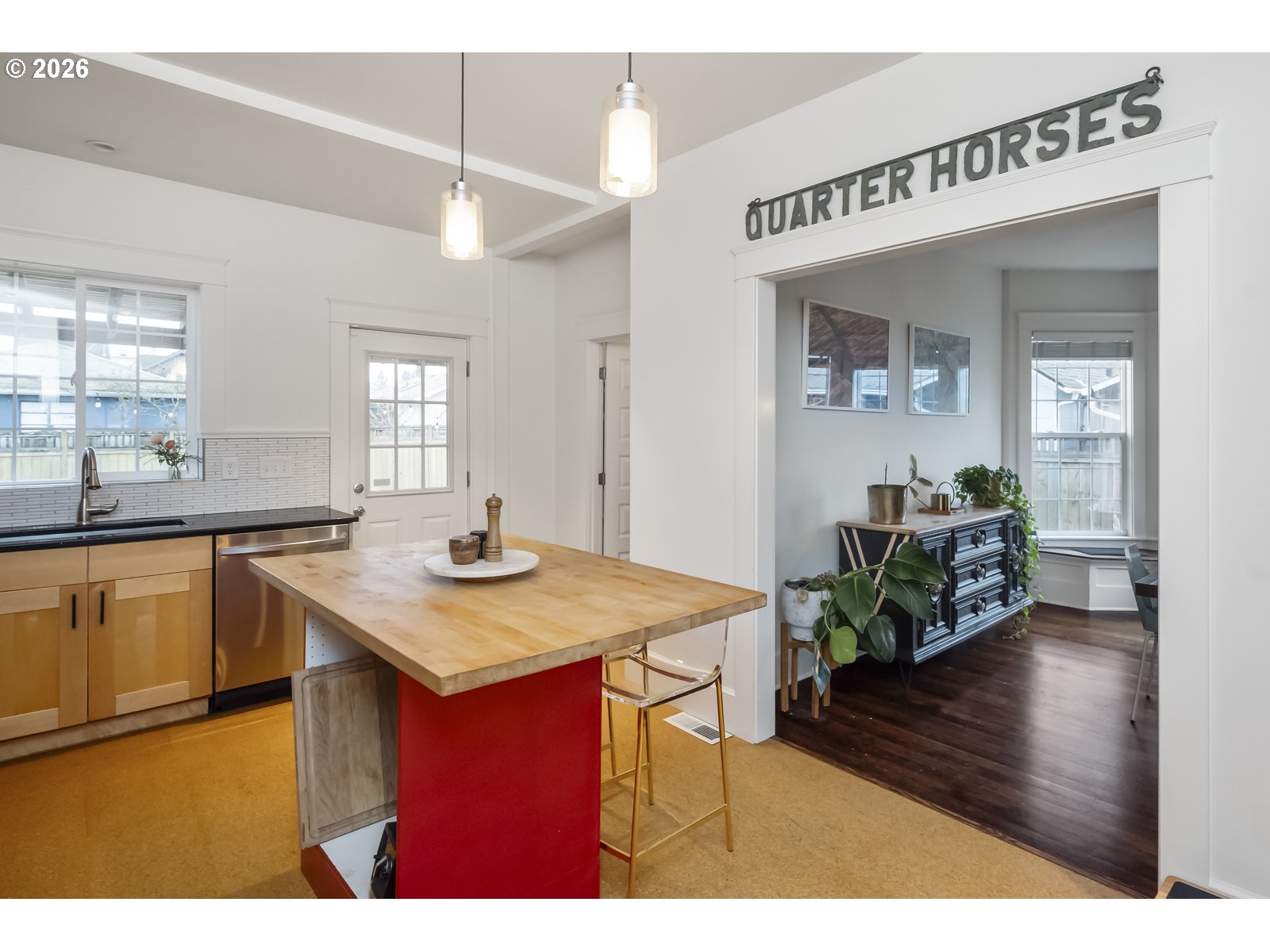 Behold this 1909 Craftsman farmhouse that has been lovingly updated for easy 21st century living. The charm has been kept with the original fir floors, wood banister, and bay window bench seat, while the list of upgrades is long. Newer sewer, siding, insulated walls, plumbing, electrical, windows, radon system, a high efficiency gas furnace AND mini splits for effective heating and cooling across multiple floors. The spacious first floor is ideal for gathering in community, with its four square layout and circular flow. The kitchen has the perfect Goldilocks amount of openness, and flows easily to the covered back deck and south facing backyard, with fire pit and many seasonal native plantings. The second floor has all three bedrooms and an updated bathroom with walk-in shower. There is so much potential on the reinforced third floor, with high ceilings and 520 square feet--think creative studio space, play room for all the toys, or cozy relaxation zone. The partially finished basement has 7 foot ceilings and new flooring and a zen spa-like feel, with ample storage in multiple areas. All of this within 1 mile of Kenton and Kenton Park, Arbor Lodge Park, Columbia Park, the max line, and public transit on Lombard and Interstate. [Home Energy Score = 8. HES Report at https://rpt.greenbuildingregistry.com/hes/OR10035213]