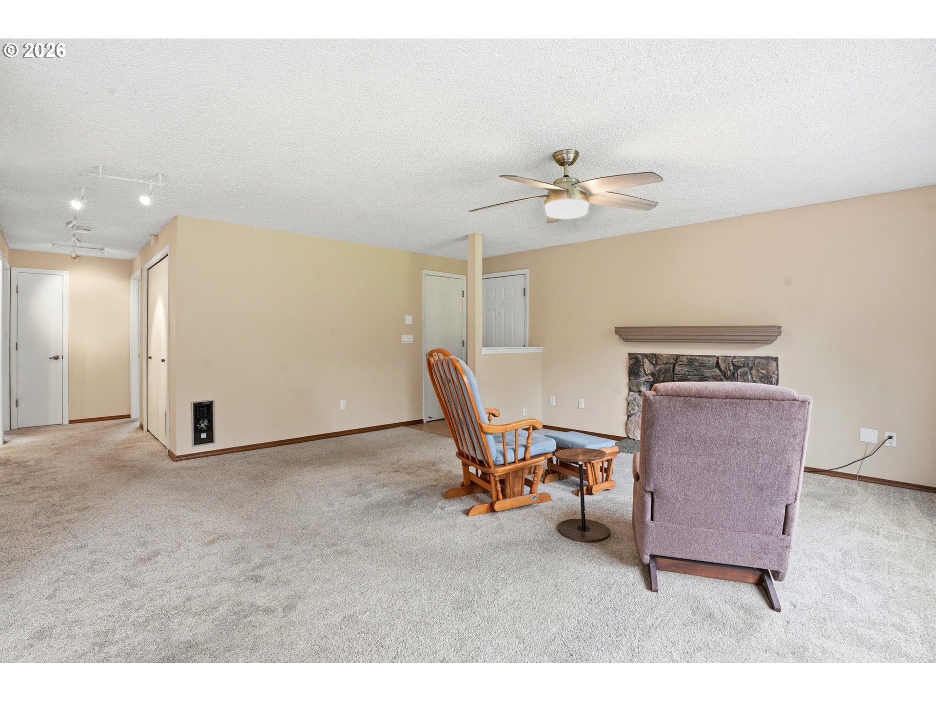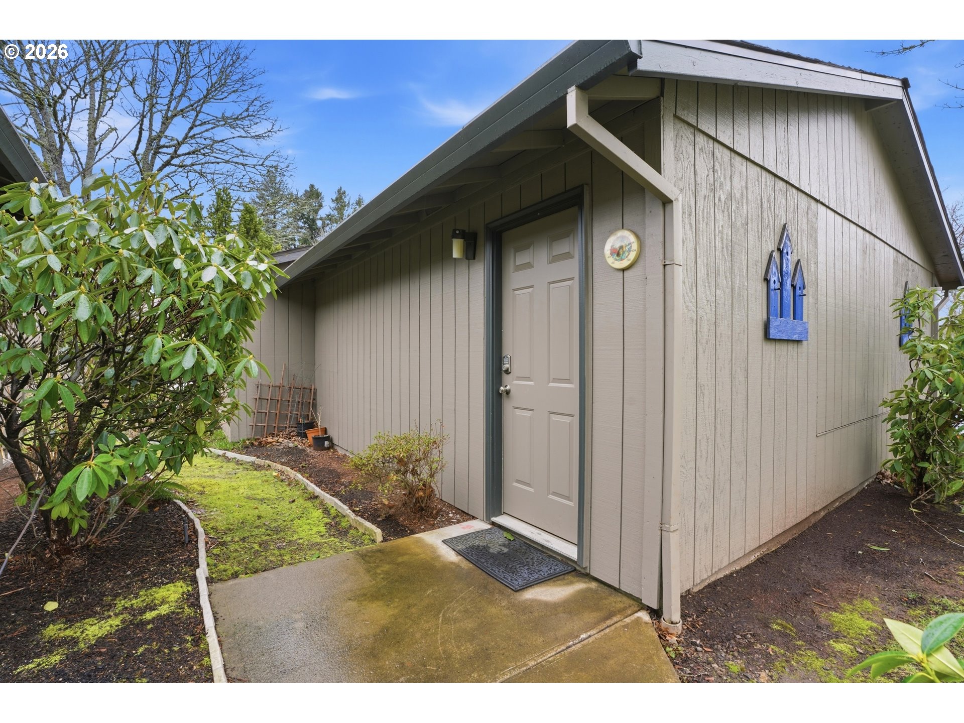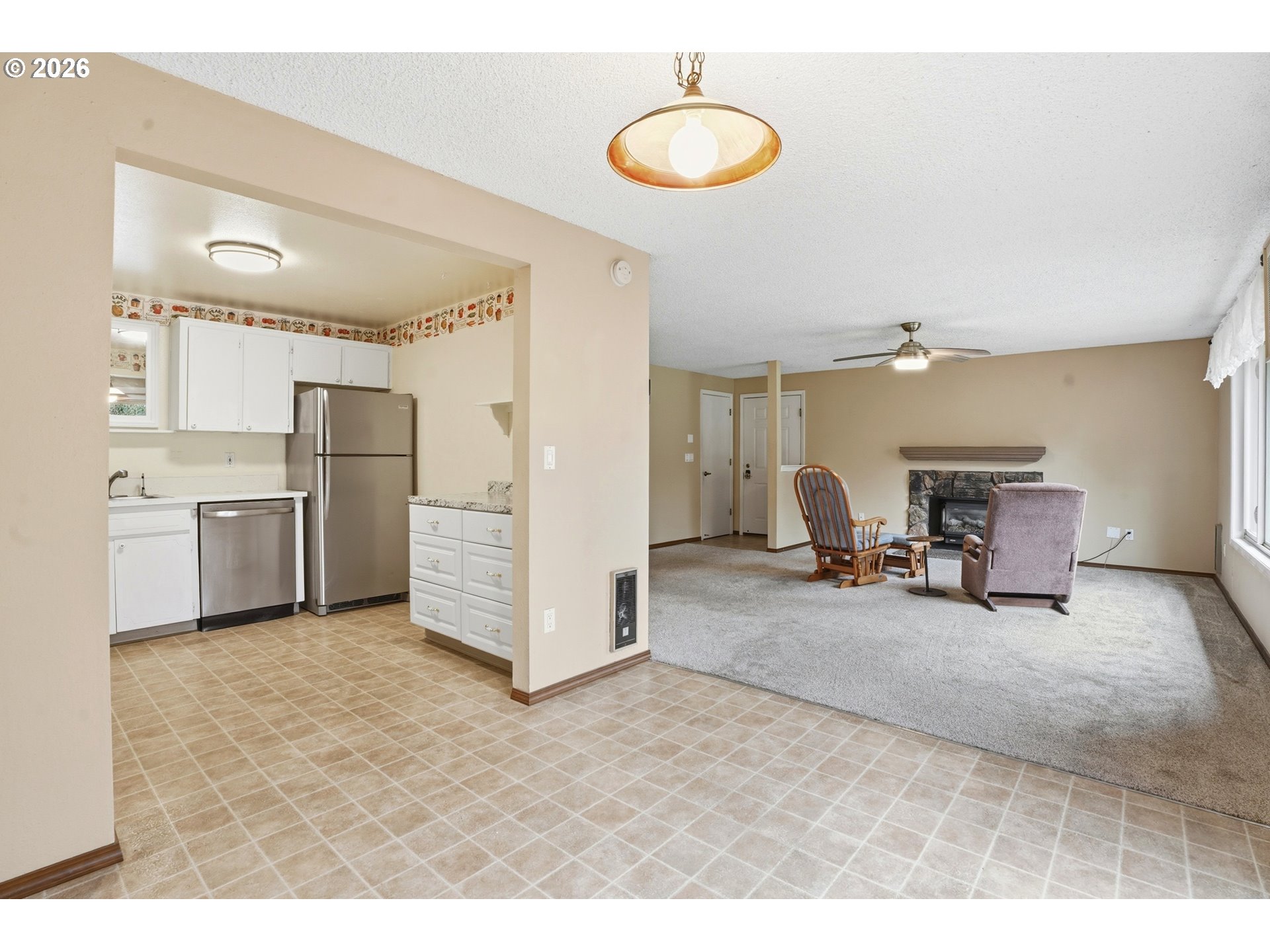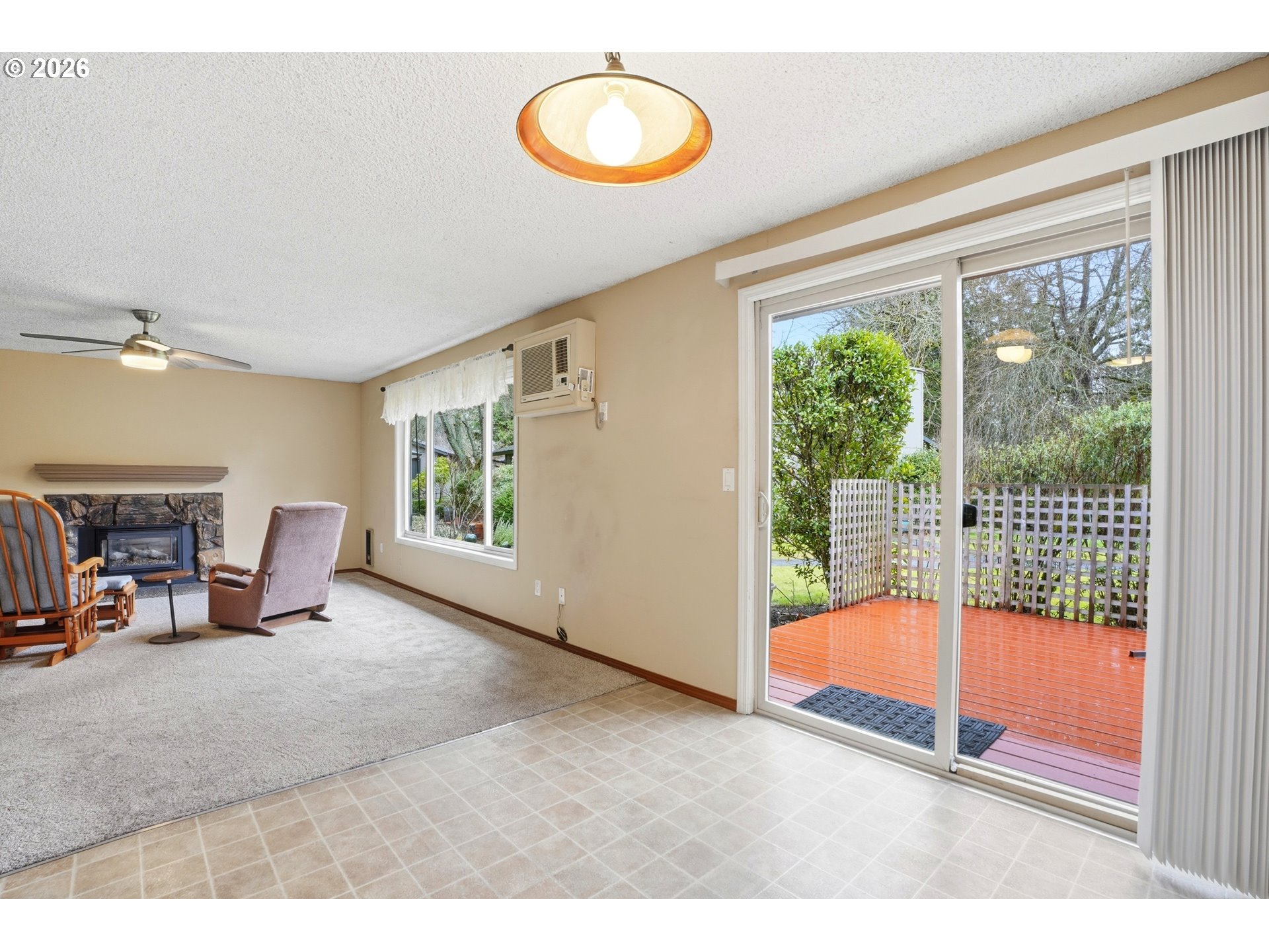 This one level Condo is located in a beautifully maintained park-like setting. Each unit is attached to only one other unit. The Detached double-car garage is an added bonus! 2 Bedrooms and 2 bathrooms. Washer/Dryer hook up is in the Condo for convenience. The Living Room has a gas fireplace that is thermostat controlled to complement the wall heating. The Living room also has newer blinds that are controlled with a remote. The Kitchen has lots of storage (pull-out drawers), a Range, Built-in Microwave, Dishwasher and Refrigerator. The Dining Room has a slider that goes out to a 12' x 12' Deck that overlooks the beautiful grounds. These desirable Kelly Creek Condos don't come available very often. Make sure to come see it soon!