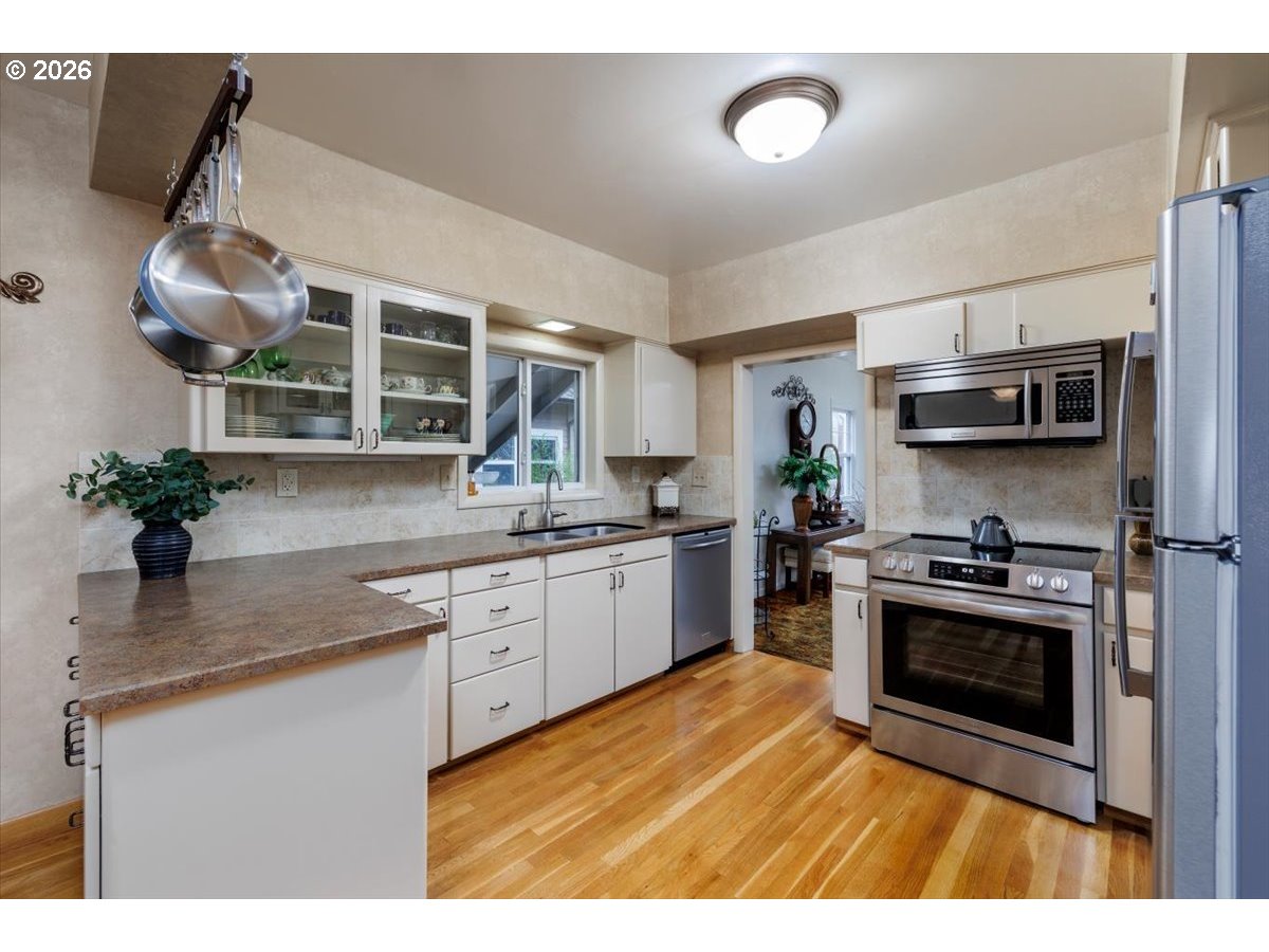 (503) 893-8874Offered for the first time in over half a century, this beautifully maintained 1922 Roseway bungalow represents a rare opportunity to own a home that has been lovingly cared for by the same owner for 52 years. Homes with this level of long-term stewardship seldom come to market.Classic Portland bungalow character is evident the moment you enter. The main level features formal living and dining rooms, anchored by a wood-burning fireplace framed by original built-ins and detailed woodwork that reflect the craftsmanship of the era. Carpet has carefully protected the original hardwood floors in the living room and main level bedroom for many years.The kitchen has been thoughtfully updated while maintaining the home’s traditional feel, featuring solid oak flooring, updated cabinetry, tile backsplash, laminate countertops, and stainless steel appliances. Just off the main living area, the main level bathroom offers timeless charm with its clawfoot soaking tub, tile flooring, custom cabinetry, and a beautiful stained-glass window that fills the room with natural light.Upstairs you will find two additional bedrooms, including flexible space ideal for guest rooms, offices, or creative studios, enhanced by a skylight that brings in soft natural light.The finished basement adds substantial living space, with approximately 8-foot ceilings, large windows, a legal bedroom, spacious walk-in closet, and dedicated laundry area with newer washer and dryer. This lower level provides excellent flexibility for guests, hobbies, or additional living space.Outdoor living is equally inviting. The private backyard features both a covered patio and cedar deck, creating a comfortable space for year-round barbecues, outdoor entertaining, or container gardening. A detached one-car garage, carport, and long driveway provide generous off-street parking and potential for future possibilities.Practical updates include a complete roof replacement in 2015 covering the home, garage, and car [Home Energy Score = 2. HES Report at https://rpt.greenbuildingregistry.com/hes/OR10242373]
