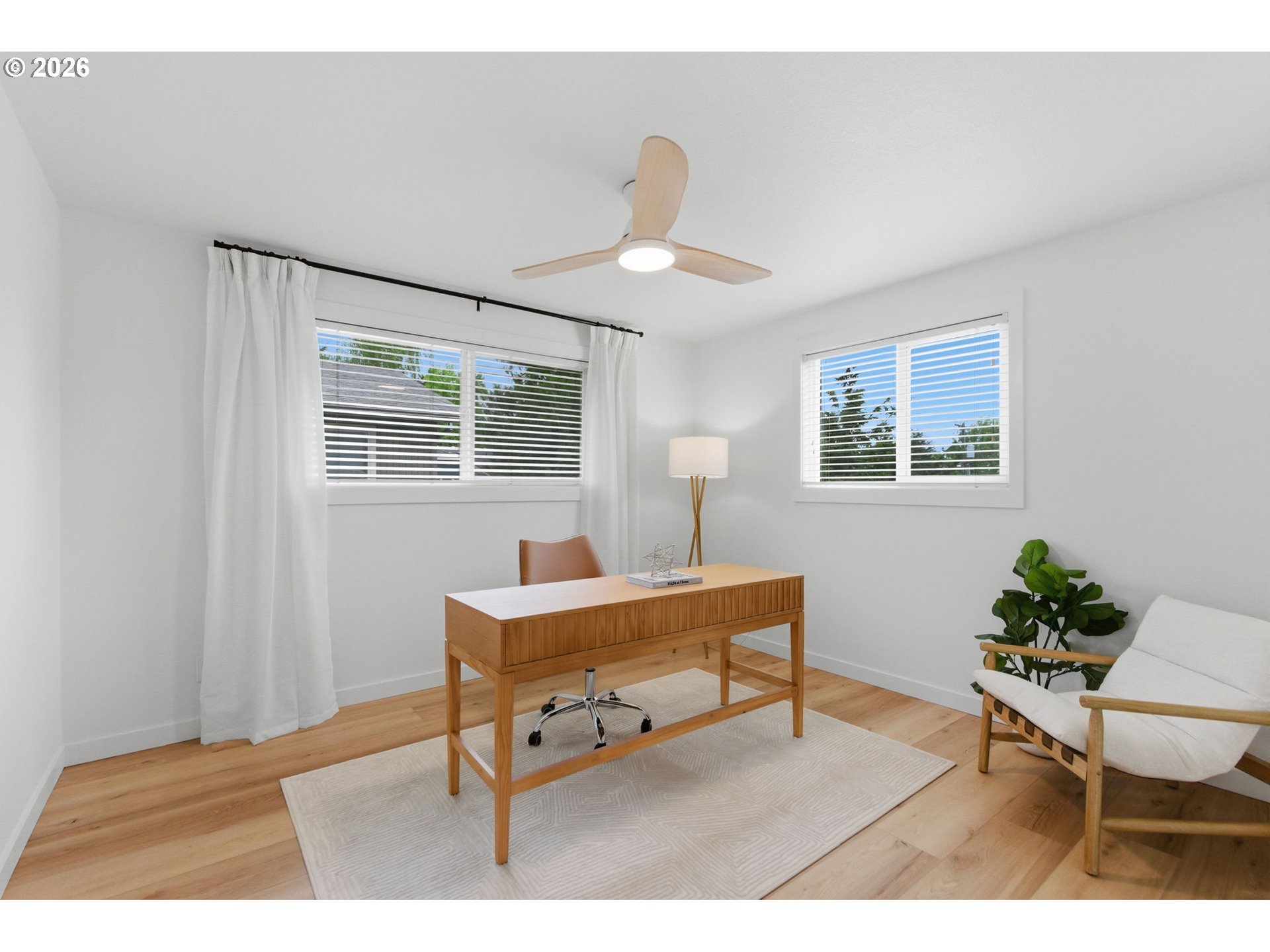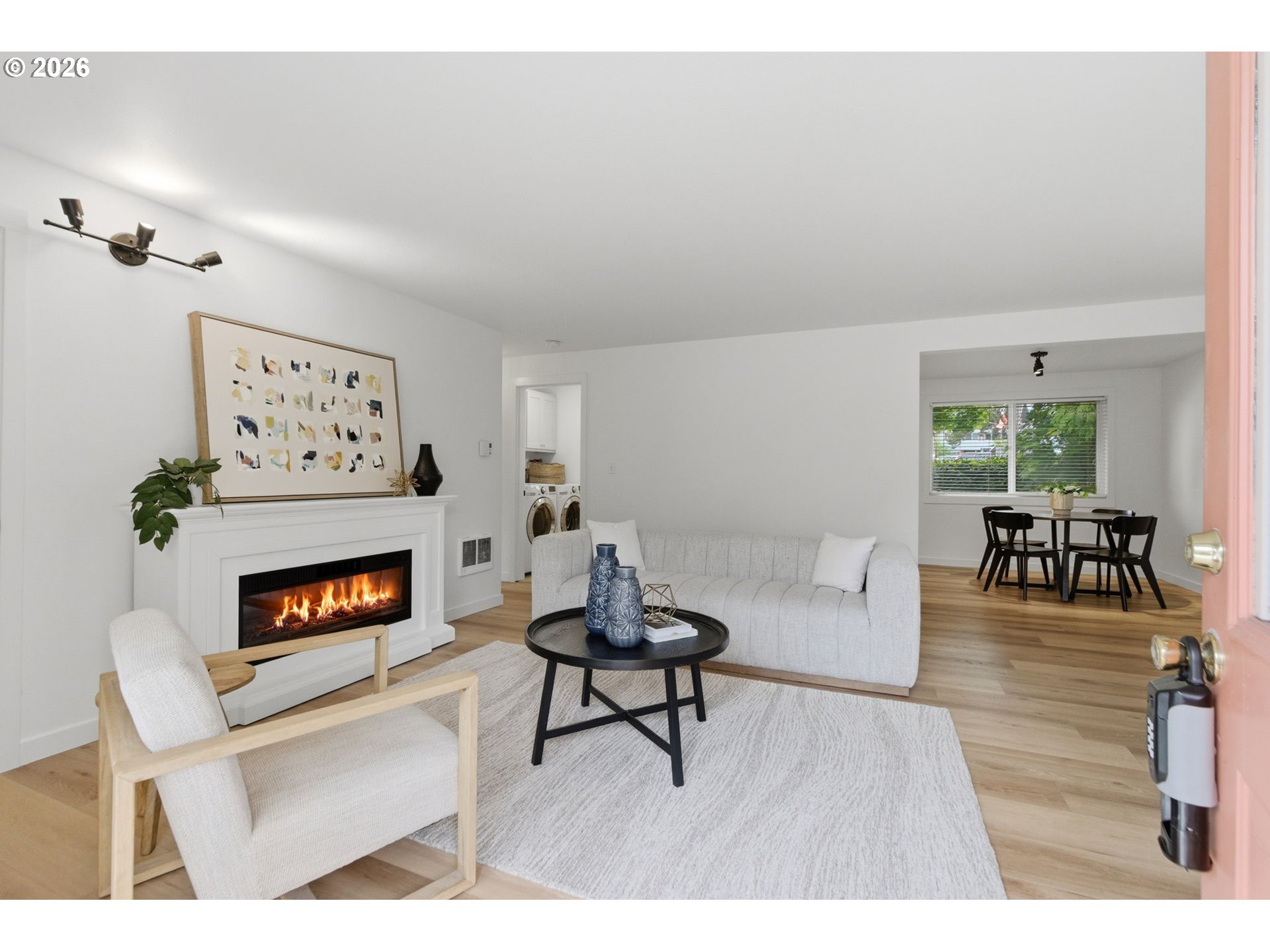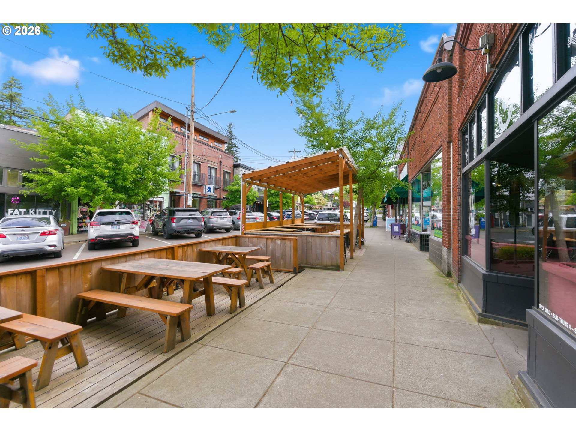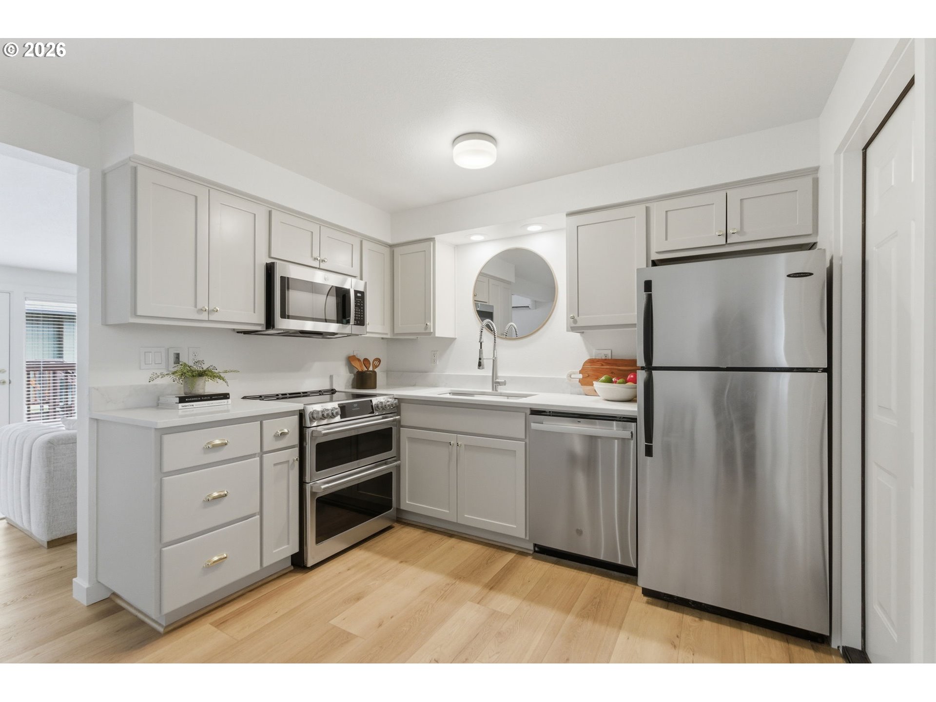 Located just above Multnomah Village, this condo offers a rare combination of top-floor living with true street-level entry. Inside, the layout is simple and functional, with 2 spacious bedrooms and 1 bathroom. Remodeled in 2026, the kitchen and bathroom feature new quartz countertops, paired with fresh interior paint and a neutral palette that keeps the space feeling bright and easy to move right into. New luxury vinyl plank flooring and trim carry a clean, consistent look throughout, while a new heat pump provides efficient heating and cooling. The corner location brings in great natural light and offers dual access, including a traditional stair entry and convenient street-level walk-up. Reserved parking plus additional street parking and a location on the bus line add to the ease of everyday living. HOA dues cover water, sewer, and trash, and the home is set in one of Multnomah Village’s most loved pockets with shops, dining, and local favorites throughout and quick access into downtown.