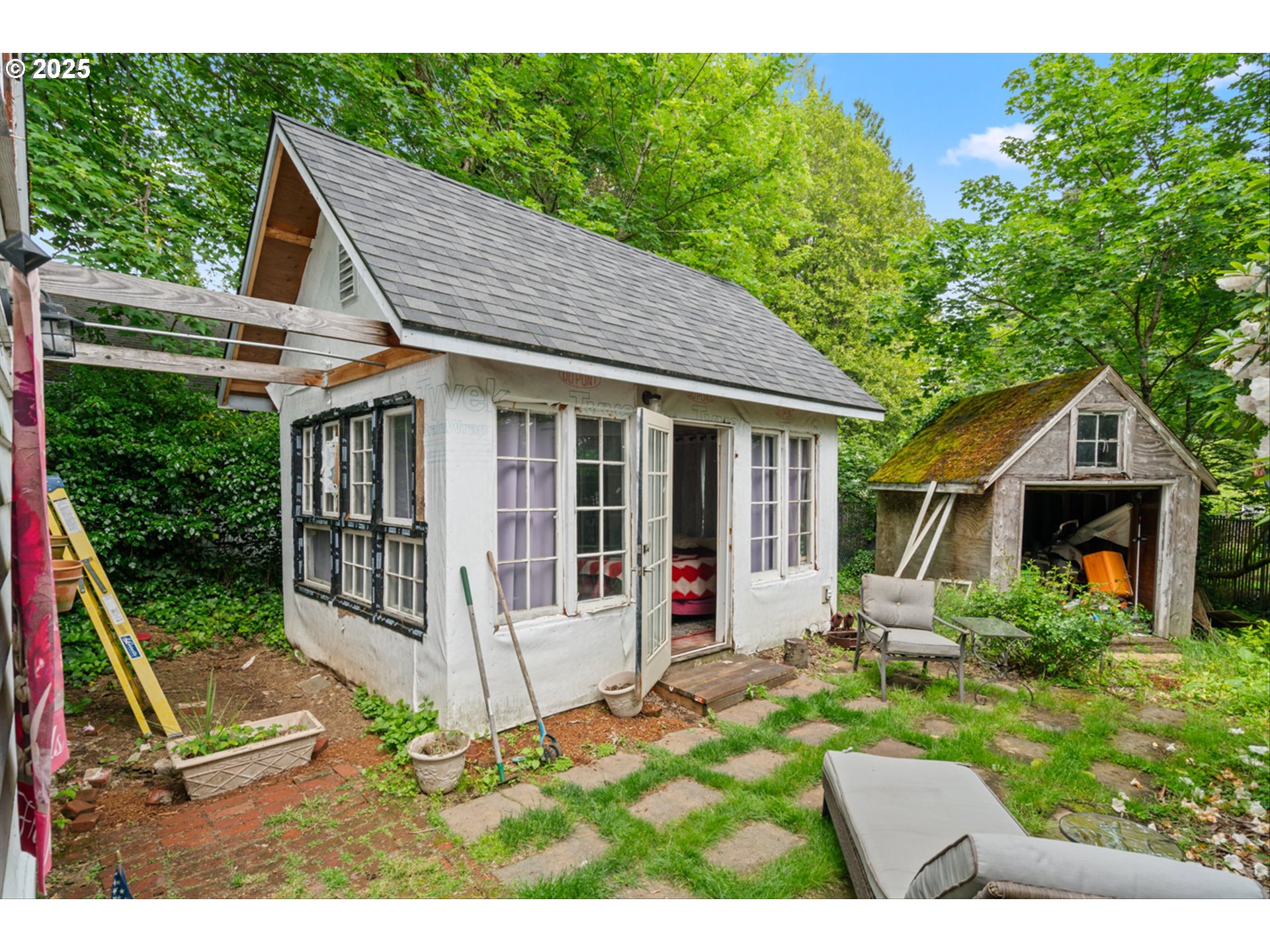 Back on Market - no fault of the Seller's. Buyer's financing fell through. Their loss is your gain! This charming 1942 Colonial Farm house on ½ acre, centrally located in NE Portland 1 block from the Glendoveer Golf Course. This 2,734 sq ft home sits on a level ½ acre lot zoned R2.5 (Multi use), offering significant upside for expansion or utilizing what is already there. The Primary home features 3 large bedrooms, 1.5 baths, kitchen, dinning room and living room with hardwood wide-plank floors and 1 fireplace. The downstairs has the second fireplace, large living room and laundry room all with a separate entrance. Currently being used as a 4th bedroom. The home has an expansive covered back patio that overlooks the grounds. Private entrance into basement with a 1100 sq ft and Fireplace, giving this a possible separate ADU conversion option. Home has newer furnace, central A/C, newer double-paned windows, roof, and leaf guard gutters. A second permitted 300 square foot outbuilding equipped with power, and 220V—RV hook up -currently a music studio workspace and guest house.