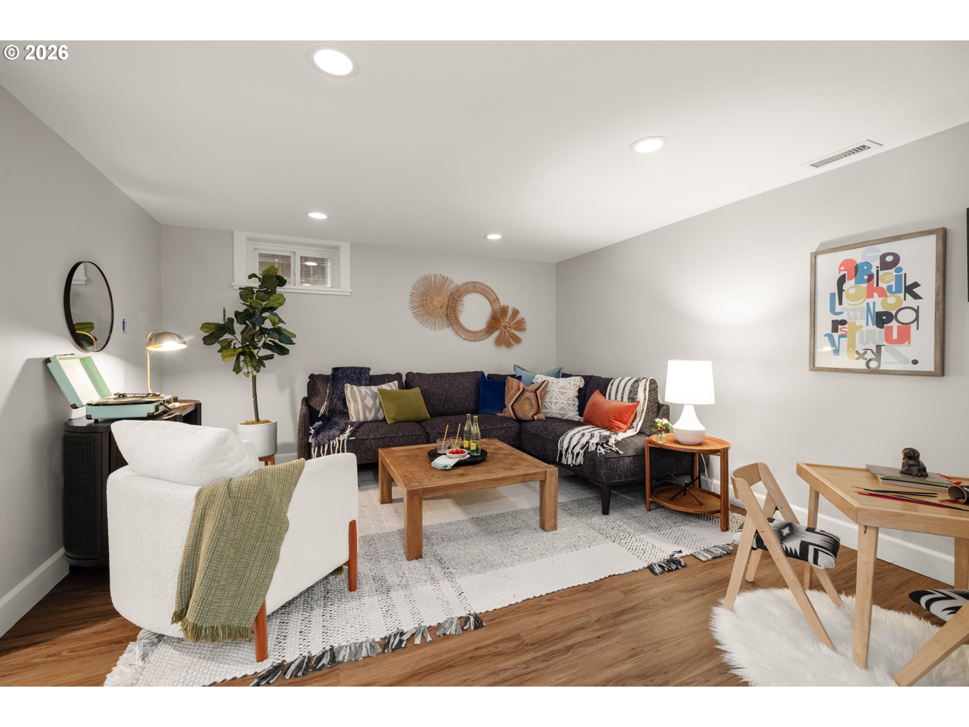 This South Tabor Sweetheart will have you at hello! A picture perfect entry welcomes you home with a large coat closet and spiral mosaic floor tile. Southwest facing corner windows in the living room let the light shine in all day long! It’s the perfect spot for dogs and cats to curl up in a sunbeam - and maybe you sometimes when you’re lucky. Original oak hardwoods and a wood-framed fireplace with a tile hearth add layers of warmth and charm. If you’re tired of tiny kitchens, you’re in for a treat - big kitchen energy, with space to cook and host to your heart’s content and a door to the deck for easy outdoor dining. The floor plan lives large with an office or bedroom off the kitchen, a perfect bedroom upstairs, along with a fantastic bonus space/room with loads of storage, and a show-stopping finished basement - fully permitted in 2021 with a family room, bedroom, second full bathroom and laundry room. You also get the big sunny yard you’ve been looking for, just in time for summer fun with an expansive lawn for pets and play. Fully fenced and private with laurel hedges on each side, blueberry bushes for summer snacking, and a large deck for grilling and chilling. The garage offers plenty of storage space for bikes, tools, camping gear and more. For project people, it would also make a great workshop - or just use it to park your pampered car. All this tucked away on a quiet street in South Tabor! Grab coffee at The Porch and walk to Mt Tabor on the weekends. All the food and fun on Division and Foster is just a hop, skip and a jump away! Welcome home. [Home Energy Score = 4. HES Report at https://rpt.greenbuildingregistry.com/hes/OR10059564]