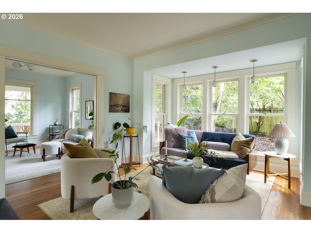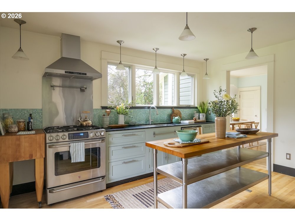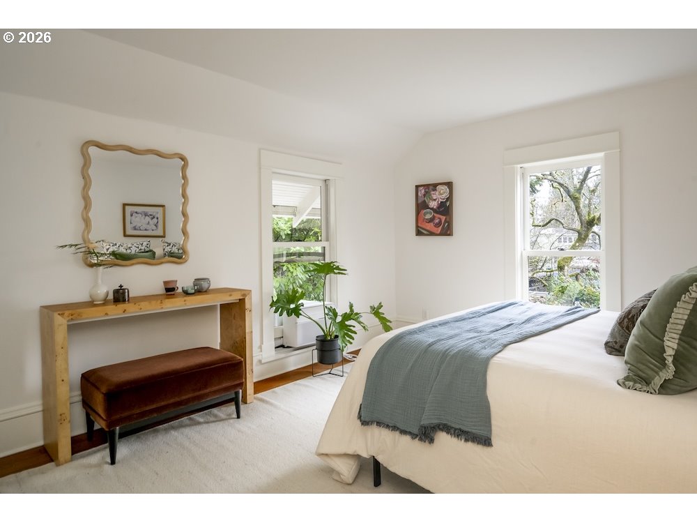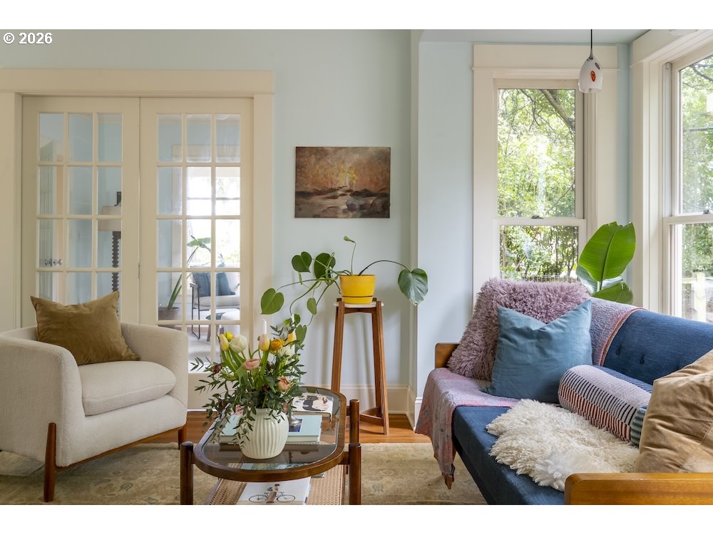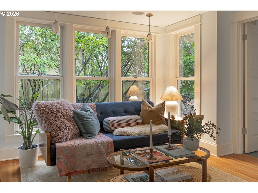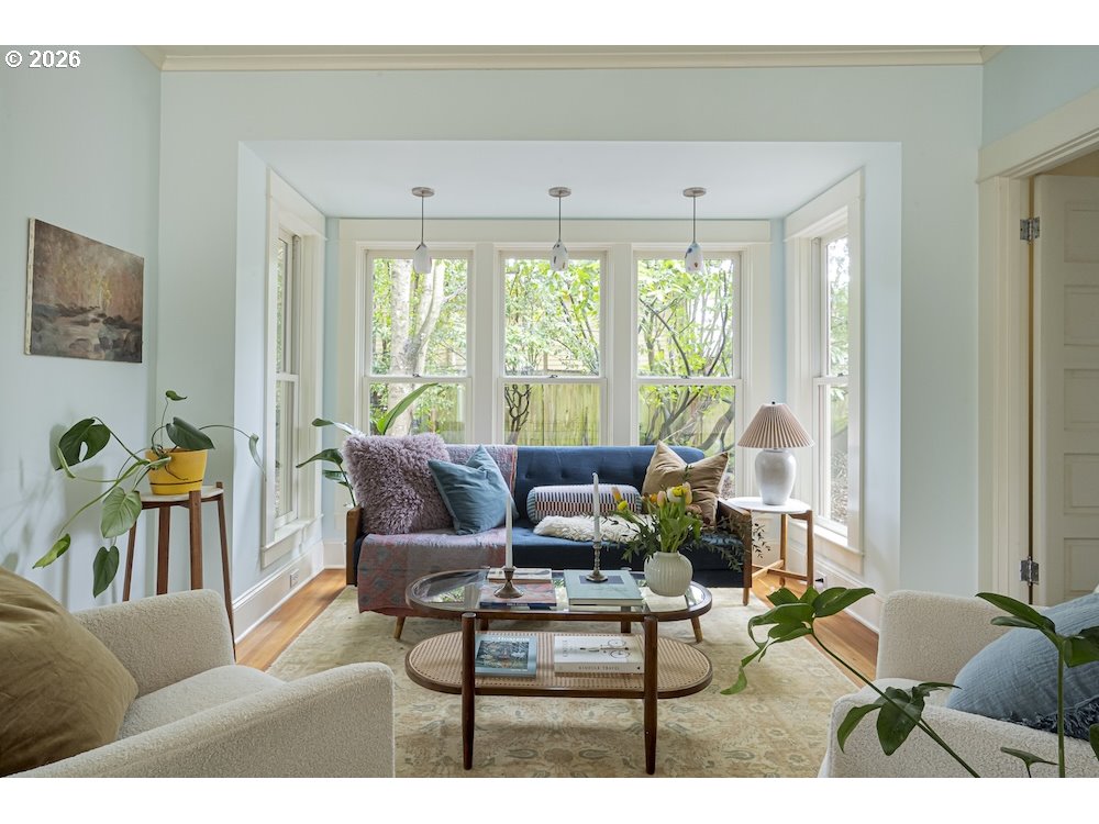 Why sacrifice modern comforts when all you crave is vintage vibes? This grand four-level N. Tabor farmhouse is set back deep on a generous .36 acres in a highly desirable location. Spacious and light, this home extends a warm welcome. Ushered into 2026 with uncommon taste: a contemporary kitchen for honing your culinary craft; a sprawling garden brought to life with deep dedication to growing produce and medicinal plants; a sweet appreciation of original features that lend heart to home. Step through the foyer to an old school layout on the main, offering high ceilings, and both living and family rooms...spoiled for space so you can stretch out and feel luxurious. Upstairs, three good-sized bedrooms, with a full bath for convenience. Ascend one floor further to a magical, open bonus space, ideal as an art or yoga studio, a place to create and unwind. A large unfinished basement provides ample storage, including for the results of canning your garden's bounty. Mature, drought-resistant vegetation populates the grounds, a meticulously curated collage of native wildlife habitat and corridors, providing solace, beauty, and color in every season. Diligently maintained and consistently updated throughout the years of stewardship, with an eco-roof, seismic fittings, electric car charger, new windows/doors, radiant floor heat, mechanical upgrades, and myriad embellishments that make this home near-immaculate. This is a truly special house that reveals its treasures to those who step through its front door... [Home Energy Score = 5. HES Report at https://rpt.greenbuildingregistry.com/hes/OR10245107]