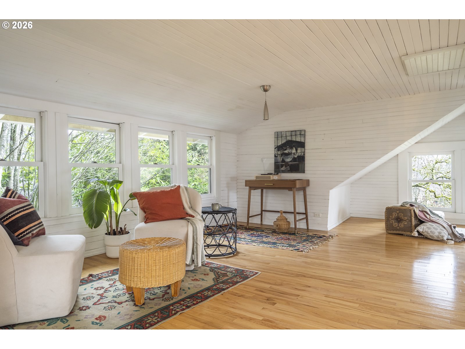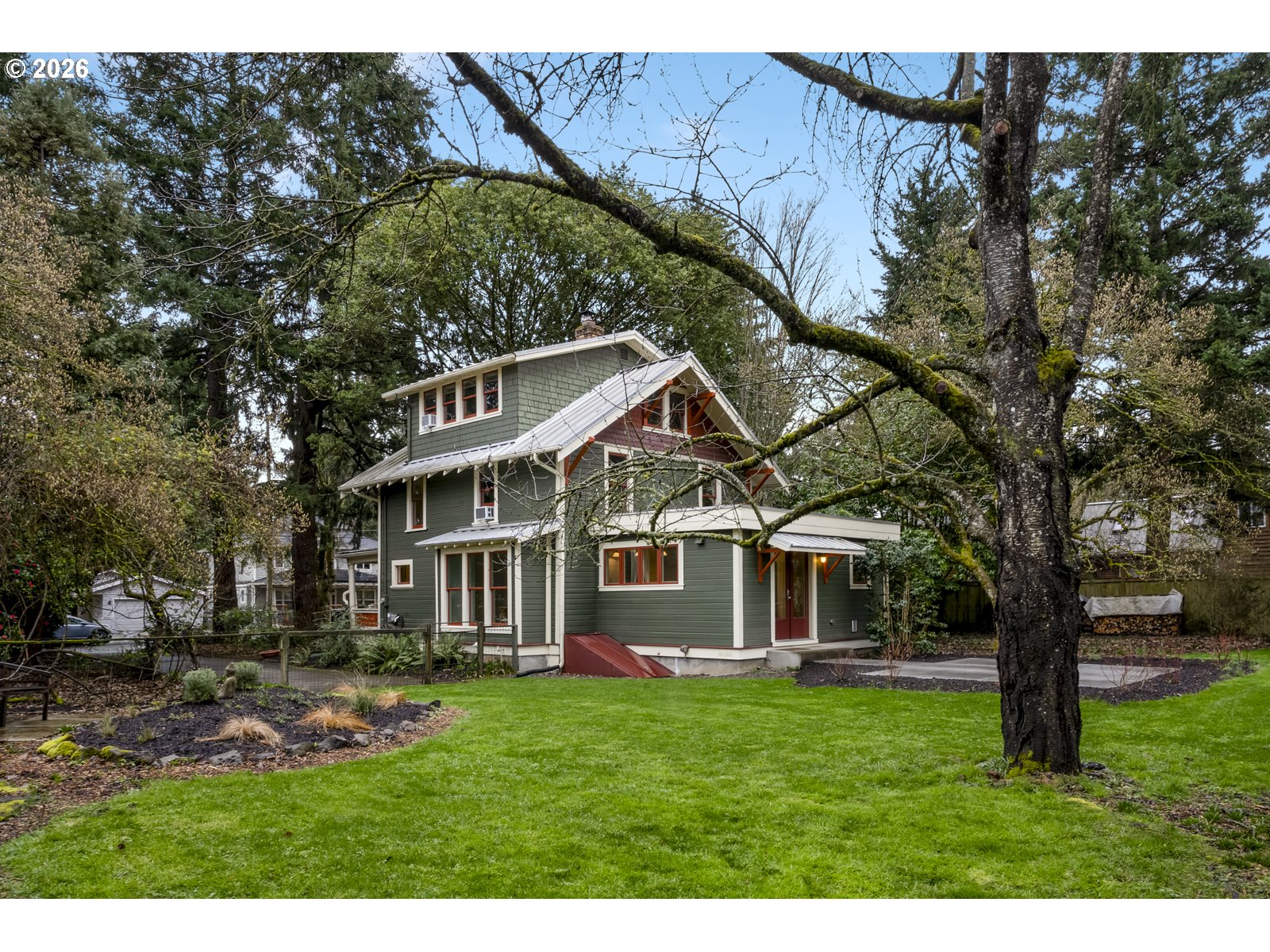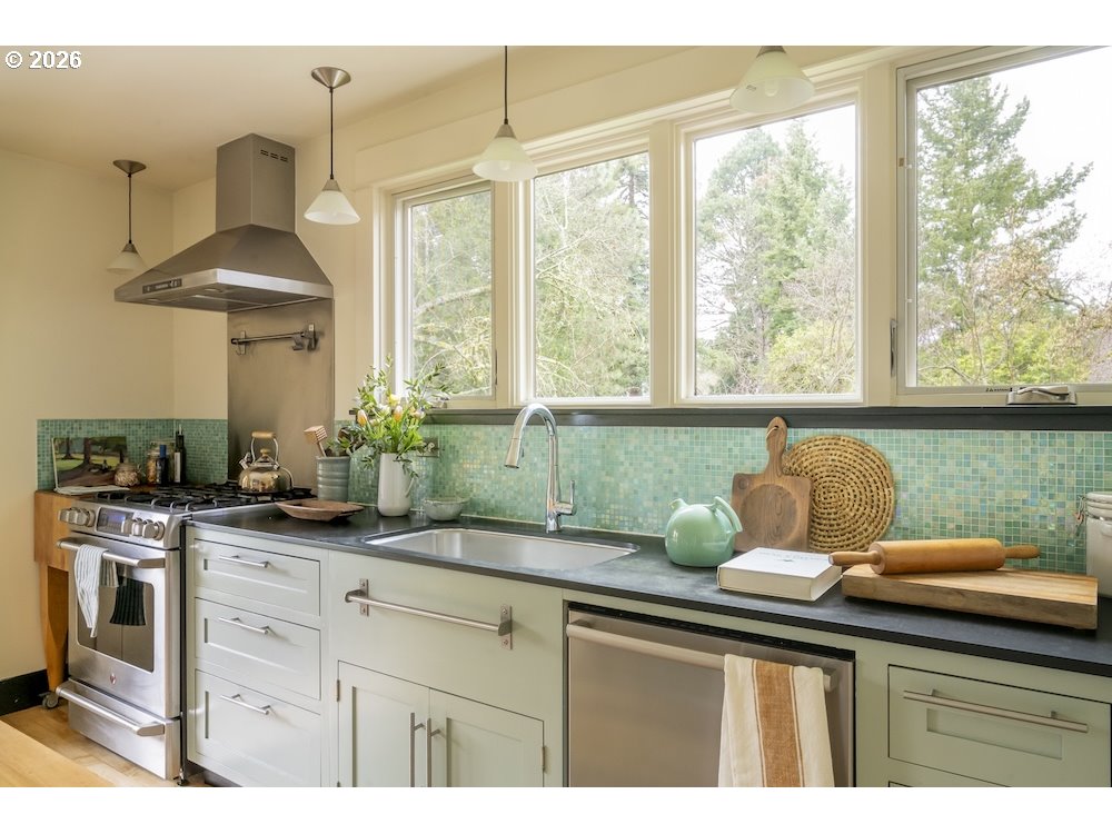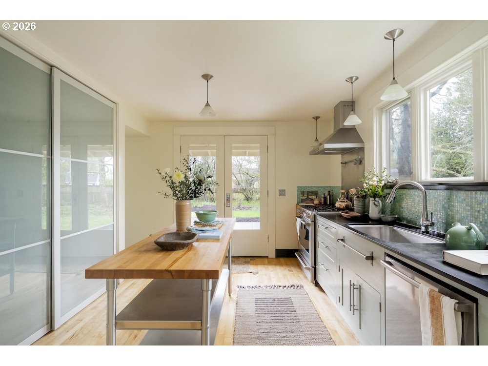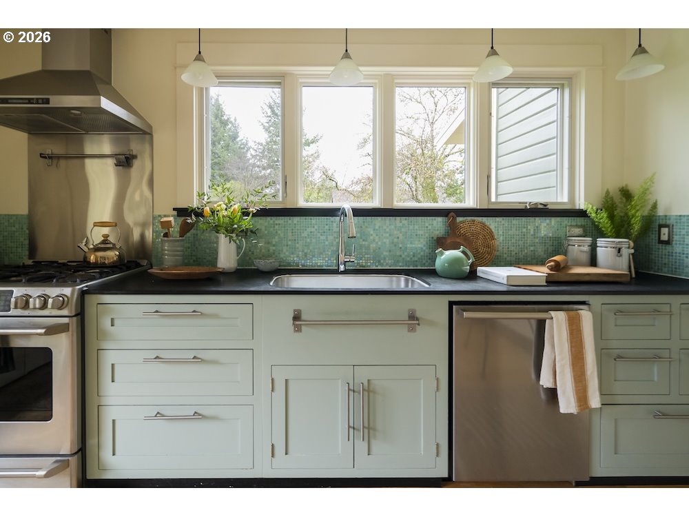 Why sacrifice modern comforts when all you crave is vintage vibes? This grand four-level N. Tabor farmhouse is set back deep on a generous .36 acres in a highly desirable location. Spacious and light, this home extends a warm welcome. Ushered into 2026 with uncommon taste: a contemporary kitchen for honing your culinary craft; a sprawling garden brought to life with deep dedication to growing produce and medicinal plants; a sweet appreciation of original features that lend heart to home. Step through the foyer to an old school layout on the main, offering high ceilings, and both living and family rooms...spoiled for space so you can stretch out and feel luxurious. Upstairs, three good-sized bedrooms, with a full bath for convenience. Ascend one floor further to a magical, open bonus space, ideal as an art or yoga studio, a place to create and unwind. A large unfinished basement provides ample storage, including for the results of canning your garden's bounty. Mature, drought-resistant vegetation populates the grounds, a meticulously curated collage of native wildlife habitat and corridors, providing solace, beauty, and color in every season. Diligently maintained and consistently updated throughout the years of stewardship, with an eco-roof, seismic fittings, electric car charger, new windows/doors, radiant floor heat, mechanical upgrades, and myriad embellishments that make this home near-immaculate. This is a truly special house that reveals its treasures to those who step through its front door... [Home Energy Score = 5. HES Report at https://rpt.greenbuildingregistry.com/hes/OR10245107]