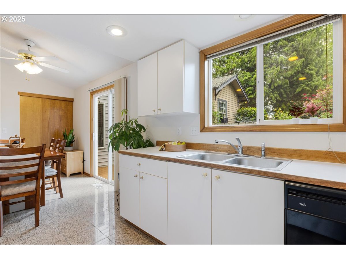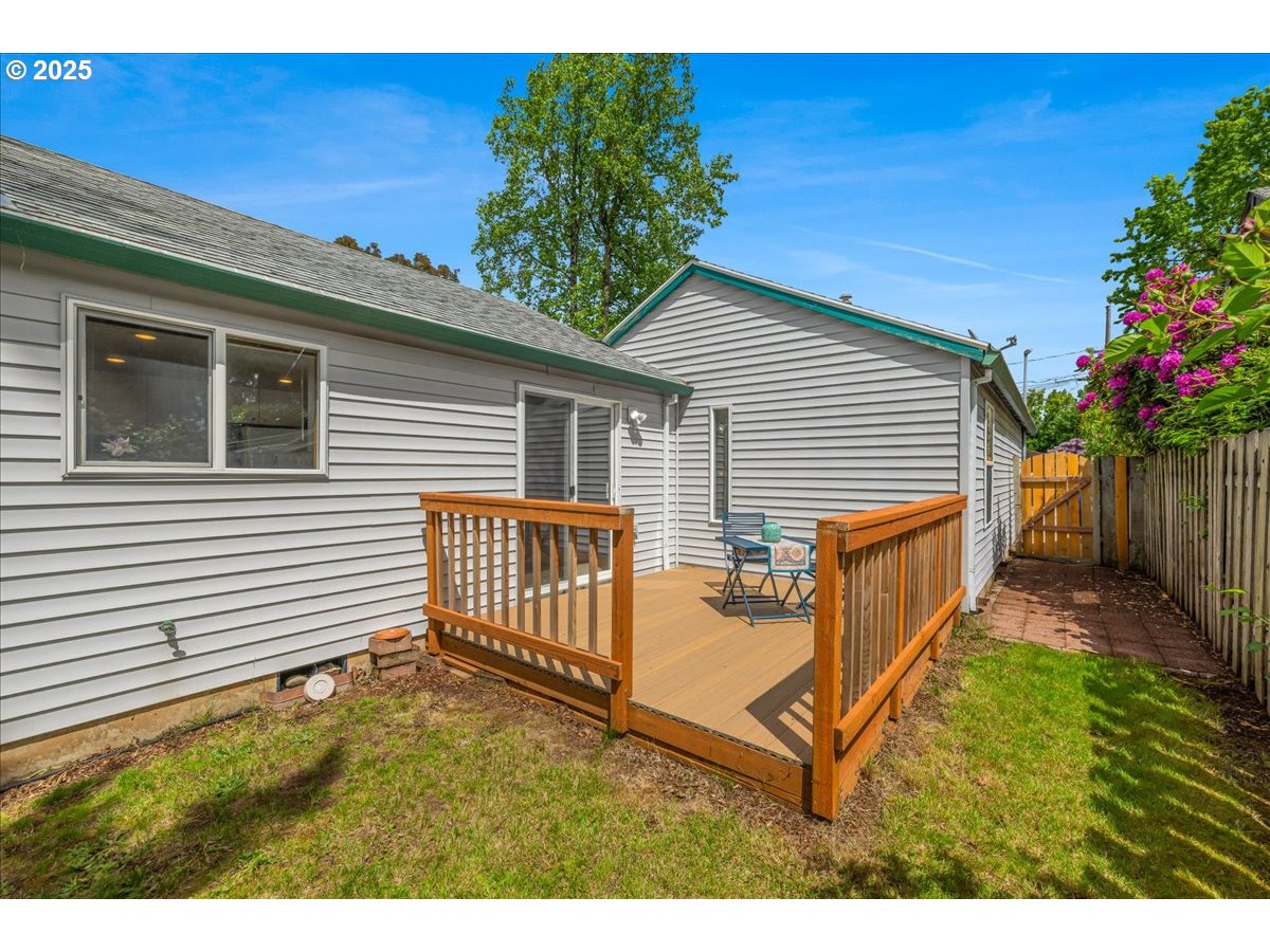 Step into this neat and efficient single-level home tucked away on a peaceful side street at the edge of South Tabor. Vaulted ceilings in the living room create a spacious, airy feel, while the open kitchen and dining area connect to a generous den—perfect for a home office, playroom, or creative business space. Step out onto the sunny back deck and sip your morning coffee in peace. With a fenced yard, a two-car garage and new furnace (2024), water heater (2025), and a new deck, plus brand-new carpet in bedrooms, LVT in den, this home is ready for you to enjoy! [Home Energy Score = 6. HES Report at https://rpt.greenbuildingregistry.com/hes/OR10238363]