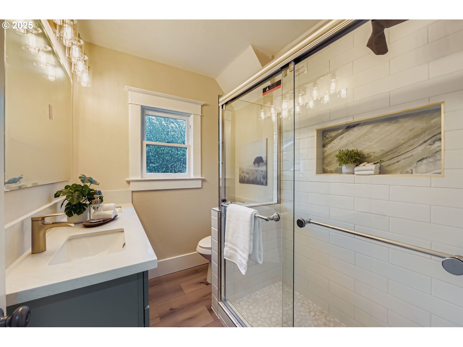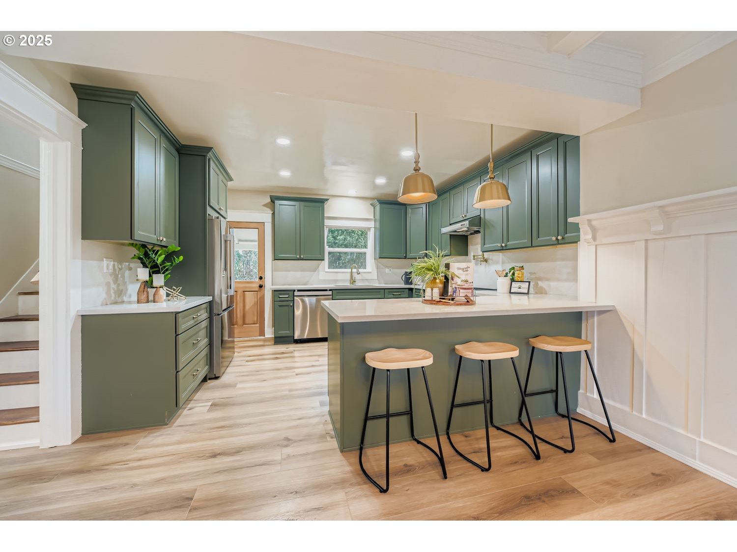 Don't miss this Multi-generational living or Income Potential Property! Separate downstairs ADU! Beautifully remodeled with attention to every detail, this stunning home offers high-end finishes and modern style throughout. Tasteful and stylish color transitions with gorgeous custom fixtures. The vibrant kitchen features gleaming quartz countertops and quality stainless steel appliances, creating a perfect space for cooking and entertaining. A quaint office boasting with natural light provides comfort and focus for remote work or study. The versatile downstairs unit with a separate entrance adds ideal space for guests, extended family, or rental potential. Located in a walkable neighborhood near popular restaurants and shops, this move-in-ready home combines elegance, convenience, and flexibility.