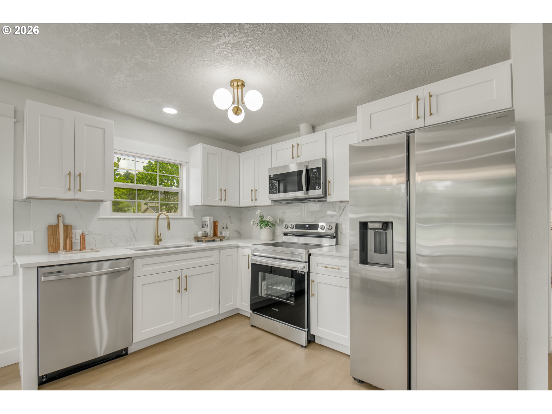 Welcome to this charming 3-bedroom home in the heart of Southeast Portland—perfect for comfortable, everyday living. Thoughtfully updated and move-in ready, this home offers a warm and inviting space to settle in and make your own.Inside, you’ll find a functional layout with well-sized bedrooms, a bright living area, and abundant natural light throughout. Enjoy mornings filled with natural light and evenings in a cozy, welcoming space. Recent updates include fresh interior and exterior paint, new flooring, and a beautifully remodeled kitchen featuring quartz countertops—ideal for cooking, gathering, and daily living.Located on a quiet residential street, the home offers a peaceful setting while still being close to parks, schools, shopping, and dining. With easy access to major commuter routes, getting around the city is simple and convenient. A new driveway and sidewalk add to the home’s curb appeal and everyday convenience.An unfinished basement provides additional storage or flexible space for hobbies. Washer, dryer, and refrigerator are included, making your move even easier.