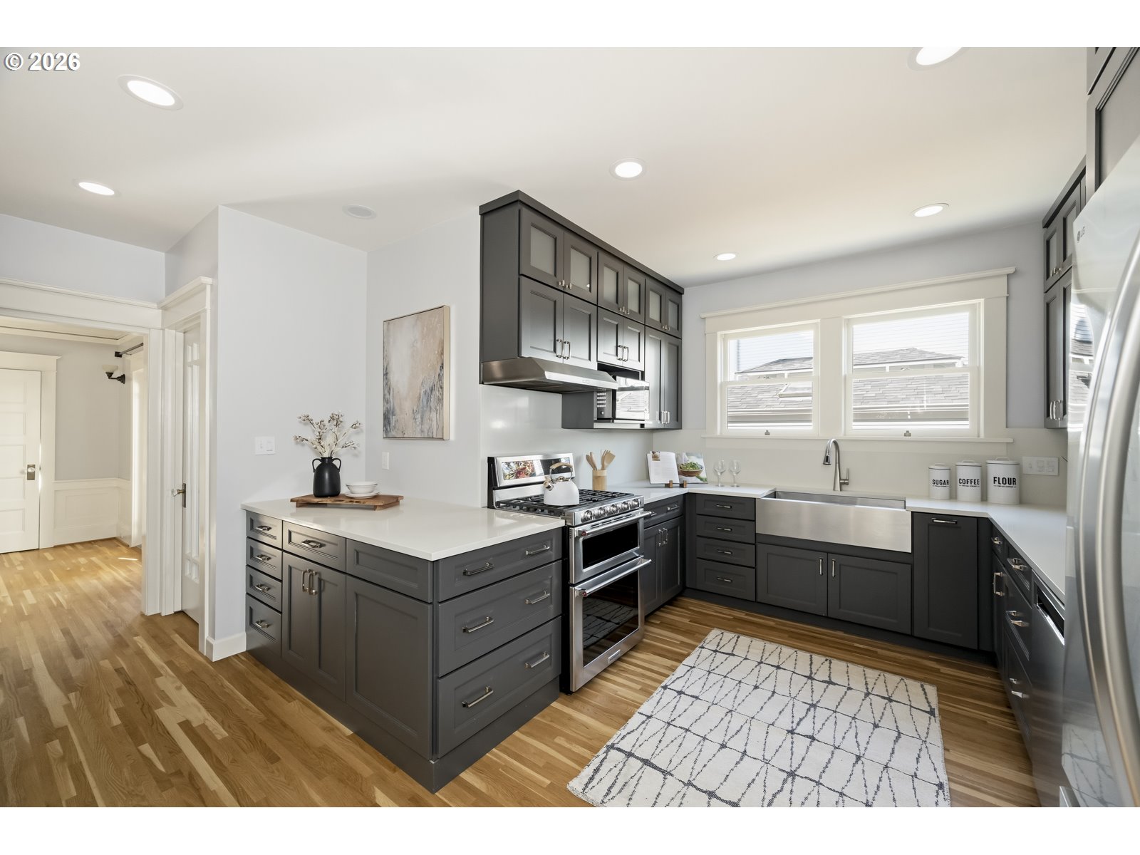 Irvington home in a prime central location! This classic 1916 Prairie-style residence welcomes you with a grand entry, stunning inlaid hardwood floors, and abundant natural light throughout its spacious rooms.The remodeled kitchen features quartz countertops, a farmhouse sink, stainless steel appliances, and modern cabinetry—blending style and function seamlessly. A generous family room addition opens to a private, low-maintenance backyard with paver stone patio and mature privacy hedge, perfect for entertaining and everyday living.Recent updates include a new roof 2025 and updated double-pane windows for added comfort and efficiency. A rare blend of timeless character and modern updates in one of Portland’s most sought-after neighborhoods.Steeped in history, the home was built in 1916 for Robert and Jeanie Sprouse of the Sprouse-Reitz five-and-dime dynasty of stores, who raised their family here for over 20 years. Since then, it has been lovingly cared for by a succession of owners—from business professionals to educators—each adding to its enduring legacy. Come experience the charm and become part of its story. [Home Energy Score = 3. HES Report at https://rpt.greenbuildingregistry.com/hes/OR10244410]