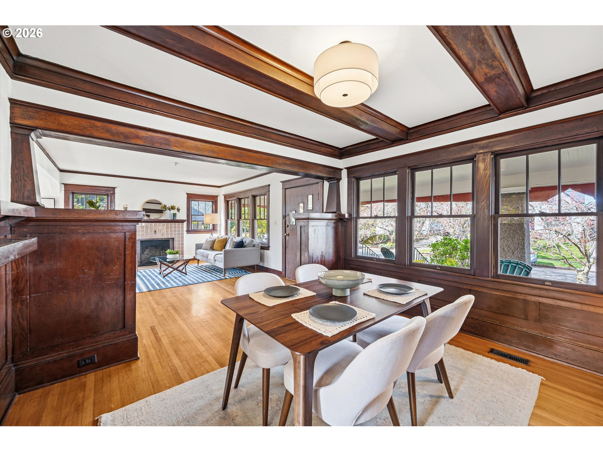 Welcome to this classic Craftsman in the heart of the coveted Beaumont neighborhood — where timeless character meets modern comfort on a street that truly feels like community.The main floor showcases the home's original soul: hardwood floors, stunning original woodwork, plate rails, and a built-in buffet with leaded glass windows. A grand living room flows into a formal dining room and a sunny family room, all flooded with natural light — including a spectacular leaded window overlooking the landscaped backyard. Step outside to a fully fenced yard with mature plantings, trex deck for quiet evenings and charming cobblestone-lined garden beds. The sunny East facing kitchen features new stainless steel appliances, a gas range with a professional hood vent & solid surface counters. A convenient powder room rounds out the main level. Upstairs, three generously sized bedrooms and a fantastic sunroom await, along with a fully renovated bathroom that strikes the perfect balance between old and new — a walk-in rainfall shower, with bench and frameless French doors paired with a generous console sink and classic subway tile. Original fir floors carry the home's warm character throughout the upper level. The fully finished basement expands your living space dramatically, with a family room, media room, dedicated office, full bath/laundry/storage room — room for everything and everyone. And then there's the grand front porch — the perfect perch to sip your morning coffee and soak in the warmth of one of NE Portland's most welcoming neighborhoods, steps from Beaumont Village's shops, cafés, and restaurants. This one checks every box. Come see it before someone else does. [Home Energy Score = 2. HES Report at https://rpt.greenbuildingregistry.com/hes/OR10246144]
