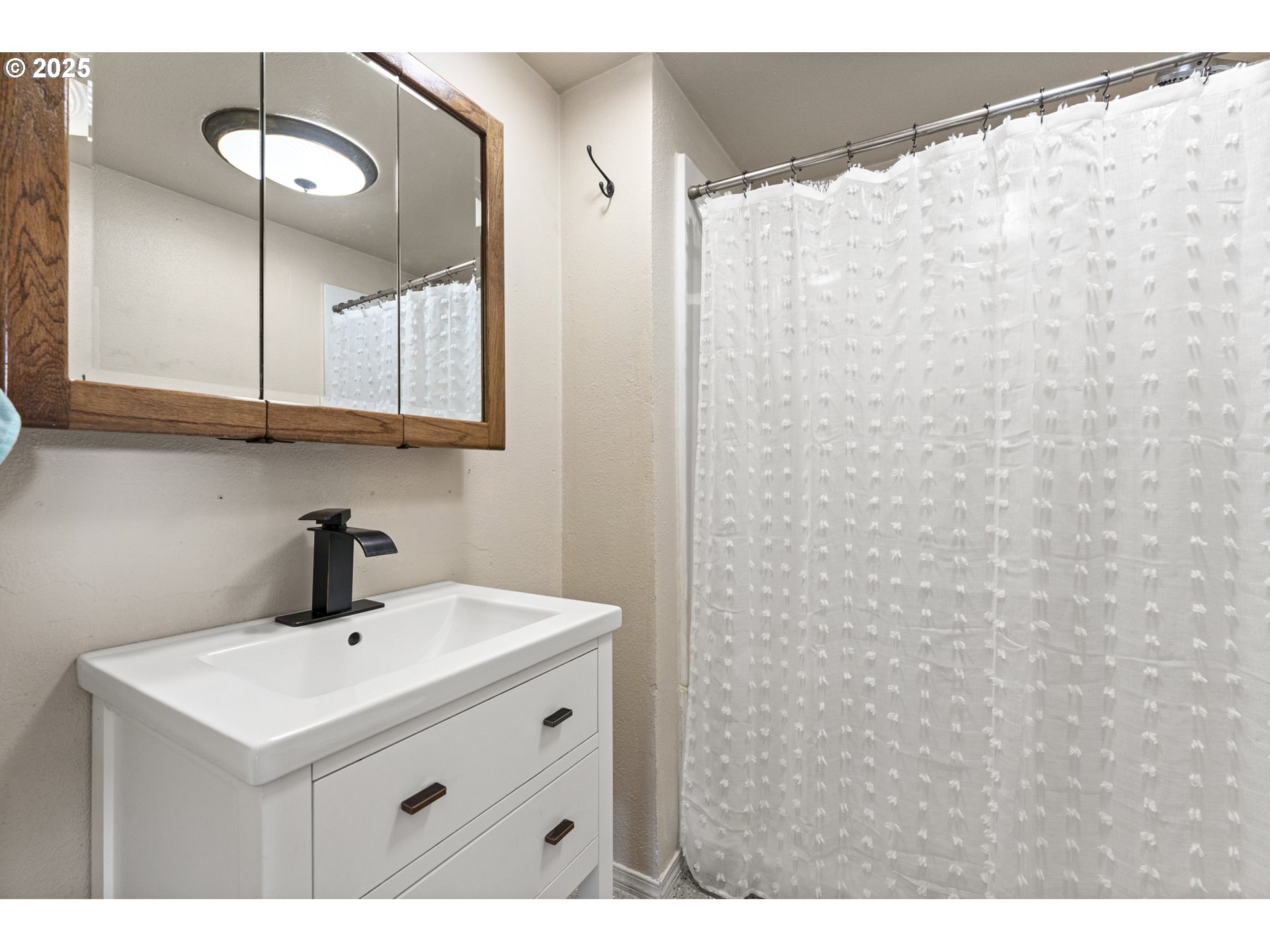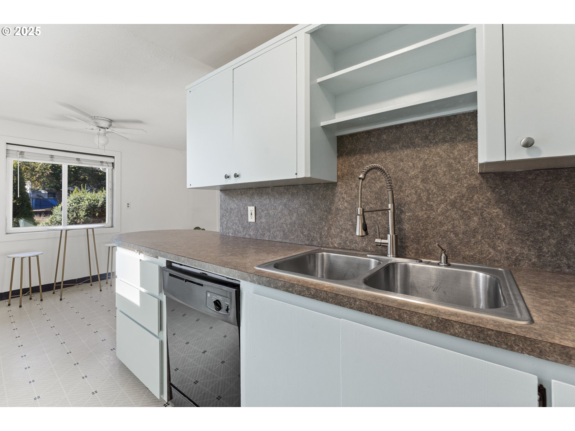 Step into this welcoming single-level home where comfort and functionality come together with ease! The spacious open-concept living area invites you in with its natural light and cozy gas fireplace. Freshly painted inside and out, this home features two comfortable bedrooms and one bath. The kitchen, with period details, flows seamlessly into the living and dining spaces, while patio doors open to a large deck overlooking the expansive backyard—a gardener’s dream—complete with fruit trees, blueberry bushes, and grapevines ready for harvest. The oversized garage provides ample space for storage, a workshop, or the potential to create a future studio. This home is the perfect blend of simplicity, charm and opportunity! [Home Energy Score = 6. HES Report at https://rpt.greenbuildingregistry.com/hes/OR10127124]