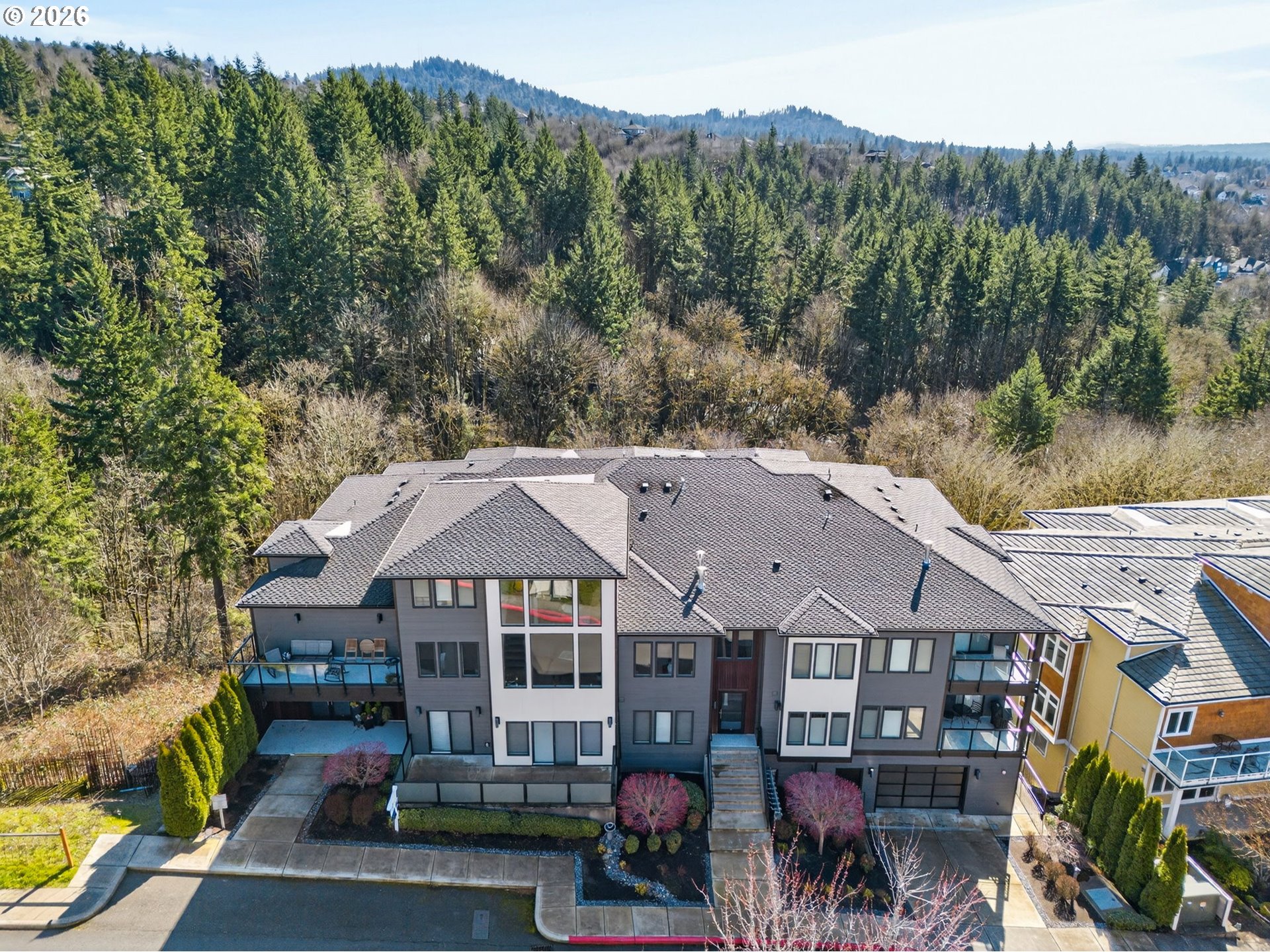 Modern and tranquil luxury condo nestled in the heart of Forest Heights. This pristine single level residence offers a light filled open layout with high end finishes throughout. The great room is anchored by a cozy gas fireplace, and flows seamlessly into a gourmet kitchen. The kitchen features an oversized island with seating, quartz countertops, and stainless steel appliances, ideal for both everyday living and entertaining. Step outside to a generous deck overlooking lush trees and surrounding nature, creating a peaceful, private setting. Nearby walking trails lead directly into the expansive Forest Heights trail system. Enjoy the beauty of a professionally landscaped community, perfect for those seeking a lock and leave lifestyle without the burden of yard work. The spacious primary suite includes a spa inspired bathroom, walk in closet, and direct deck access for morning coffee or evening relaxation. Additional highlights include a secure building, elevator access, a private storage room, and two deeded side by side parking spaces. No stairs are required in going from the garage or curb to the condo front door. Enjoy the best of Forest Heights living with nearby walking trails, the Village Center, andJim and Patty’s Coffee, with easy access to downtown, Nike, and Intel. A rare opportunity to experience luxury, convenience, and serenity all in one.