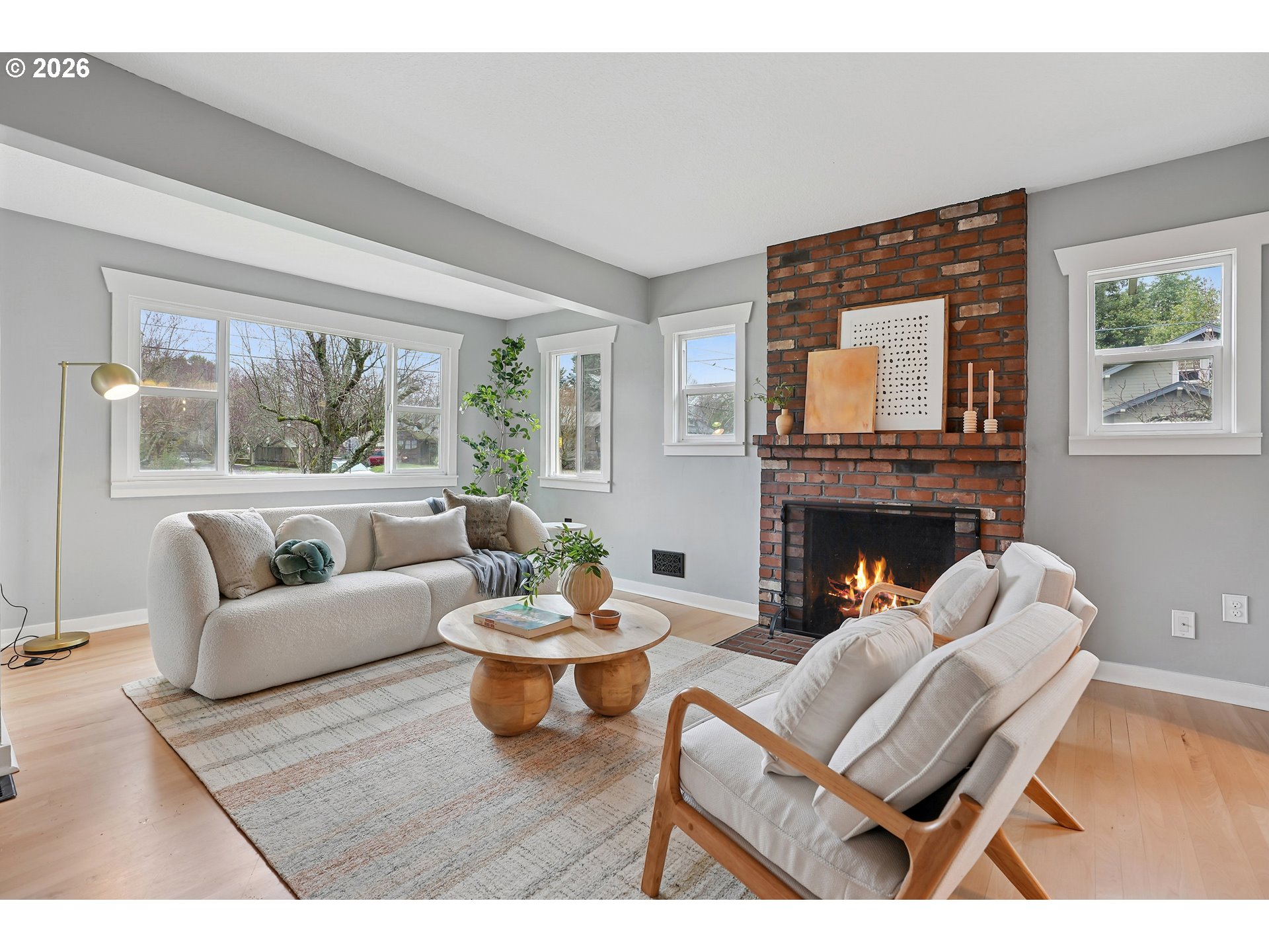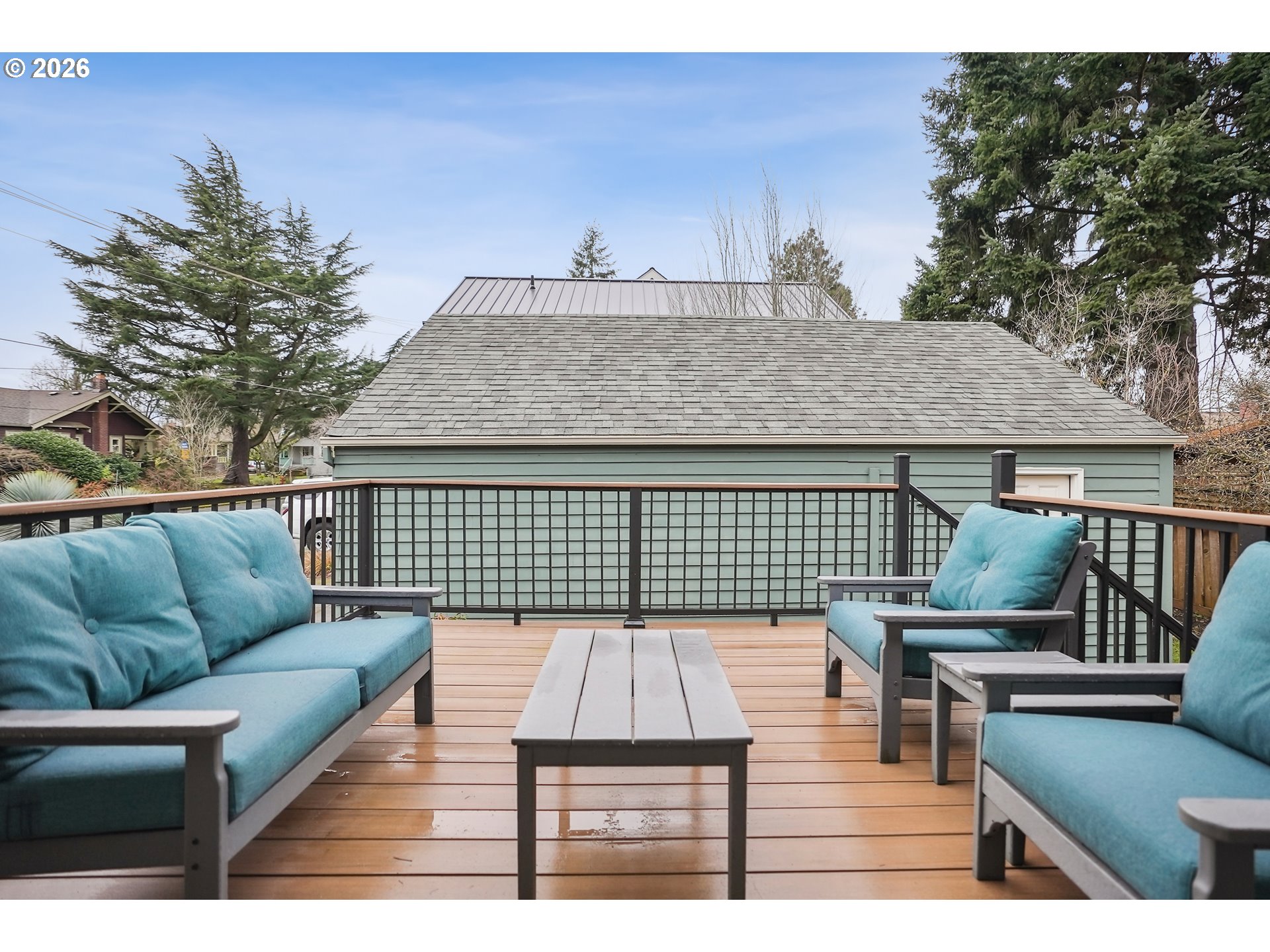 Perched on a sunny corner lot on a quiet, tree-lined street in coveted Beaumont-Wilshire, this home pairs classic Portland charm with thoughtful updates. Inside, a light-filled living room with oversized windows welcomes you in, along with a built-in foyer and an elegant staircase leading to the primary suite. The main level flows beautifully into the formal dining room and an upgraded kitchen featuring updated cabinetry and GE Café appliances; including a WiFi-enabled double oven.Two main-floor bedrooms and a fully updated bathroom offer easy, flexible living. Upstairs, retreat to a spacious primary suite with a private en suite bath and abundant storage. Downstairs, the basement adds a bonus room, workbench, and tons of additional storage - perfect for hobbies, projects, or gear.Outside, enjoy a Trex deck patio for summer lounging, plus a large detached two-car garage and driveway parking. Just a few blocks from Beaumont Village along NE Fremont—lined with beloved restaurants, coffee shops, boutiques, artisanal cafés, and local bakeries—this home delivers the best of both worlds: peaceful residential charm with effortless access to daily essentials and vibrant neighborhood energy.