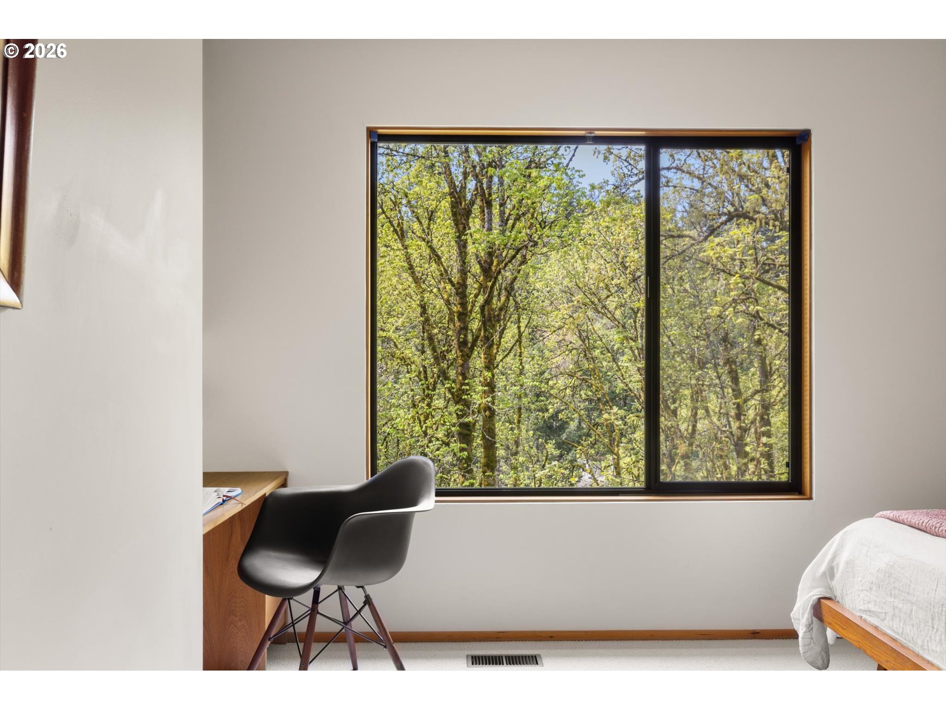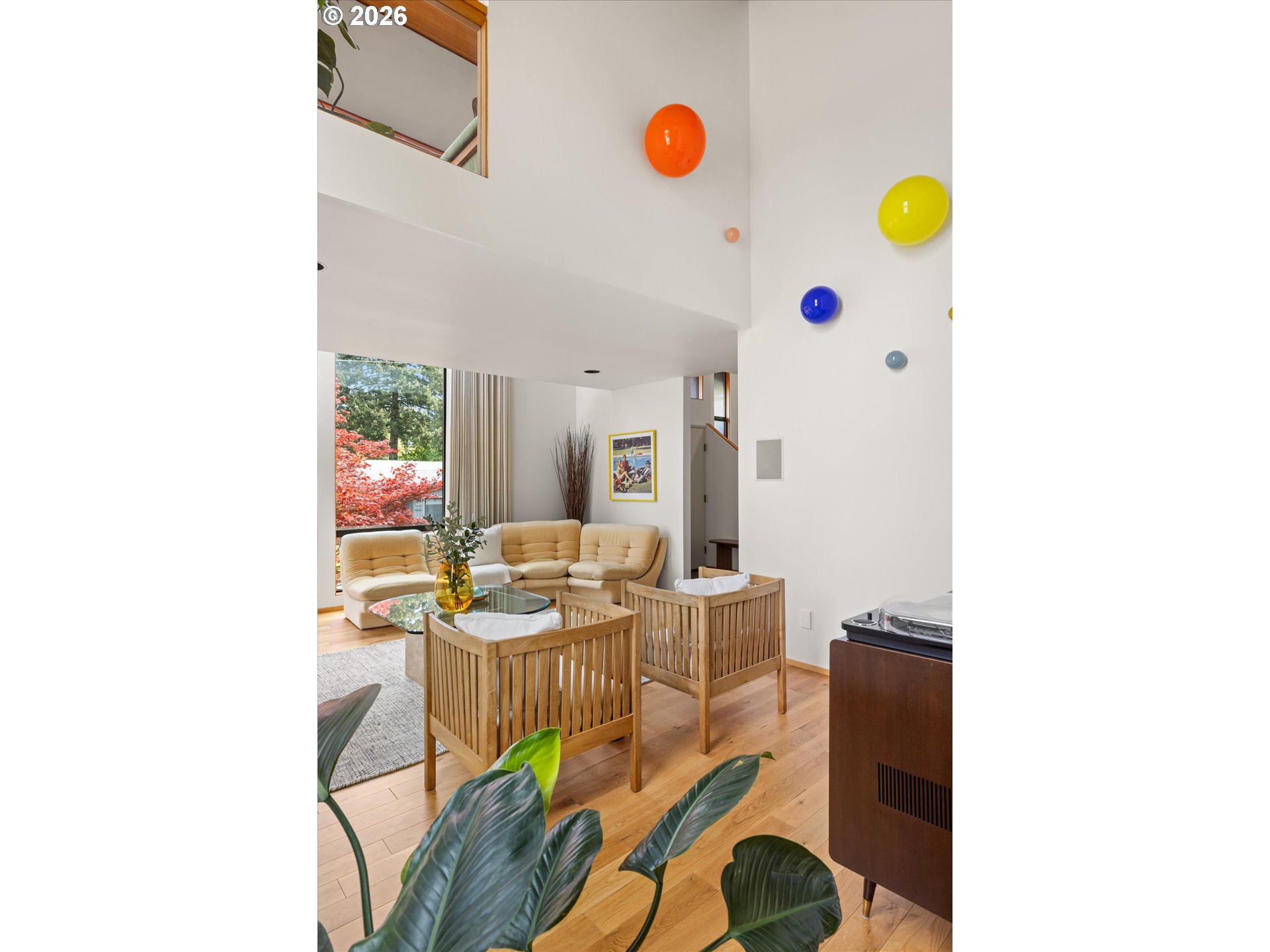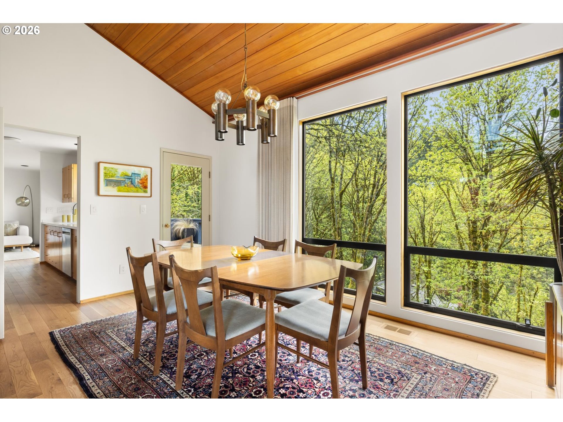 (503) 893-8874** OPEN HOUSE Sat 4/25 12-3pm. Private tours for buyers without agent representation can be booked at calendly.com/tour-time ** Designed by architectural team of York & Yodogawa & originally built for H. Chik M. Erzurumlu, a structural engineer & longtime Portland State professor, this home reflects a clear understanding of how space, light, & structure come together over time. When his wife fell ill, an elevator was added to connect each floor and the garage, allowing them to remain in the home they had created together. Set at the end of a quiet cul-de-sac, this one-of-a-kind home is grounded in its setting, balancing open outlooks with a sense of privacy among the surrounding trees. Natural light pours through expansive windows, including a dramatic two-story living room with floor to ceiling glass that frames Mt. St. Helens and layered views. A series of levels, loft space, & decks create moments for gathering & retreat, with a dedicated formal dining area positioned to take in the forest outlook. The kitchen is complete with Bertazzoni oven and Bosch refrigerator. A vaulted cedar ceiling brings warmth and scale to the main living areas, complemented by a gas fireplace, 4-inch oak floors underfoot, & custom cabinetry that carries throughout the home. Bathrooms are finished in imported travertine and Ann Sacks tile. The lower level is dedicated to three bedrooms, each with generous picture windows that look directly into the surrounding forest. The loft, complete with a wet bar & private deck, offers a more tucked away place to retreat, with generous storage thoughtfully integrated. With a high efficiency gas furnace, a whole house generator, & low maintenance grounds, the home is as considered in function as it is in feeling. In a setting where multi-level homes are often the norm, the elevator to every level, including the garage, offers long term ease and flexibility, all just moments from OHSU, nearby parks, trailheads, and a quick connection into the city.