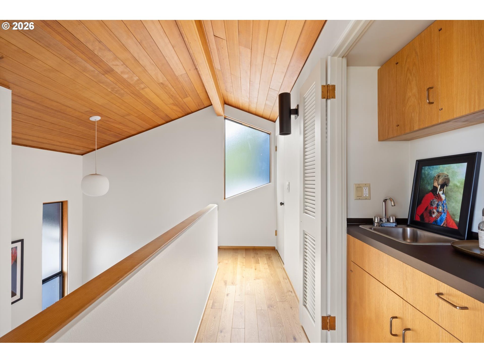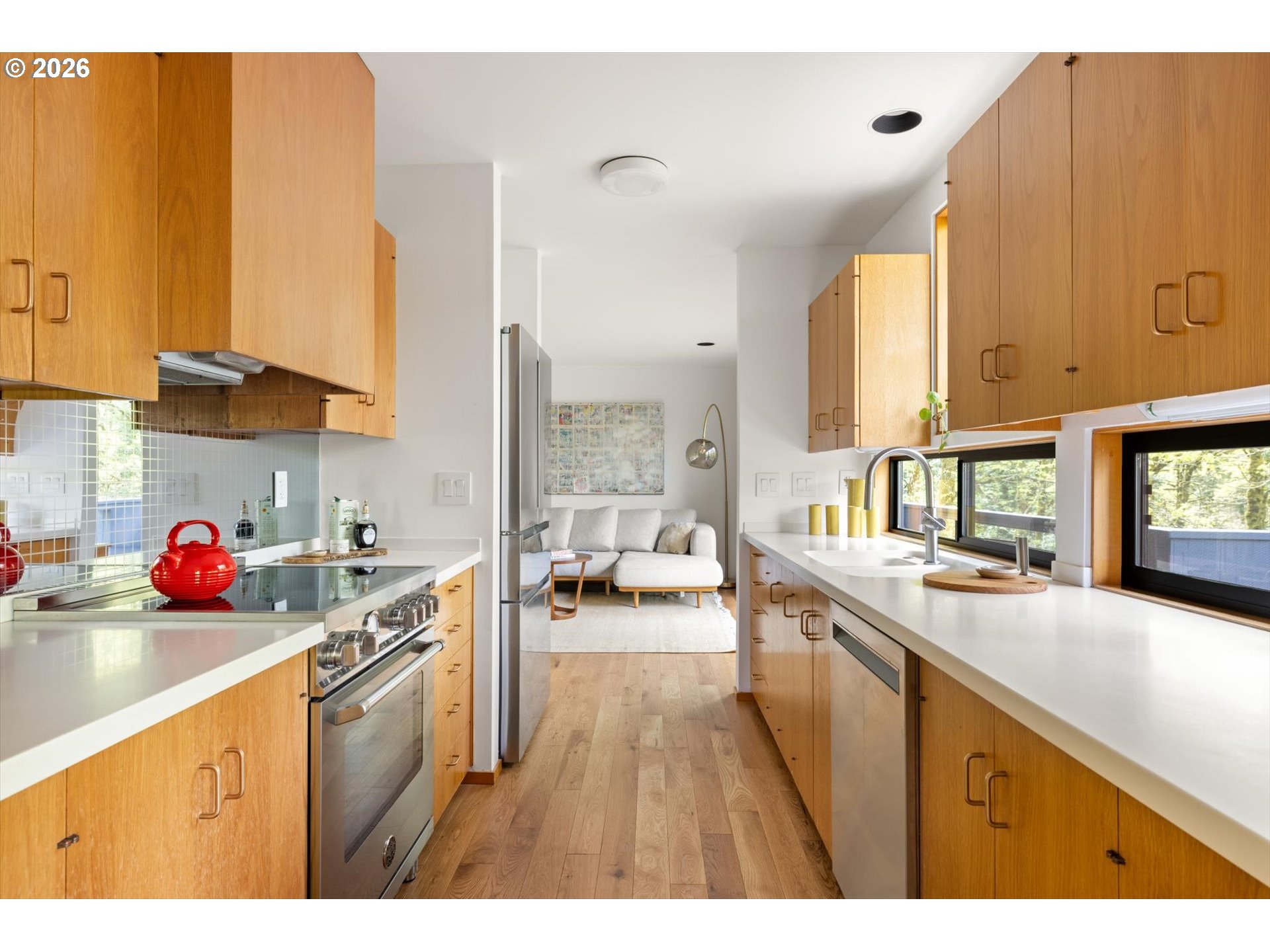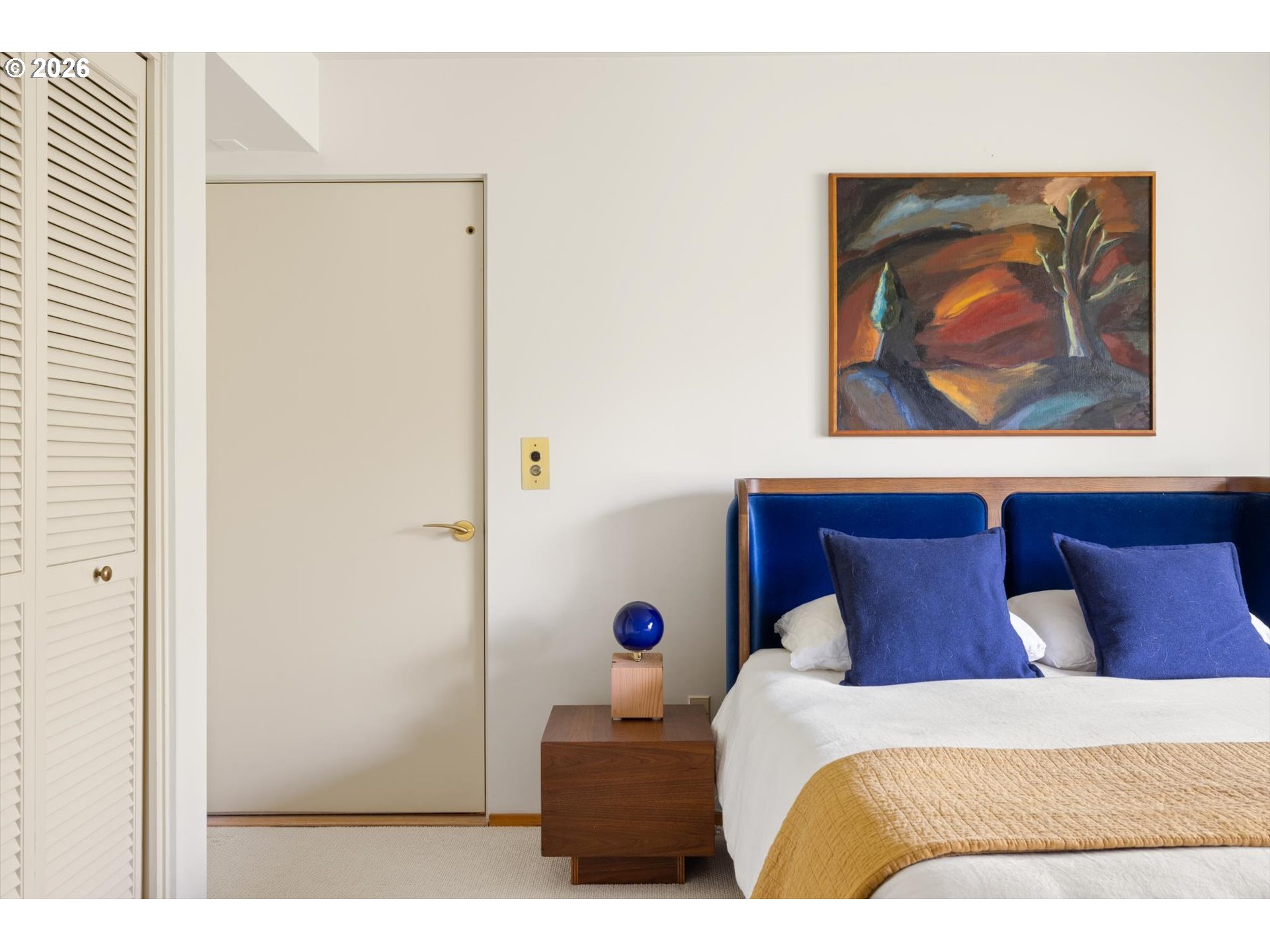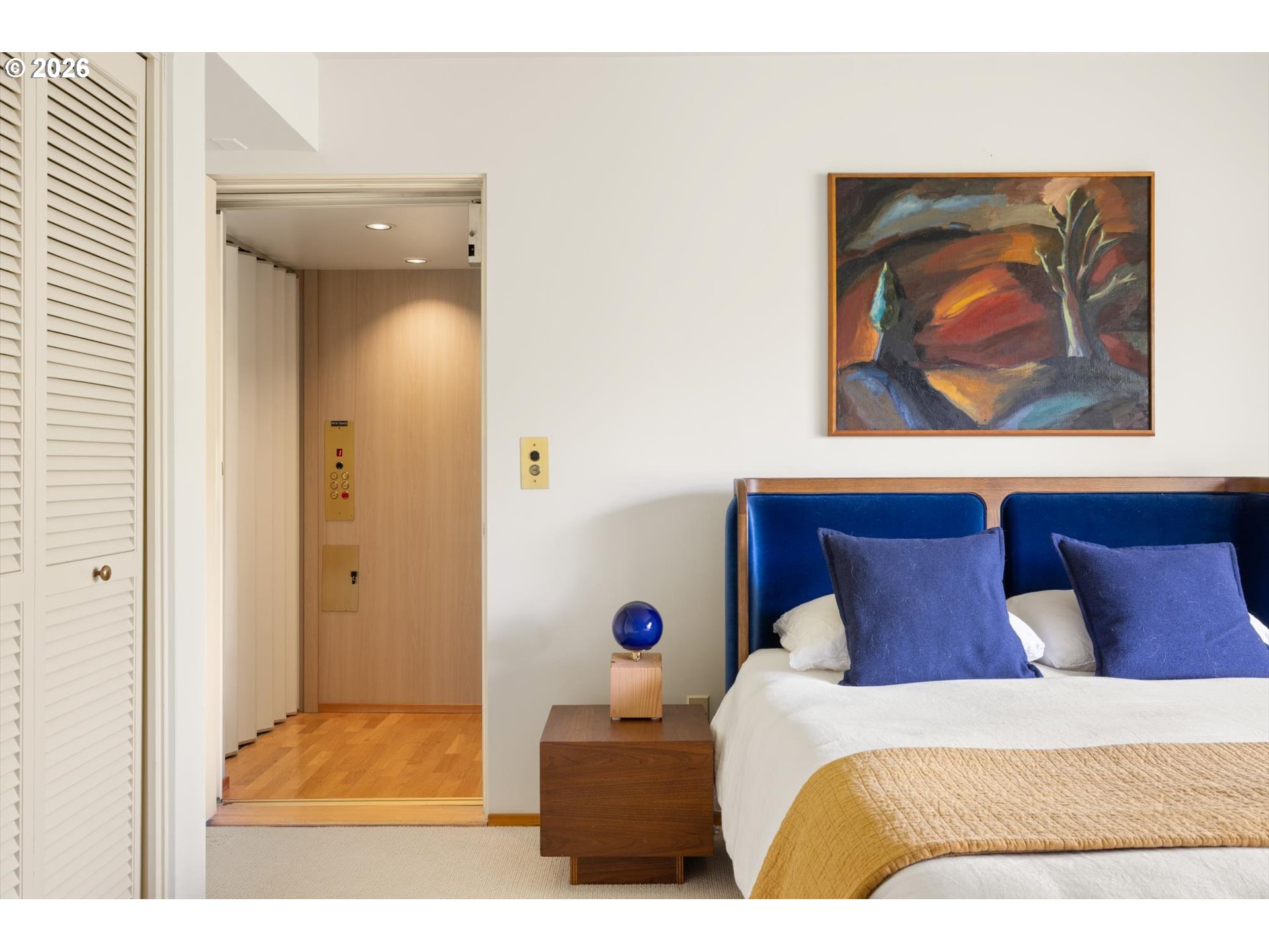 (503) 893-8874** OPEN HOUSE Sat 4/25 12-3pm. Private tours for buyers without agent representation can be booked at calendly.com/tour-time ** Designed by architectural team of York & Yodogawa & originally built for H. Chik M. Erzurumlu, a structural engineer & longtime Portland State professor, this home reflects a clear understanding of how space, light, & structure come together over time. When his wife fell ill, an elevator was added to connect each floor and the garage, allowing them to remain in the home they had created together. Set at the end of a quiet cul-de-sac, this one-of-a-kind home is grounded in its setting, balancing open outlooks with a sense of privacy among the surrounding trees. Natural light pours through expansive windows, including a dramatic two-story living room with floor to ceiling glass that frames Mt. St. Helens and layered views. A series of levels, loft space, & decks create moments for gathering & retreat, with a dedicated formal dining area positioned to take in the forest outlook. The kitchen is complete with Bertazzoni oven and Bosch refrigerator. A vaulted cedar ceiling brings warmth and scale to the main living areas, complemented by a gas fireplace, 4-inch oak floors underfoot, & custom cabinetry that carries throughout the home. Bathrooms are finished in imported travertine and Ann Sacks tile. The lower level is dedicated to three bedrooms, each with generous picture windows that look directly into the surrounding forest. The loft, complete with a wet bar & private deck, offers a more tucked away place to retreat, with generous storage thoughtfully integrated. With a high efficiency gas furnace, a whole house generator, & low maintenance grounds, the home is as considered in function as it is in feeling. In a setting where multi-level homes are often the norm, the elevator to every level, including the garage, offers long term ease and flexibility, all just moments from OHSU, nearby parks, trailheads, and a quick connection into the city.