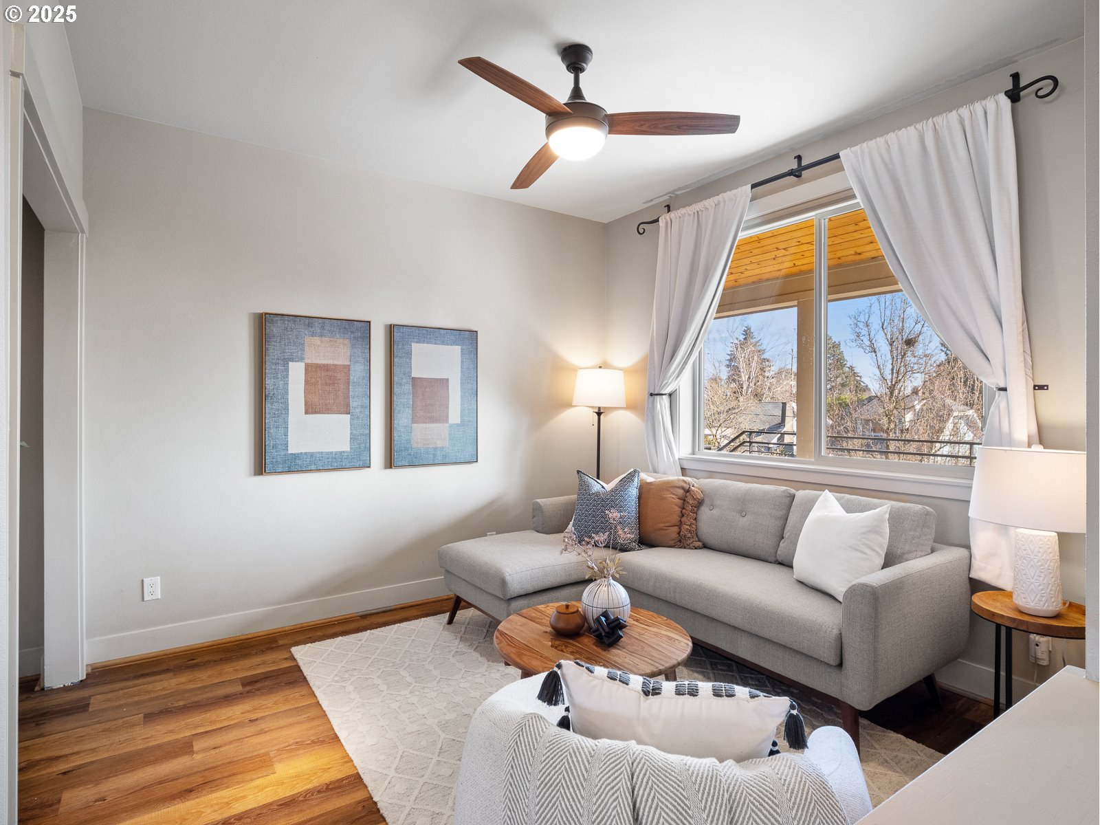 Stunning Overlook condo on the bluff with Willamette River views! This property features two bedrooms plus an office, as well as a ground floor den that could be turned into a full third bedroom. Step in from the secure, gated entrance into your unit and immediately notice the engineered wood floors, tall ceilings, and modern industrial vibes. The main floor is airy and spacious, with an entertainer's kitchen that offers upgraded Bosch and GE appliances, a comfortable living room with gas fireplace, and access to the private balcony with gas-piped barbeque. Upstairs, you'll find an incredible oversized primary bedroom retreat, complete with ensuite bath and a second private balcony for enjoying your morning coffee while taking in the view. This floor offers a second bedroom, full bath, and a dedicated private office with skylight. This unit has been beautifully maintained and upgraded with thoughtful touches throughout, including a brand new hot water heater and newer mini splits for comfortable living in any weather. With deeded, secure off street parking and an incredible location near both the Adidas campus and UoP, this property can't be beat!