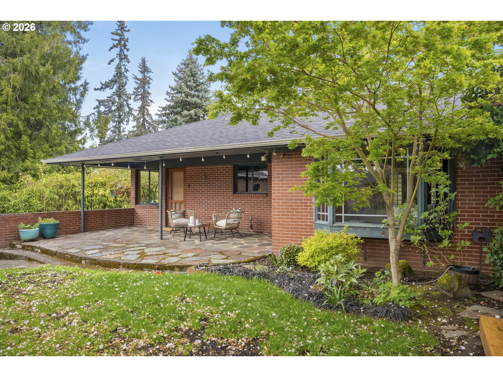(503) 893-8874Experience the rare combination of mid-century character, spacious (mostly) single-level living, & an exceptional double lot on one of Portland's most desirable streets in Alameda. This is the kind of home that stands out for its timeless style. The inviting vaulted front foyer welcomes you with glass block windows & a sense of lightness as you enter. Inside, the home opens to expansive living spaces in all directions, filled with natural light, featuring original wall paneling, coffered ceilings, & a marble mantel. To your left, the large living room is designed for both comfort & entertaining, while to the right, the formal dining room with built-in buffet adds a touch of classic elegance. The kitchen offers expansive counters, corner windows with lovely light, a breakfast nook, and generous pantries (plural). Off the foyer is also a wonderful family room/den, with double pocket doors, intricate herringbone flooring, handsome wood paneling, & classic builtins - plus an area to revert back to a classic wet bar. Down the hallway the huge front bedroom includes double closets with built-in dressers. Past the front bedroom, down a hallway lined with built-in storage leads to a spacious bathroom with a soaking tub & glass shower. Further, the primary suite awaits and is a true retreat, complete with two large walk-in closets, built-in dressers, & original en suite features with marble tile and a large vanity. Off the primary suite, the french doors open to the backyard, creating an easy connection to the outdoor spaces. Step outside to a backyard oasis with mature plantings, beautiful gardens, dedicated flower beds, & back patio. Access to the oversized double-car garage off the large driveway providing excellent parking & utility. Finally, additional living flexibility continues below with an exterior entrance to the basement bedroom, complete with an egress window and double closets. It is perfect for a guest room, home office, or entertainment room. [Home Energy Score = 1. HES Report at https://rpt.greenbuildingregistry.com/hes/OR10246718]