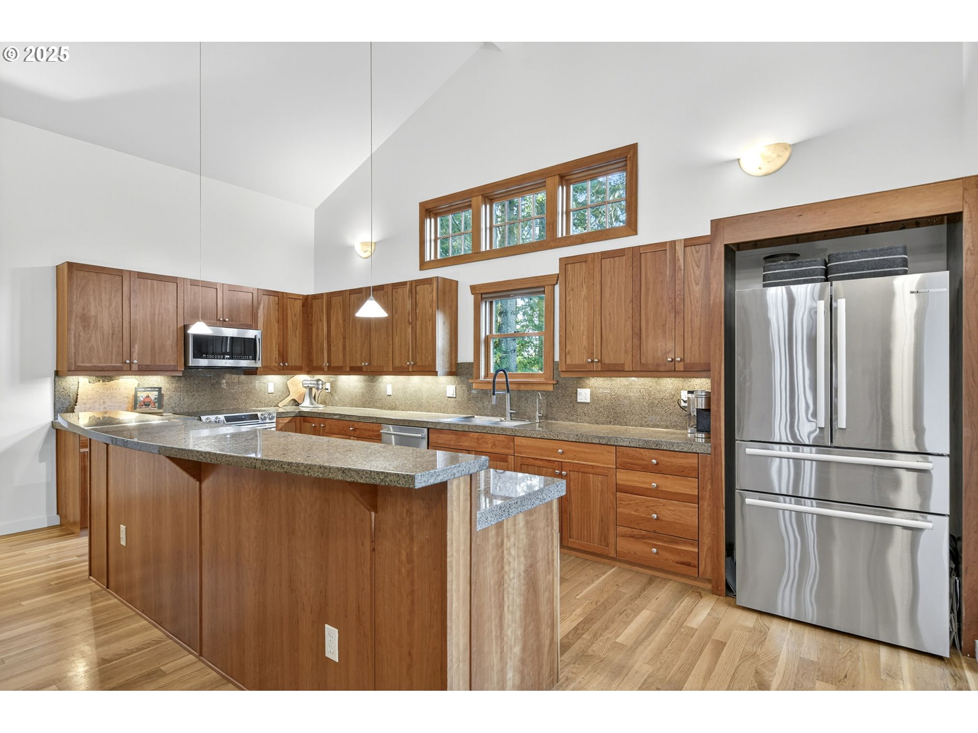 Enjoy the tranquil treescape and dappled light in this Pacific Northwest craftsman home only minutes from Portland’s urban edge, yet worlds away from the everyday. This home exudes cozy charm and comfort. Featuring natural cedar siding, a covered porch made for rainy-day reading, and walls of windows that frame the forest; this home lives like living art. Step inside and you’ll find warm wood tones, exposed beams, and an open-concept living space that invites deep breaths and slower mornings.The heart of the home is the vaulted great room with stone fireplace, natural wood details, and ample space for guests to gather. The kitchen features granite countertops, stainless steel appliances, and plenty of counter space for creative cooking. A formal dining area and a fun bar with a forest view round out the dining options.The primary suite feels like a retreat within a retreat—open the French doors for birdsong, and relax in a spa-inspired bath complete with soaking tub. Additional bedrooms and a flexible lower level offer room for guests, creative work, or simply more space to breathe. Every inch of the home is thoughtfully designed to make the most of its natural setting, with moments of tranquility around every corner.If your soul craves the quiet of the woods, but your life keeps pulling you back to the city—this is your perfect perch.