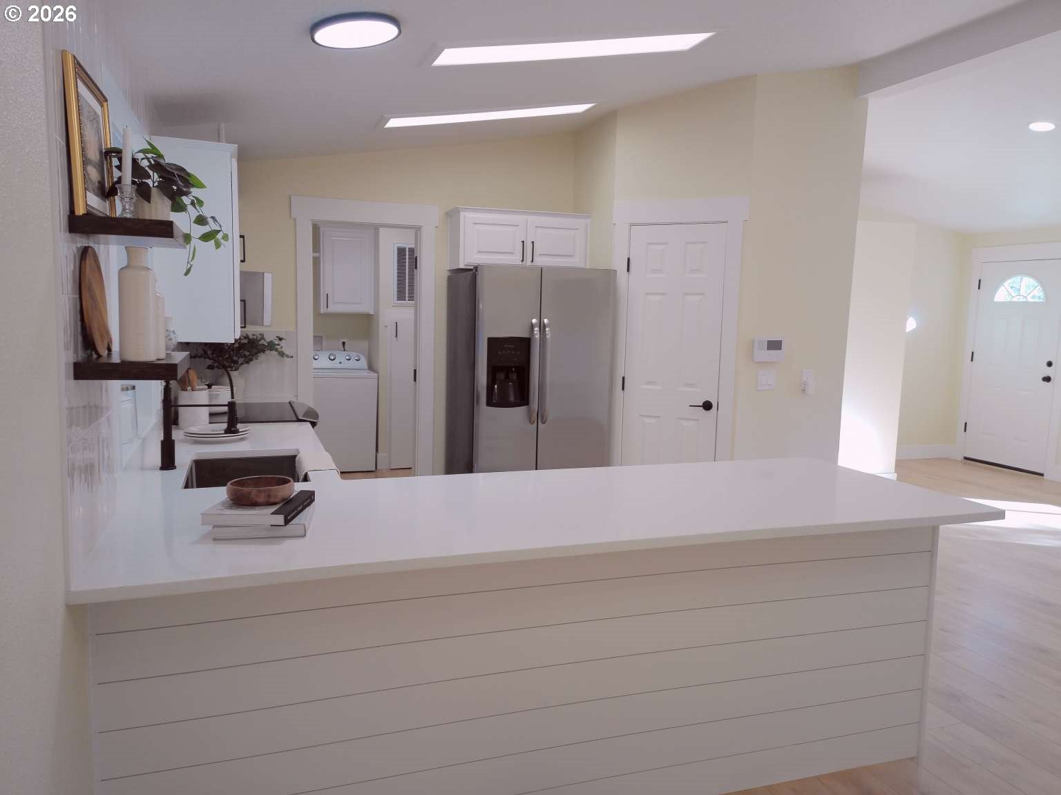 Stunning three bedroom two bathroom home that is move in ready and very affordable. Completely redone from inside and out offering you that peace of mind. On the outside you'll find a newer roof, fresh paint, new fully enclosed fence, tasteful landscaping with a stamped concrete patio and more. The deep driveway, oversized carport, and storage shed provide great convenience. The interior showcases new flooring, trim, paint, and a modern kitchen with quartz countertops, full wall tile backsplash, stainless steel appliances, and tasteful finishes. Open floor plan with vaulted ceilings, large bedrooms and a walk in pantry. Primary bedroom has a built in desk and a very large walk in closet. And then you have the awesome location- Very quiet and peaceful neighborhood with Blue Lake down the street. Perfect for outdoor activities and scenic views. Don’t miss out on this amazing opportunity, schedule your showing today! Monthly space rent is $1,225. Buyer must obtain park approval.