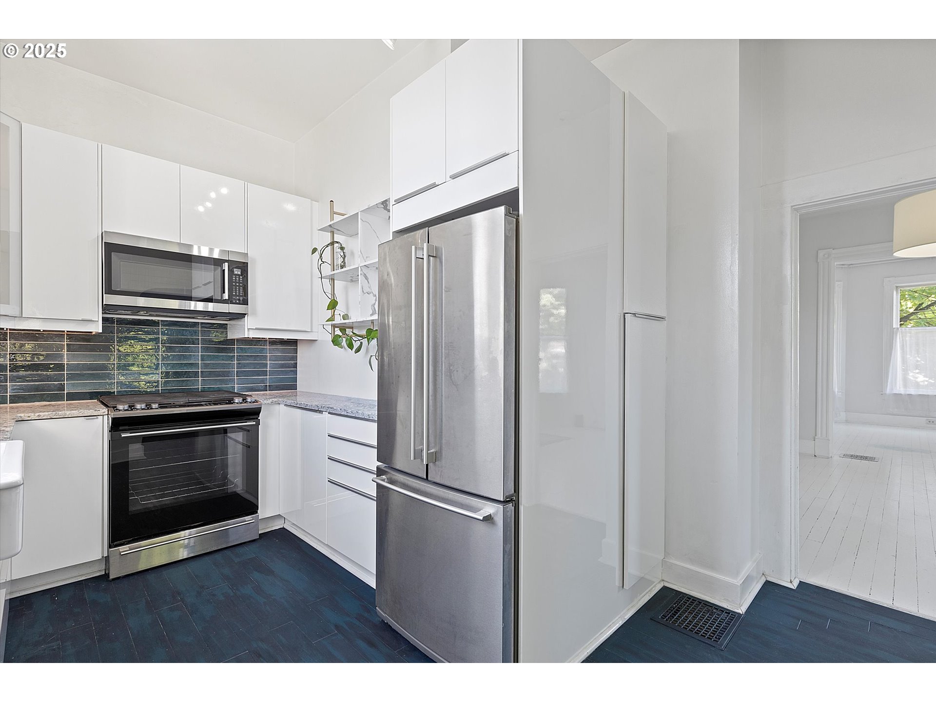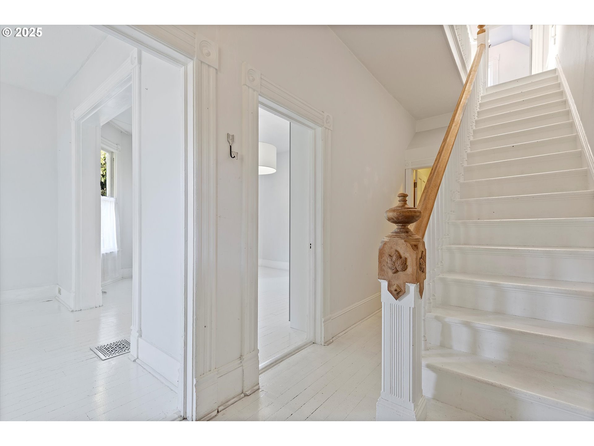 This two-unit Queen Anne Victorian home conveniently located near OHSU, the Tram, South Waterfront, and the Gibbs Street Pedestrian Bridge, blends timeless character with modern versatility. The main and upper levels feature a 3-bed, 2-bath residence with soaring ceilings, oversized original windows, and abundant natural light. Period details—fir floors, stained glass, and hand-carved newel posts—anchor the home, while an updated kitchen with stainless appliances adds modern functionality. Generous upstairs bedrooms capture city vistas and peek-a-boo river views. Outdoor living includes a large, partially covered deck and a private fenced courtyard. The ground-level unit, tucked into the mature landscape, offers spacious 1-bed, 1-bath dwelling with a full kitchen, living area, and its own dedicated entry. Whole-home improvements include separate electric meters, a newer sewer line, roof and gutters, and separate laundry facilities for each unit. This property is a rare opportunity for flexible living—whether owner-occupied with rental income, multi-generational living, or investment—in one of Portland’s oldest and most connected neighborhoods.
