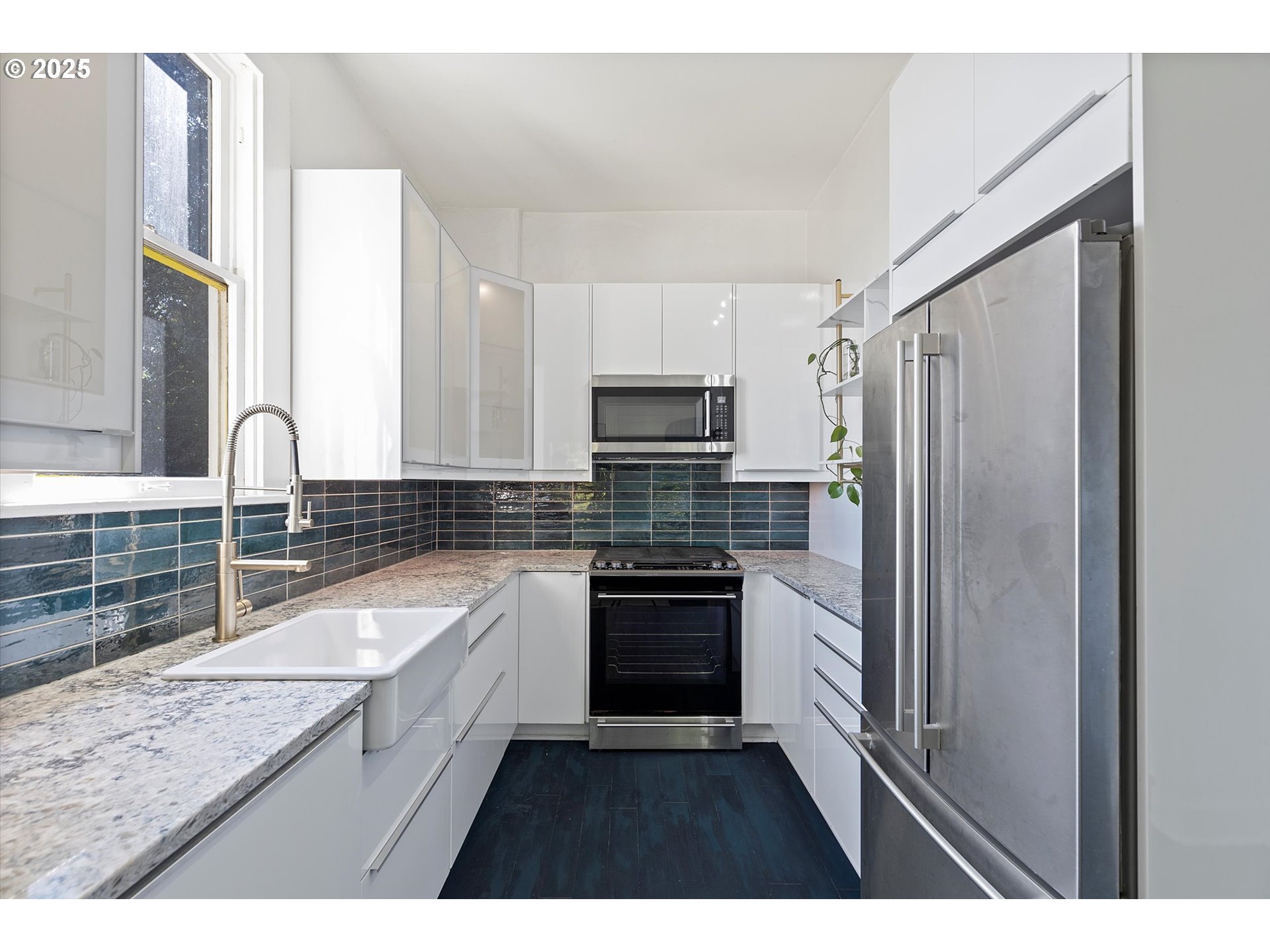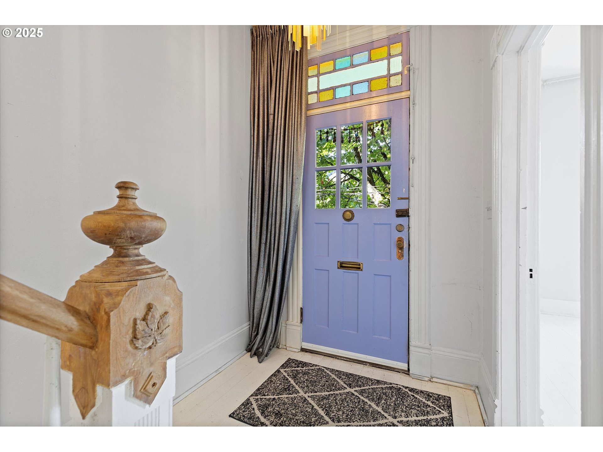 This two-unit Queen Anne Victorian home conveniently located near OHSU, the Tram, South Waterfront, and the Gibbs Street Pedestrian Bridge, blends timeless character with modern versatility. The main and upper levels feature a 3-bed, 2-bath residence with soaring ceilings, oversized original windows, and abundant natural light. Period details—fir floors, stained glass, and hand-carved newel posts—anchor the home, while an updated kitchen with stainless appliances adds modern functionality. Generous upstairs bedrooms capture city vistas and peek-a-boo river views. Outdoor living includes a large, partially covered deck and a private fenced courtyard. The ground-level unit, tucked into the mature landscape, offers spacious 1-bed, 1-bath dwelling with a full kitchen, living area, and its own dedicated entry. Whole-home improvements include separate electric meters, a newer sewer line, roof and gutters, and separate laundry facilities for each unit. This property is a rare opportunity for flexible living—whether owner-occupied with rental income, multi-generational living, or investment—in one of Portland’s oldest and most connected neighborhoods.