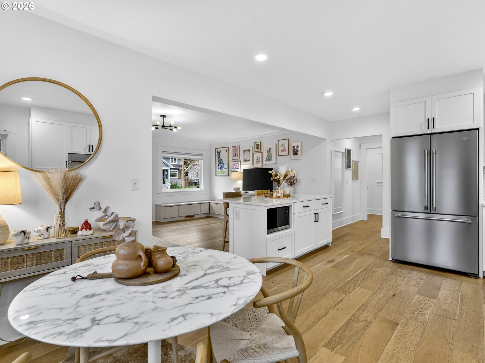 Love Alert in Beaumont/Rose City Park! Storybook English Cottage-style home on a sunny corner lot, beautifully and fully remodeled from top to bottom - including updated plumbing and electrical. This 3BR/2BA home keeps its classic character while feeling completely dialed in for today's living. The open kitchen , dining, and living areas create an easy, connected flow perfect for everyday life and entertaining. The kitchen and bathrooms have been thoughtfully renovated, and the entire home reflects quality craftsmanship throughout. Double-pane windows add comfort and efficiency year-round. Downstairs, there's 800+ sq ft of unfinished basement space - a blank canvas with exciting potential. Outside, enjoy a private patio with classic breeze block detailing, raised garden beds for the gardener, and established blueberry bushes ready for summer picking. The detached garage includes electricity and easily functions as a workshop, studio, or flexible bonus space. Just blocks from the Beaumont shops and neighborhood cafés along NE Fremont, you'll love having some of Portland's favorite local spots right outside your door - while enjoying the charm and community feel that makes this neighborhood so special. Classic character. Smart updates. An unbeatable location. This one just feels like home! OPEN HOUSE SAT/SUN 12:00-3:00.. [Home Energy Score = 5. HES Report at https://rpt.greenbuildingregistry.com/hes/OR10202570]