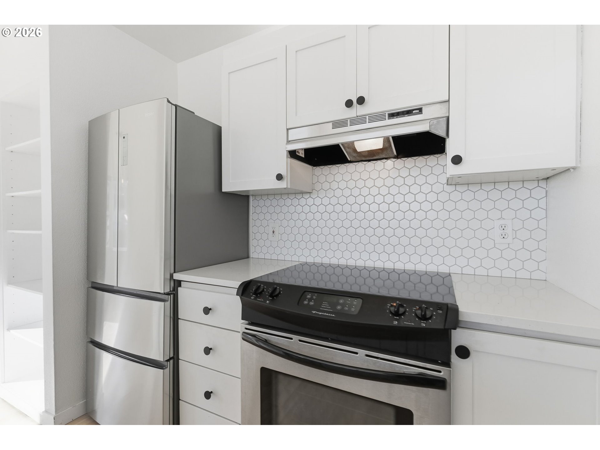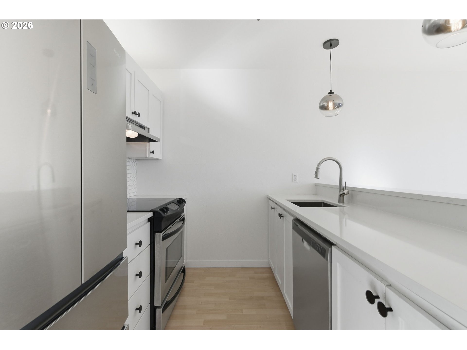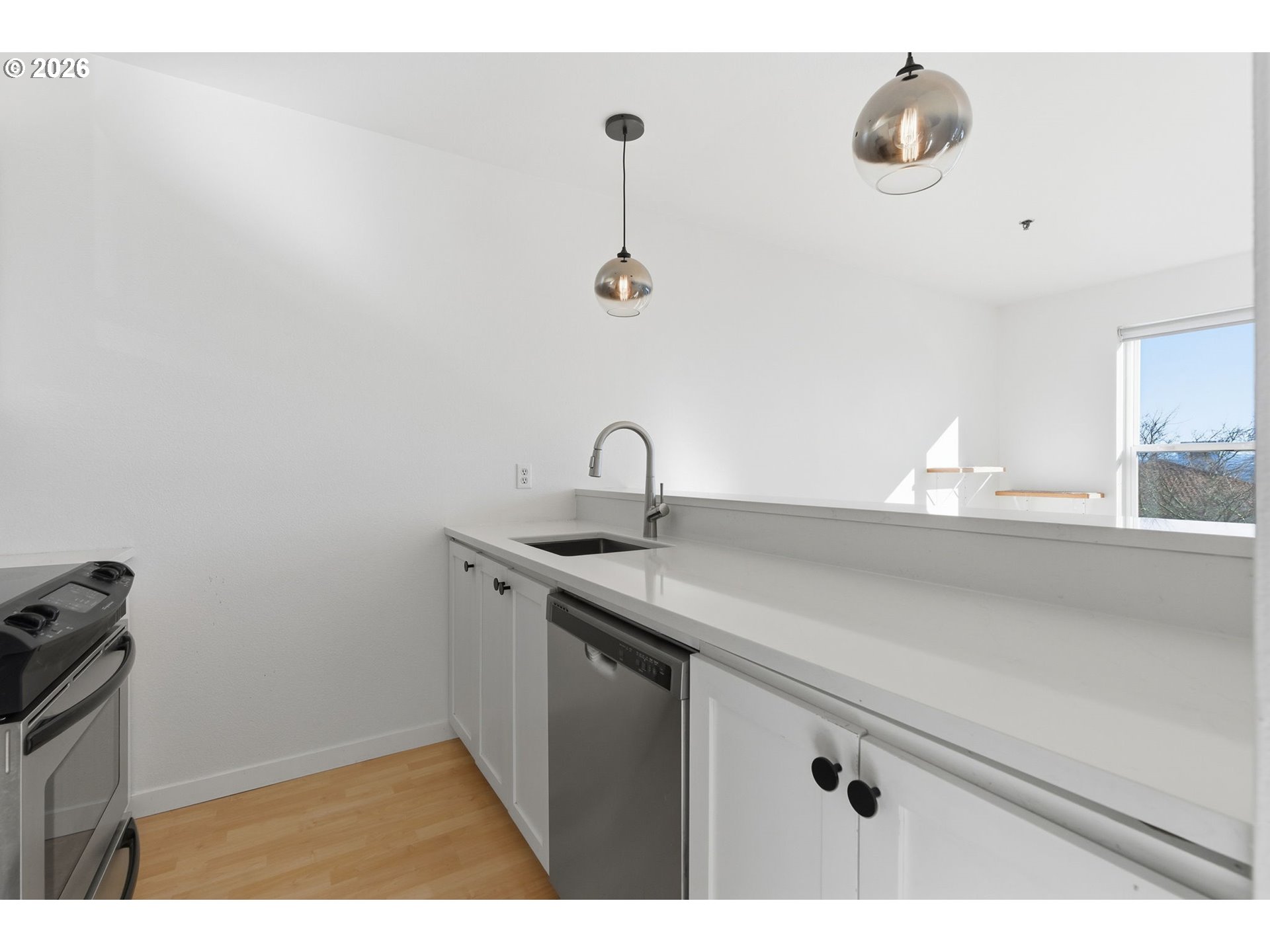 Enjoy breathtaking views, peaceful living, and unbeatable walkability in this beautifully updated condo tucked away in a serene, wooded setting- just steps from the vibrant shops, dining, and energy of NW 23rd. Perfectly positioned up one flight of stairs, this home truly lives large, offering privacy, quiet, and exceptional natural light.The bright and inviting living room flows seamlessly into an open kitchen featuring sleek quartz countertops and stainless steel appliances- ideal for both everyday living and entertaining. The spacious bedroom includes a generous walk-in closet with ample storage, creating a comfortable and functional retreat.A rare highlight of this home is the massive, 10.5' x 17' oversized outdoor patio- the largest in the complex- perfect for hosting friends, relaxing with morning coffee, or enjoying the peaceful surroundings and incredible views. These condos are renowned for having some of the best views in all of Downtown Portland, set within a secluded, clean, and private enclave surrounded by mature trees.Additional features include an assigned parking space (#36), extra storage, and access to a community dog area conveniently located below the lower buildings. With low HOA dues and a fully updated, clean, and bright interior, this condo offers an exceptional combination of comfort, privacy, and location- truly one of the best values in the city. You cannot beat it!