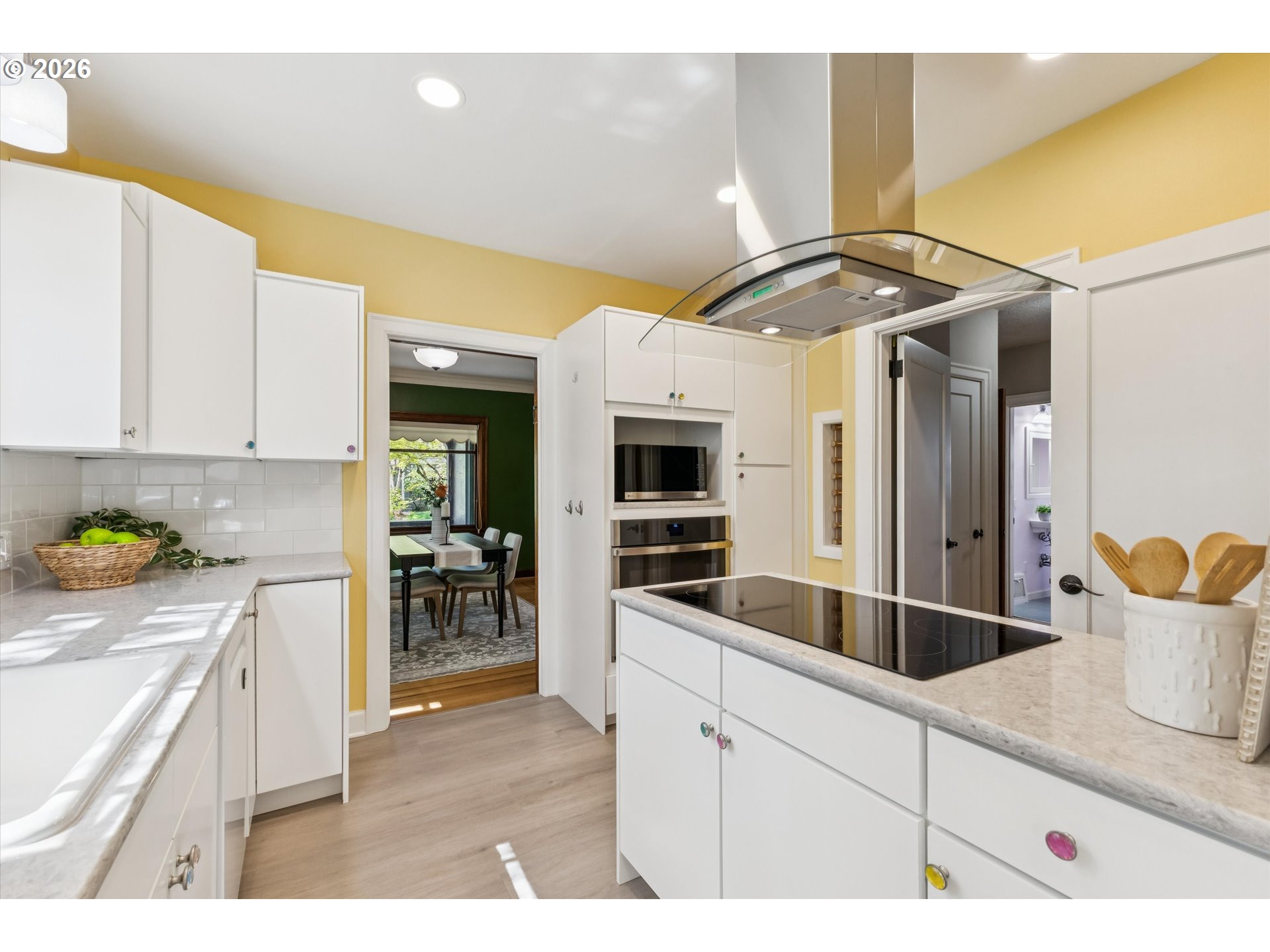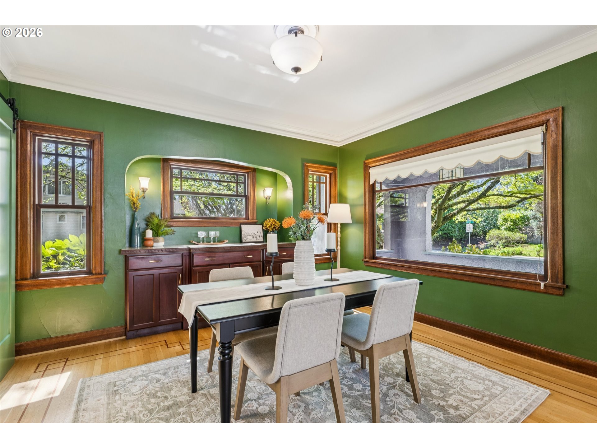 Nestled on a picturesque tree-lined street in the highly sought-after Irvington neighborhood, this beautifully maintained 1929 English Craftsman blends timeless character with thoughtful updates throughout. Offering 5 ample bedrooms and 3 full bathrooms - one on each level, this spacious home provides flexibility, comfort, and room to grow.Step inside to discover rich hardwood floors, classic archways, and custom beveled windows that fill the living spaces with warmth and natural light. Each room offers its own cozy, unique feel, creating a home full of personality and charm.The updated kitchen is both stylish and functional, featuring quartz countertops, high-quality appliances, a striking glass range hood, pull-out shelving, and abundant custom cabinetry—including whimsical custom knobs that add a touch of character. Additional built-ins in the dining area and main floor hall provide exceptional storage and craftsmanship.Upstairs, unwind in the serene bathroom retreat complete with a soaking tub beneath a skylight. The convenient upstairs laundry room adds everyday ease.The finished basement boasts tall ceilings and incredible versatility—perfect for a home gym, craft studio, game room, family space, or workshop. Outside, enjoy a fully fenced backyard, a private front porch, and mature trees providing ample shade. With nearby access to shopping, coffee shops, restaurants, and public transit just blocks away, this location offers both tranquility and convenience.This one-of-a-kind Irvington gem is the perfect blend of historic charm and modern living.