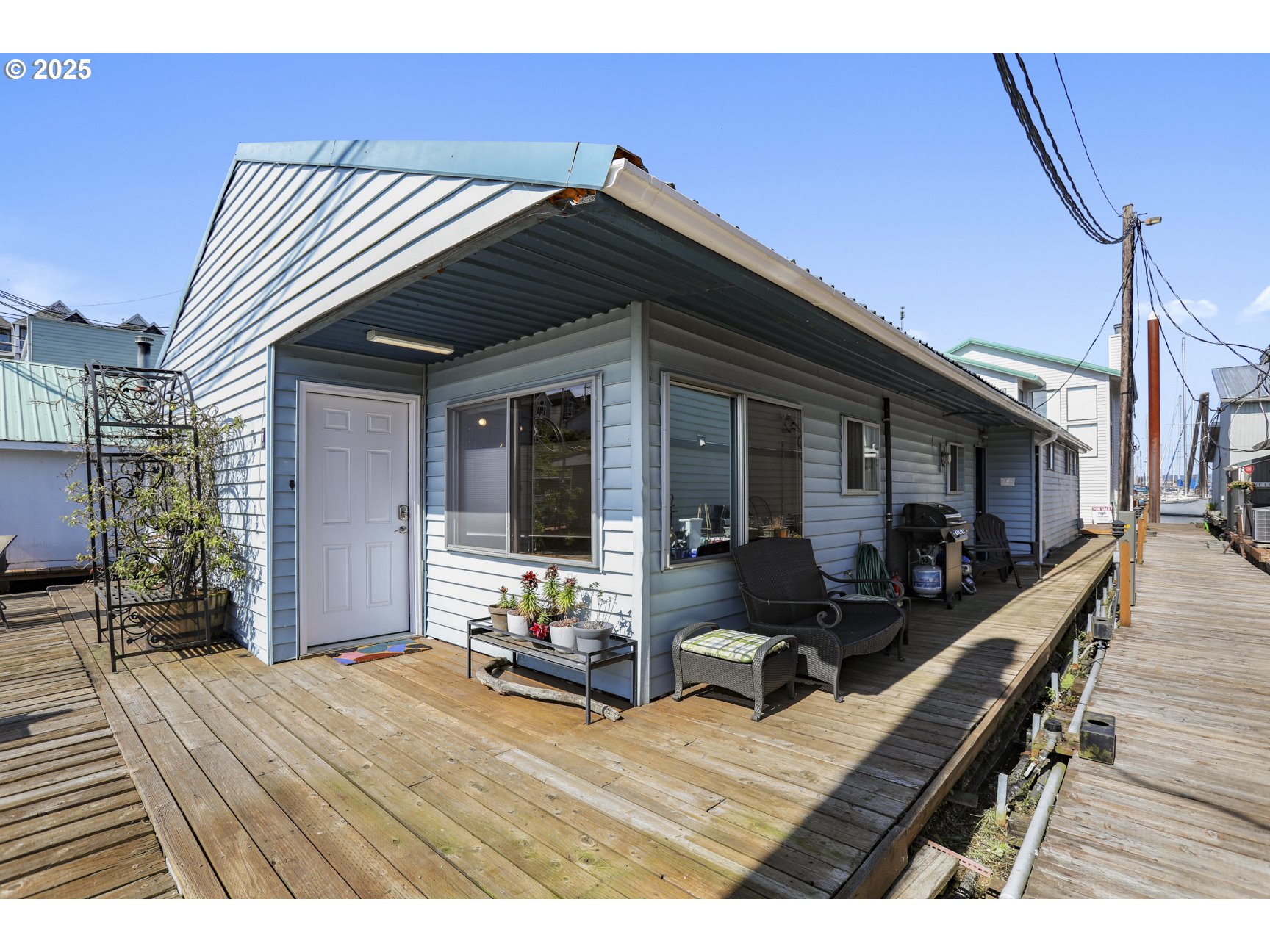 It is rare to find a floating home with this much space on one level! Keep it groovy or update it to your liking. Upon entering the house you are greeted with an enormous living room with a focus pulling fireplace! The wood work is the other star of the show here. The majority of the walls are clad in cedar with unique patterns throughout. This is a great layout for a room mate. There is a bedroom and full bathroom behind the living room. Around the kitchen corner you'll find the primary bedroom with ensuite bath along with a large flex room, great for an office or TV room. The primary bedroom set up can be accessed from the side door! The dining nook can accommodate a small table or use the existing fold up tables for workspace, dining space, or morning coffee while gazing out at the Columbia River and Sailboats. The amount of storage in this house is ridiculous. Coat closet, walk-in laundry, Side entry closet, the den has an enormous storage room, next to that there is a walk in pantry/closet with another closet behind that. In the primary there are two closets. That is just the inside of the house. The outside features an extremely large swim float for all your grillin’ needs. Vinyl siding and metal roof make for easy maintenance. This is a great price point to begin your life on the river.