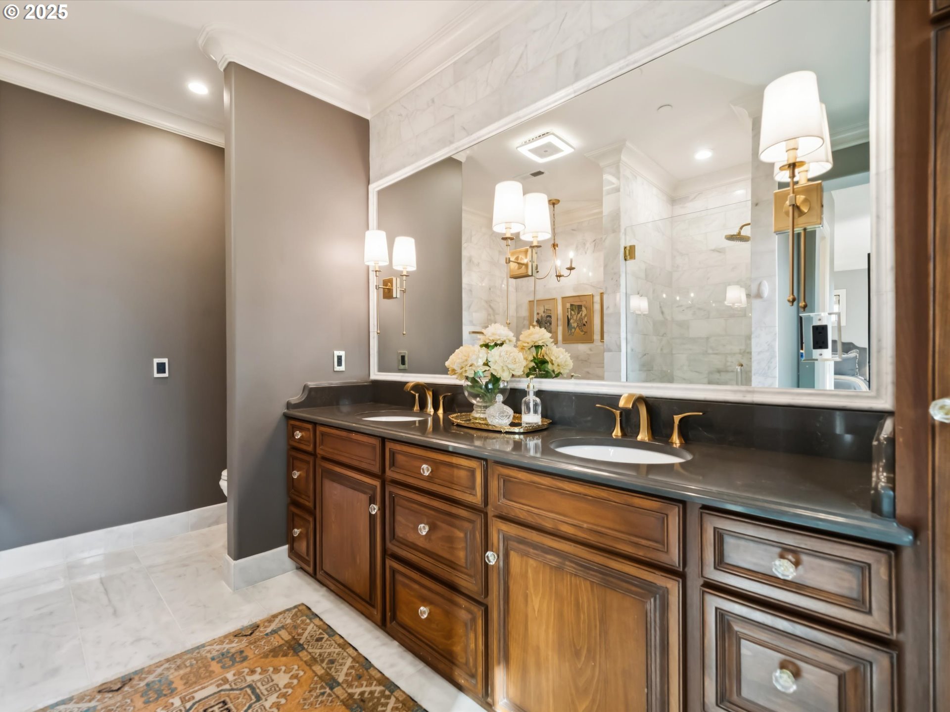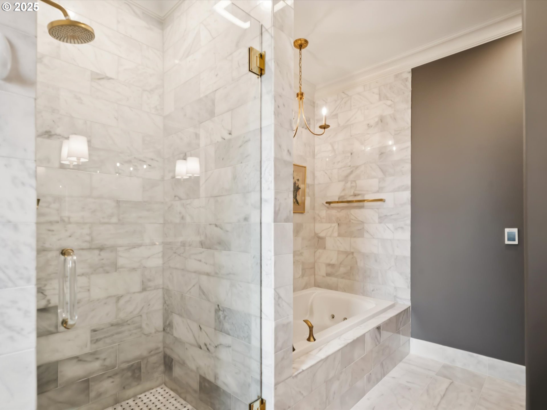 (503) 893-8874Must see rare remodeled Mediterranean luxury condominium located in the historic Lair Hill neighborhood. Experience exceptional craftsmanship, privacy, and beautiful city views in this stunning residence. This single level home features an open floor plan with vaulted 9 foot ceilings, heated travertine tile floors, custom wood cabinetry, soapstone marble, solid wood doors and windows. The gourmet kitchen is an entertainer’s dream, showcasing walnut cabinets with pullouts, a large island, a new Wolf five burner gas cooktop, Sub Zero built-in refrigerator, double oven with warming drawer, and a beverage fridge. The formal dining area opens through French doors to a north facing balcony with city views. The living room features a custom built solid travertine mantle with a gas fireplace and serene east facing tree views. The primary suite includes hardwood floors, double closets, a private balcony, and a custom built-in walk-in closet. The luxurious primary bath offers a marble tiled design with a double quartz vanity, a tiled walk-in shower, and a large jetted tub. The second suite also features hardwood floors, dual closets, a granite vanity, and a marble tiled walk-in shower. A dedicated office space includes built-ins, a soapstone desktop, and a beverage cooler—perfect for work or exercise. The Lair Hill House HOA is an exclusive community of just six units and two separate townhomes. Shared amenities include a guest house, gated entry with elevator, wine cellar with assigned lockers, pool table, gym, assigned storage unit, and a secured heated parking garage with two reserved spaces plus five guest spots. Additional features include a heated driveway, backup generator, and included water, sewer, and garbage. Located in the heart of Lair Hill, this exceptional home offers access to the Gibbs Street pedestrian bridge connecting you to the shops and restaurants of the South Waterfront District. You’re also just minutes from OHSU, downtown Portland, and major freeways