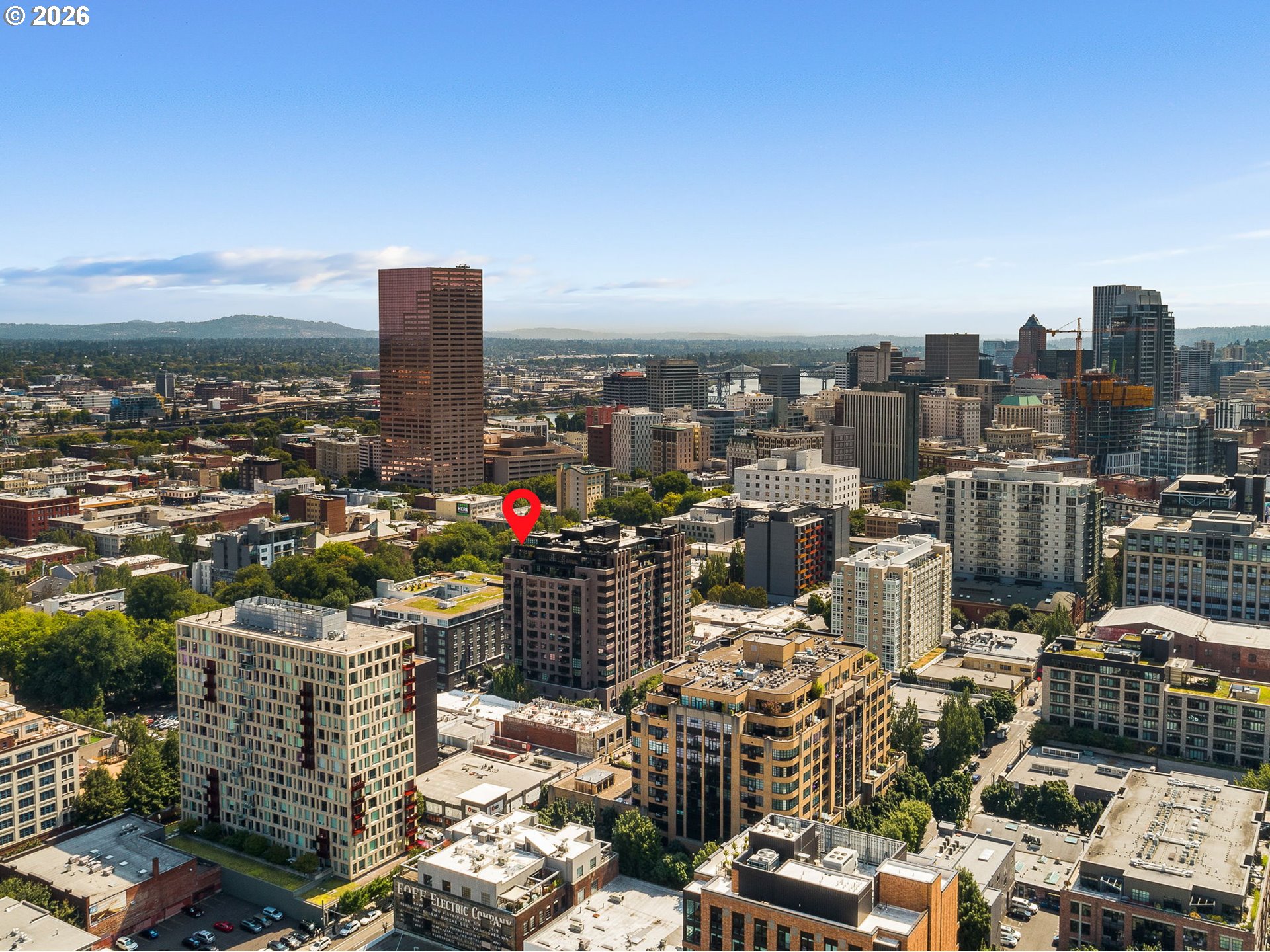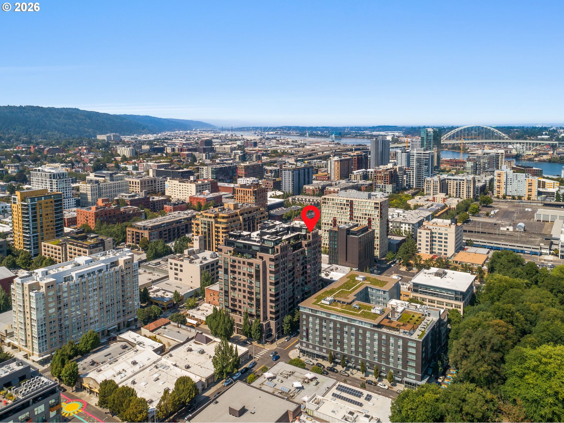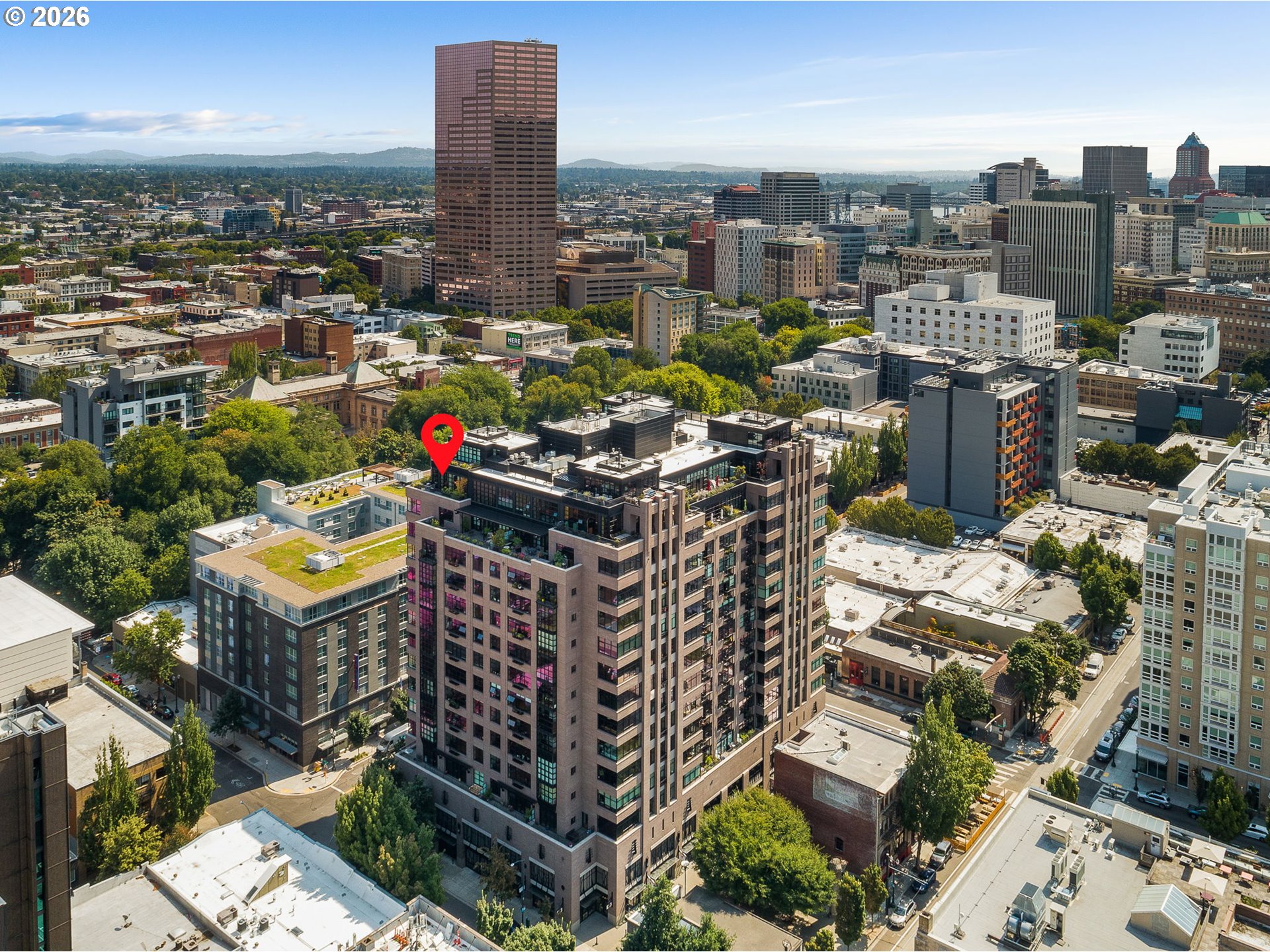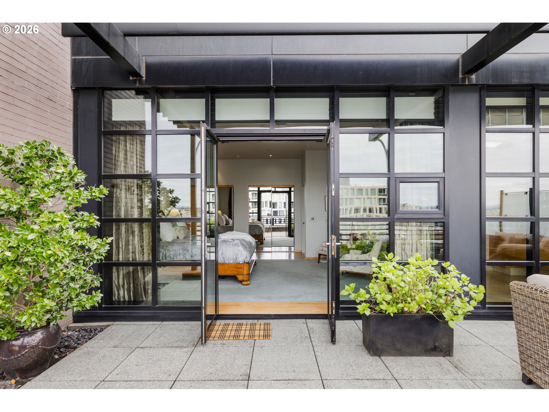 Embodying the very best of the “Pearl District lifestyle,” this high-end luxury penthouse in the coveted “Elizabeth Lofts” building checks every box. This sophisticated northeast corner unit offers 180-degree unobstructed views of three mountains, the Willamette River, and the West Hills. Floor-to-ceiling windows frame the ever-changing mood and hues of the city, while natural light abounds throughout. The sprawling 2,700-square-foot floor plan is designed for both grand-scale entertaining and intimate everyday living, with gleaming hardwood floors flowing seamlessly, complemented by soaring ceilings and designer lighting. Anchoring the main living areas, a double-sided gas fireplace serves as both a subtle architectural divider and a refined focal point. Lutron motorized shades and custom drapery are featured throughout. The gourmet kitchen showcases high-end finishes, a large island, and Sub-Zero appliances. The primary suite offers a serene sanctuary, complete with dual closets, a spa-caliber bathroom, and French doors opening to a 625-square-foot private outdoor terrace. The second bedroom was converted into a media room by a previous owner but can easily be restored to a second en-suite. Amenities include concierge service, a community room, and a large deeded storage closet adjacent to two deeded parking spaces. The Pearl District offers an exceptional lifestyle with boutique shopping, acclaimed restaurants, and vibrant cultural attractions.
