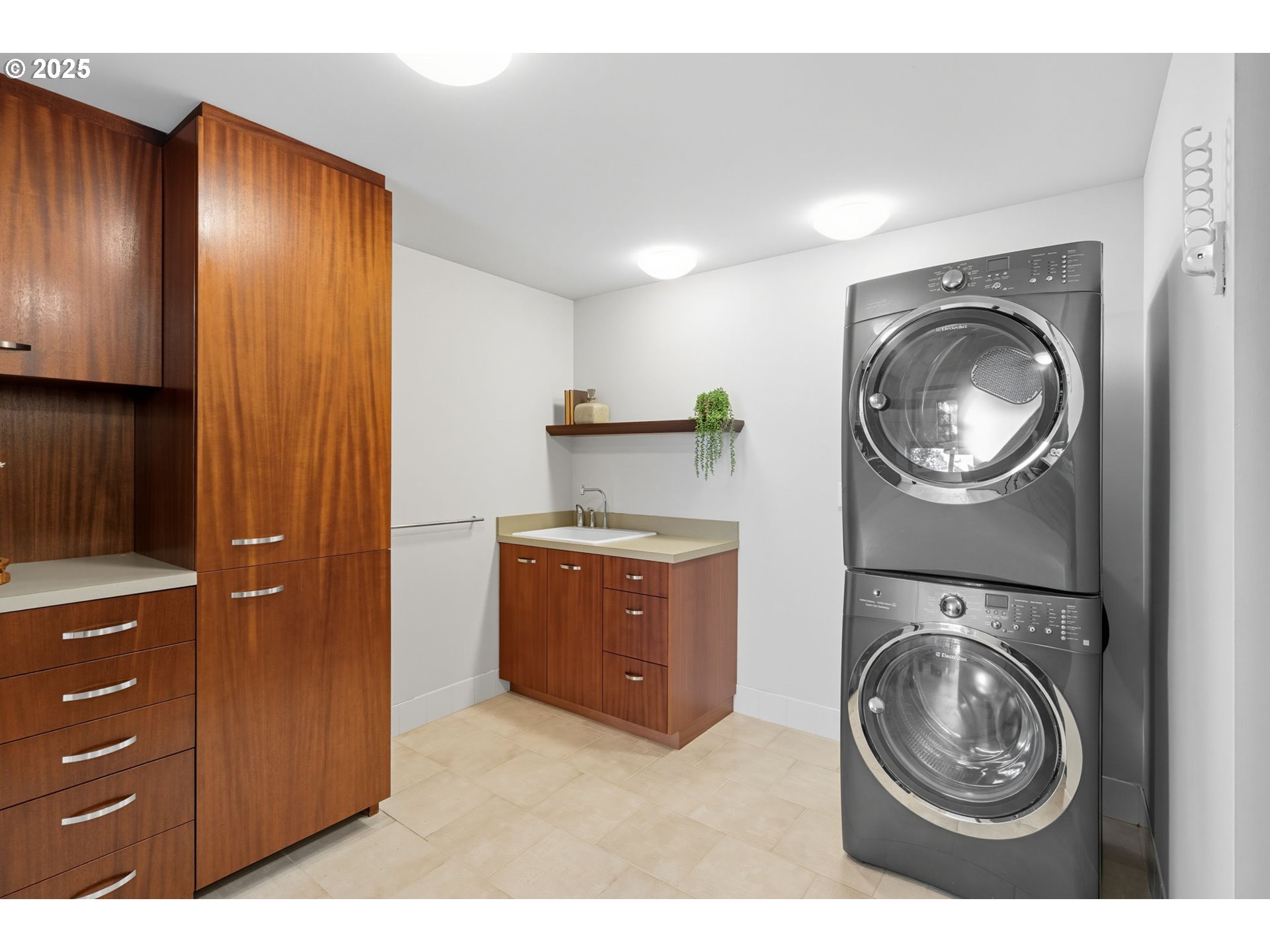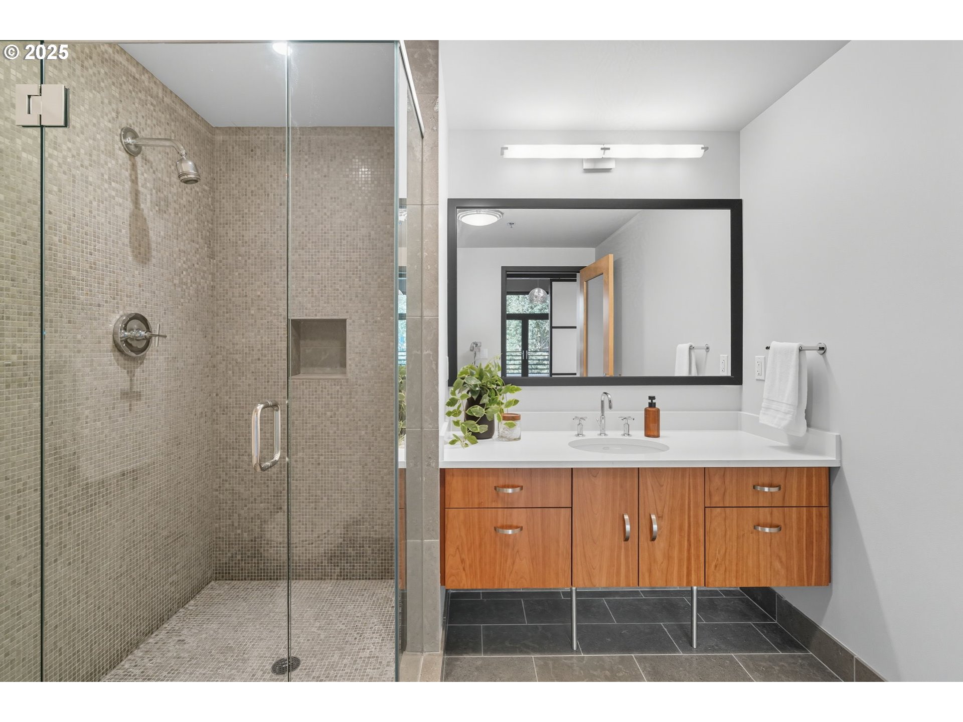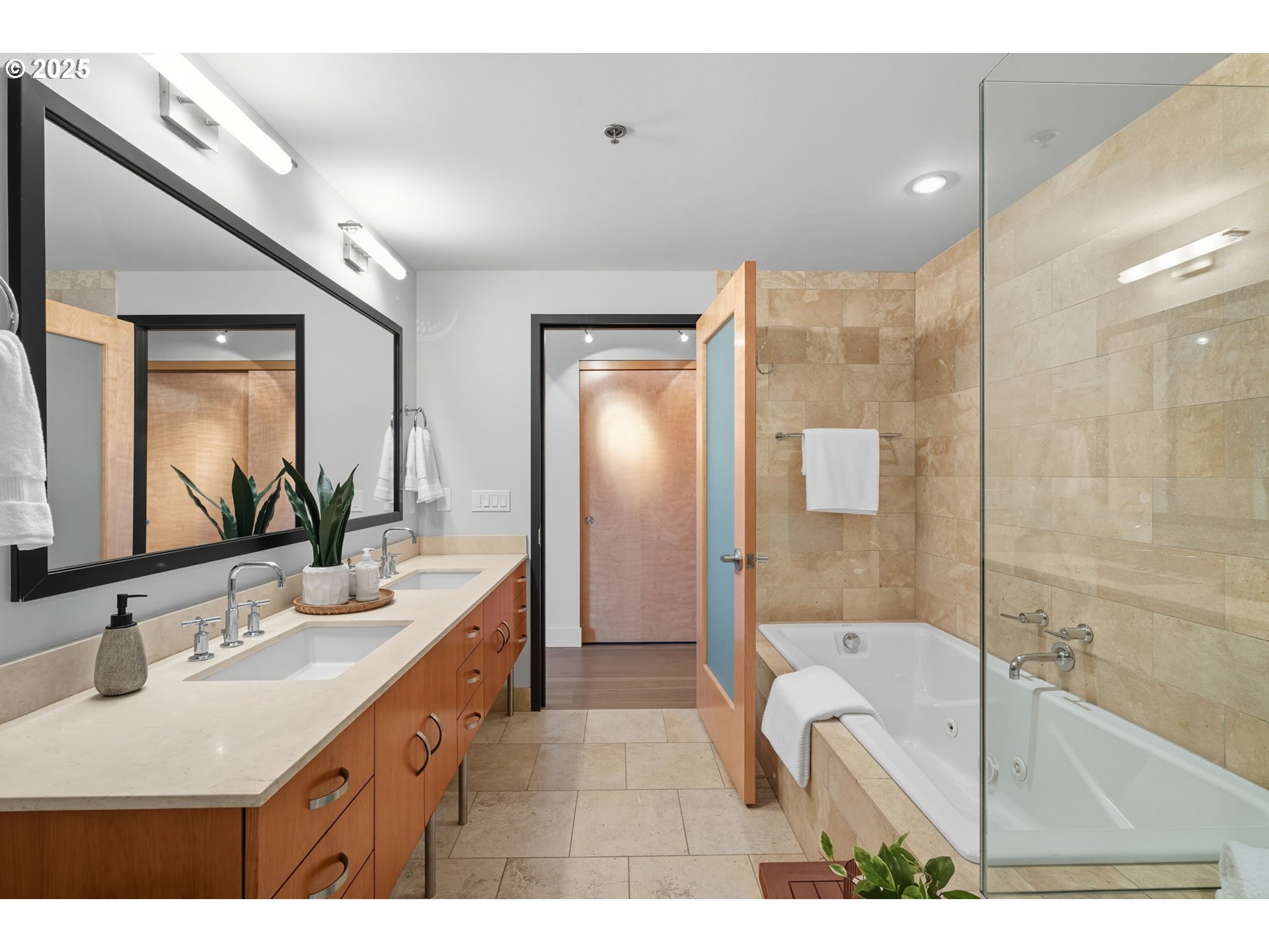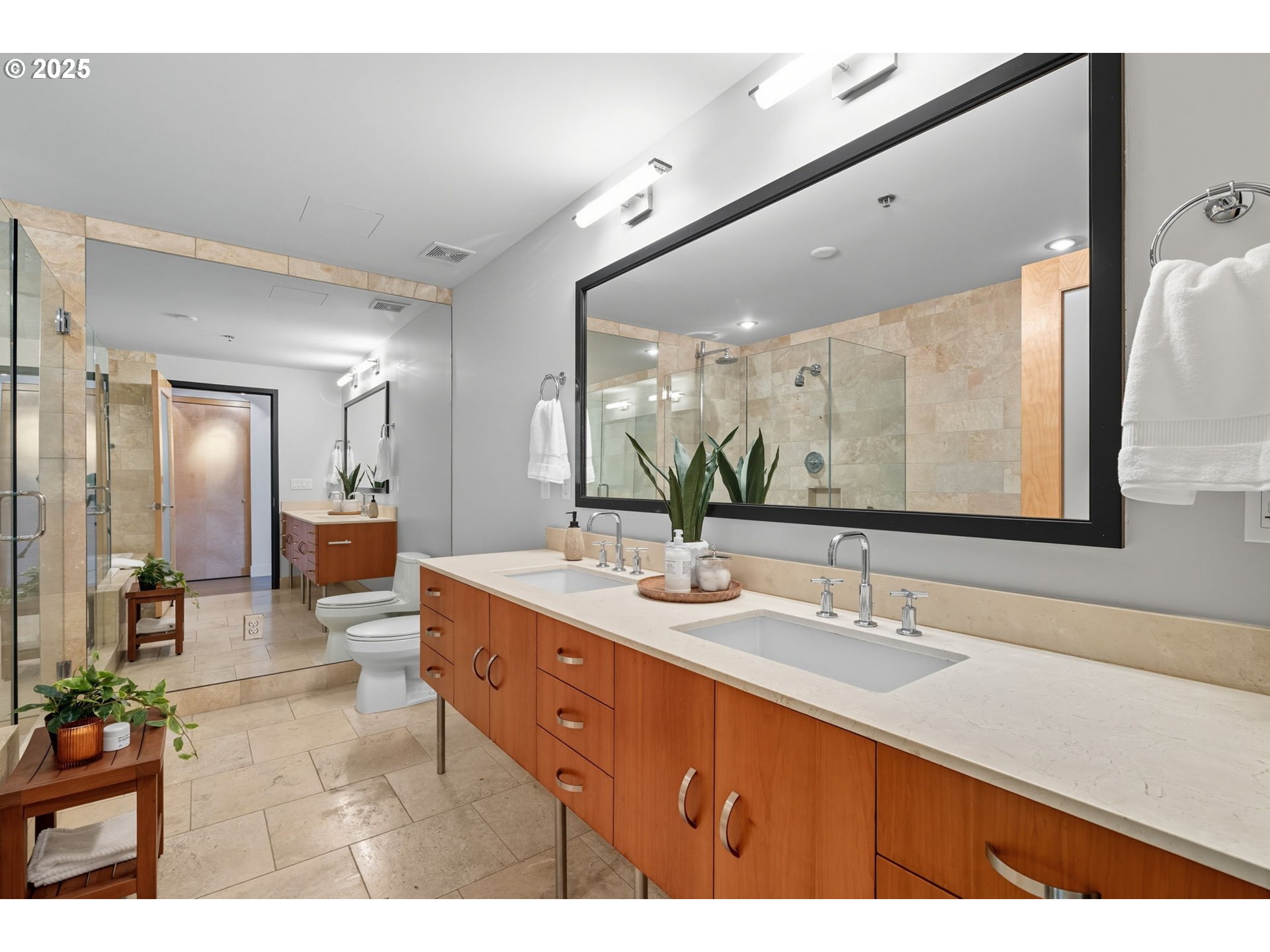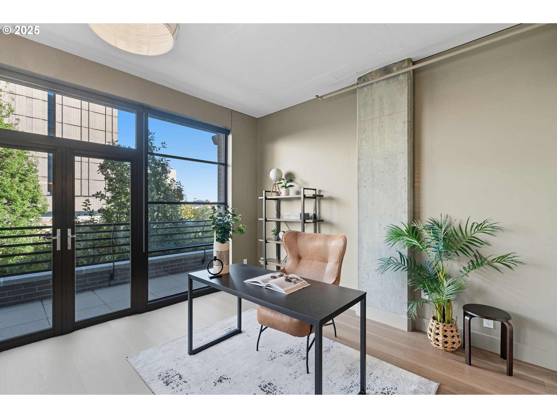 Sophisticated city living meets timeless design in this rare 2,400 sq. ft. corner residence at the iconic Elizabeth Lofts - one of the Pearl District’s most prestigious addresses. Recently remodeled, this expansive home artfully combines two units into one, showcasing floor-to-ceiling windows that flood the interior with natural light and frame sweeping city views.The open-concept living and dining areas offer seamless flow, ideal for both elevated entertaining and everyday comfort. The chef’s kitchen is a true statement of form and function, featuring a cabinet-front SubZero refrigerator, premium gas range, Quartz countertops, herringbone backsplash, updated cabinetry, new wide-plank hardwood floors, dual pantries, and a generous island that balances utility with sophistication. Designer lighting, concrete accents, and a gas fireplace add warmth and sophistication as well. Just beyond, a wraparound patio with drip irrigation extends the living space outdoors - perfect for morning coffee or evening gatherings against the city skyline.The refined primary suite offers a quiet escape, complete with a show-stopping designer closet, sitting area, and a spa-inspired bath, perfect for relaxation. Unmatched in both location and lifestyle, the residence includes concierge service, two deeded parking spaces, and secure storage. Situated just steps from the Portland Streetcar, the Hampton Inn & Suites (ideal for hosting guests), and surrounded by acclaimed breweries, cafés, boutique shopping, and galleries - this is Pearl District living at its most distinguished.