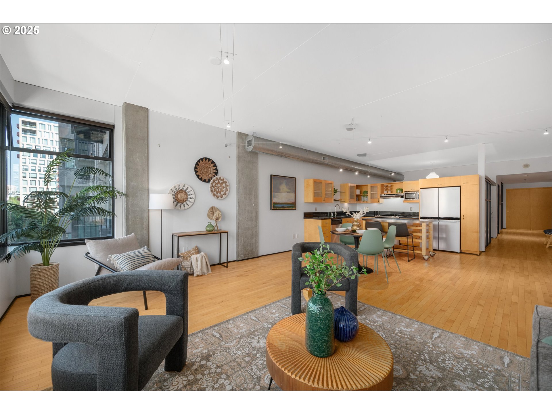 **Unsurpassable value and price** Elevate your lifestyle with this contemporary gem nestled in the heart of the Pearl District. Welcome to an elegant Elizabeth Lofts condo, spanning 1,176 SF and offering the opportunity to make it your own versatile urban haven. Enjoy expansive, 180 degrees of city and West Hills views and indulge in a seamless blend of luxury, entertainment, cultural richness and unparalleled convenience. Immerse yourself in the vibrant energy of the Pearl District, explore boutique shops and savor gourmet meals at nearby restaurants. This condo isn't just a residence, it's a canvas for your lifestyle. Key Features: * Spectacular City and West Hills Views: Embrace the cityscape from every angle, creating a breathtaking backdrop for your urban retreat.* Open-Concept Living: The spacious open floor plan with high ceilings, exposed concrete elements, large living and dining space sets the stage for modern living, with a versatile layout.* Gourmet Kitchen: The sleek kitchen with stainless steel appliances and kitchen island is perfect for culinary enthusiasts, creating a stylish space for cooking and entertaining.*2 Bedrooms: Take advantage of the unique and the only two bedroom layout in the building, providing flexibility to suit your evolving needs.* Bathroom with two sinks. Amenities:* Secure building and convenience of 24/7 concierge services, adding an extra layer of security and luxury to your daily life. * Community room with kitchen, library, bbq and bathroom opens up to a beautiful plaza with trees and historical columns. * Upgrades: New fridge, electric range, dishwasher, washer and dryer. Parking P-216.