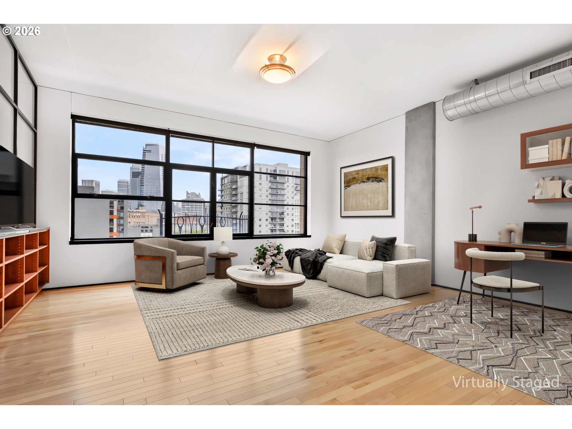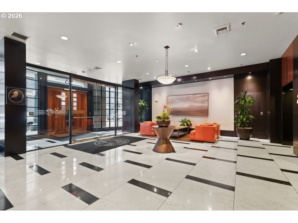Perched high above the Pearl District in the iconic Elizabeth, this rare 2,000+ sqft residence offers an exceptional blend of scale, light, and livability—something rarely found in Portland’s urban core.Walls of glass frame breathtaking south-facing city views, flooding the home with natural light throughout the day and creating a seamless connection between indoor living and the vibrant energy below. A Juliet balcony extends the experience, offering a front-row seat to the city skyline.The expansive floor plan features 2 bedrooms and 2 bathrooms, anchored by a massive primary suite that feels more like a private retreat than a typical condo bedroom—generous in size, separation, and comfort.Designed for both everyday living and entertaining, the open-concept layout delivers flexibility and flow, while large windows and thoughtful orientation elevate the overall sense of space and livability.Located in a LEED-certified building with concierge service, this home offers not just luxury—but efficiency and ease. Two deeded parking spaces add a level of convenience that is increasingly rare in the Pearl.Step outside and experience one of the most walkable locations in the country, with a Walk Score of 100 and Bike Score of 99, placing world-class dining, shopping, parks, and culture just moments from your front door .This is urban living at scale—refined, effortless, and deeply connected to the best of Portland.