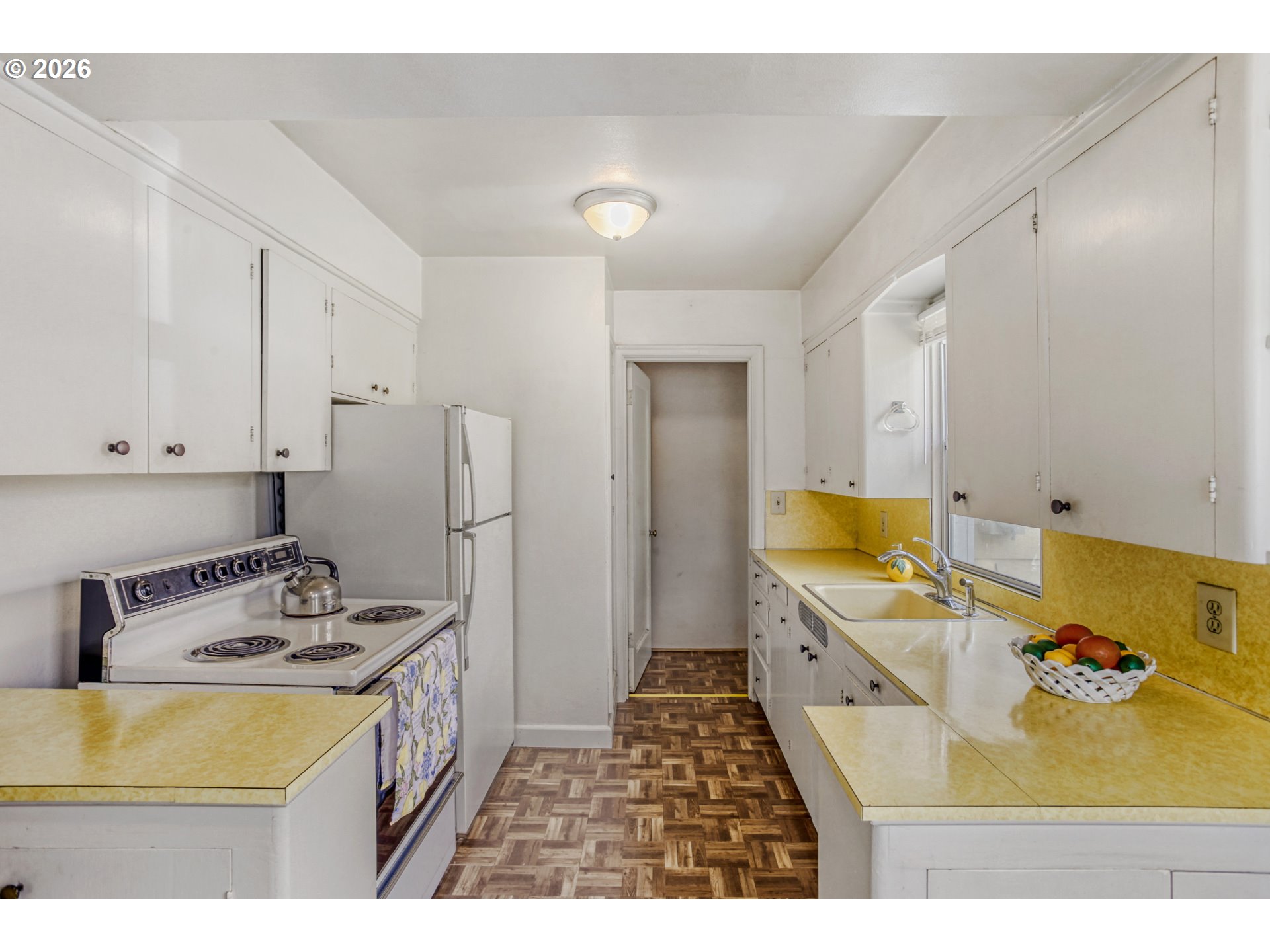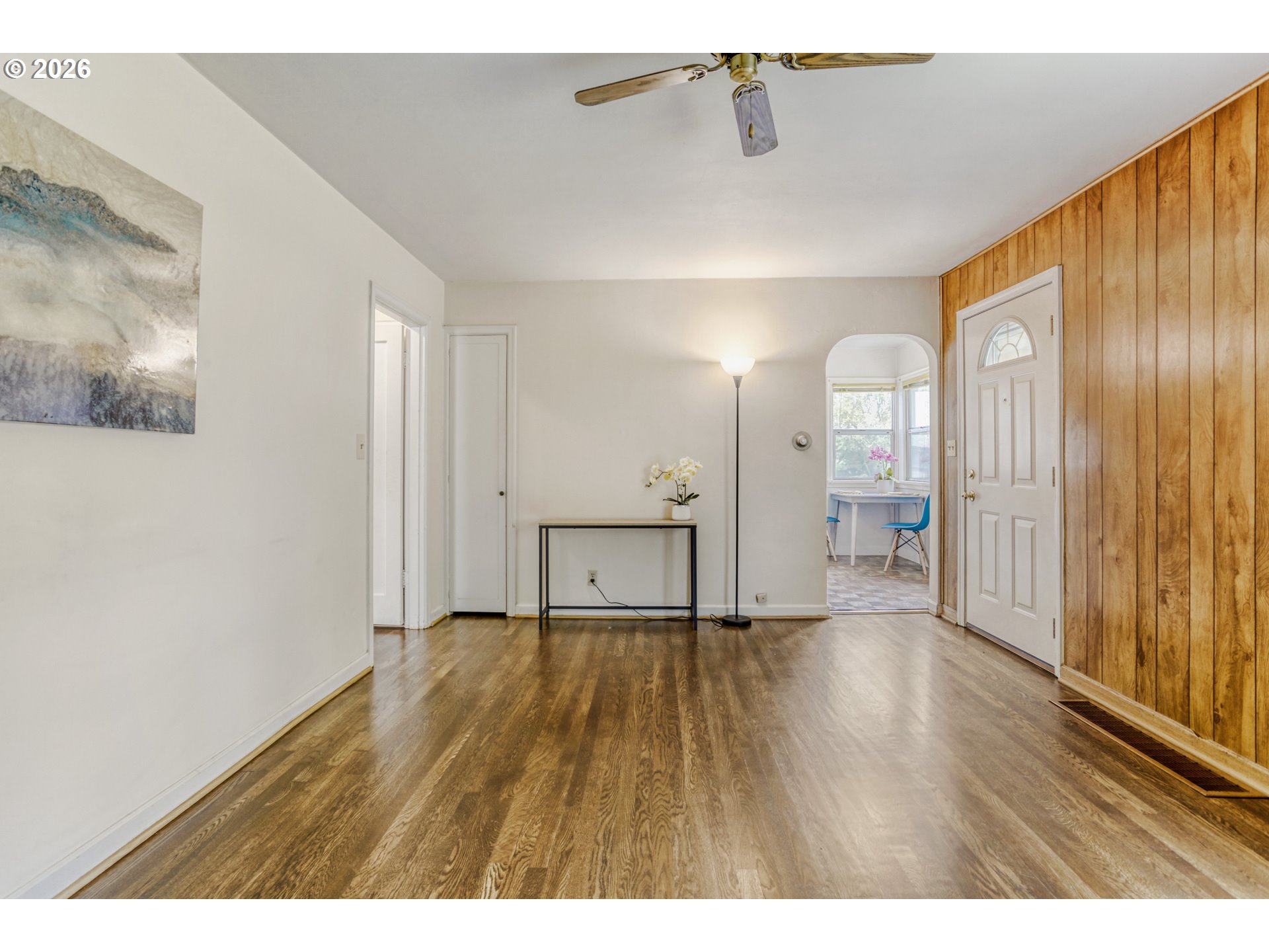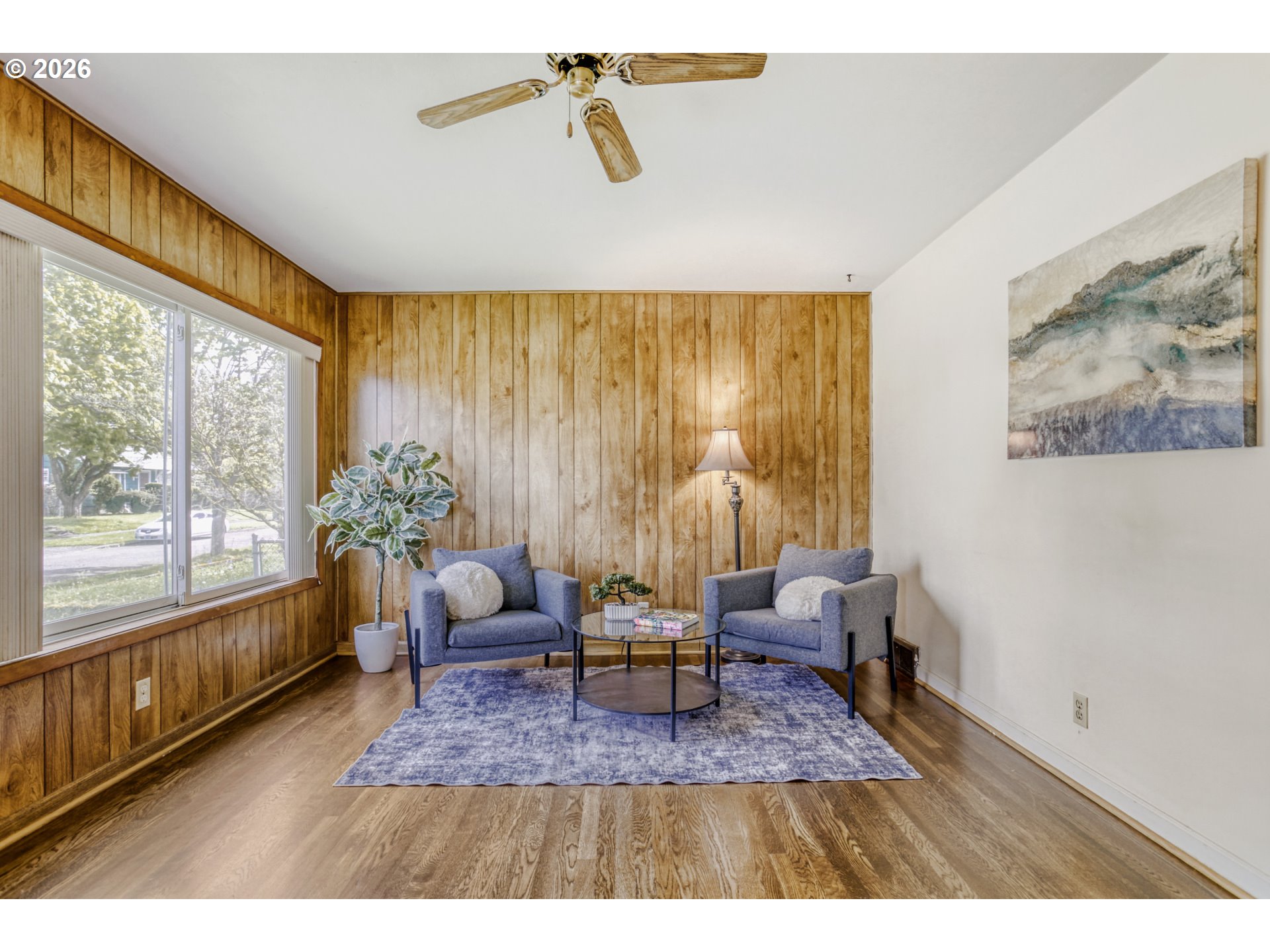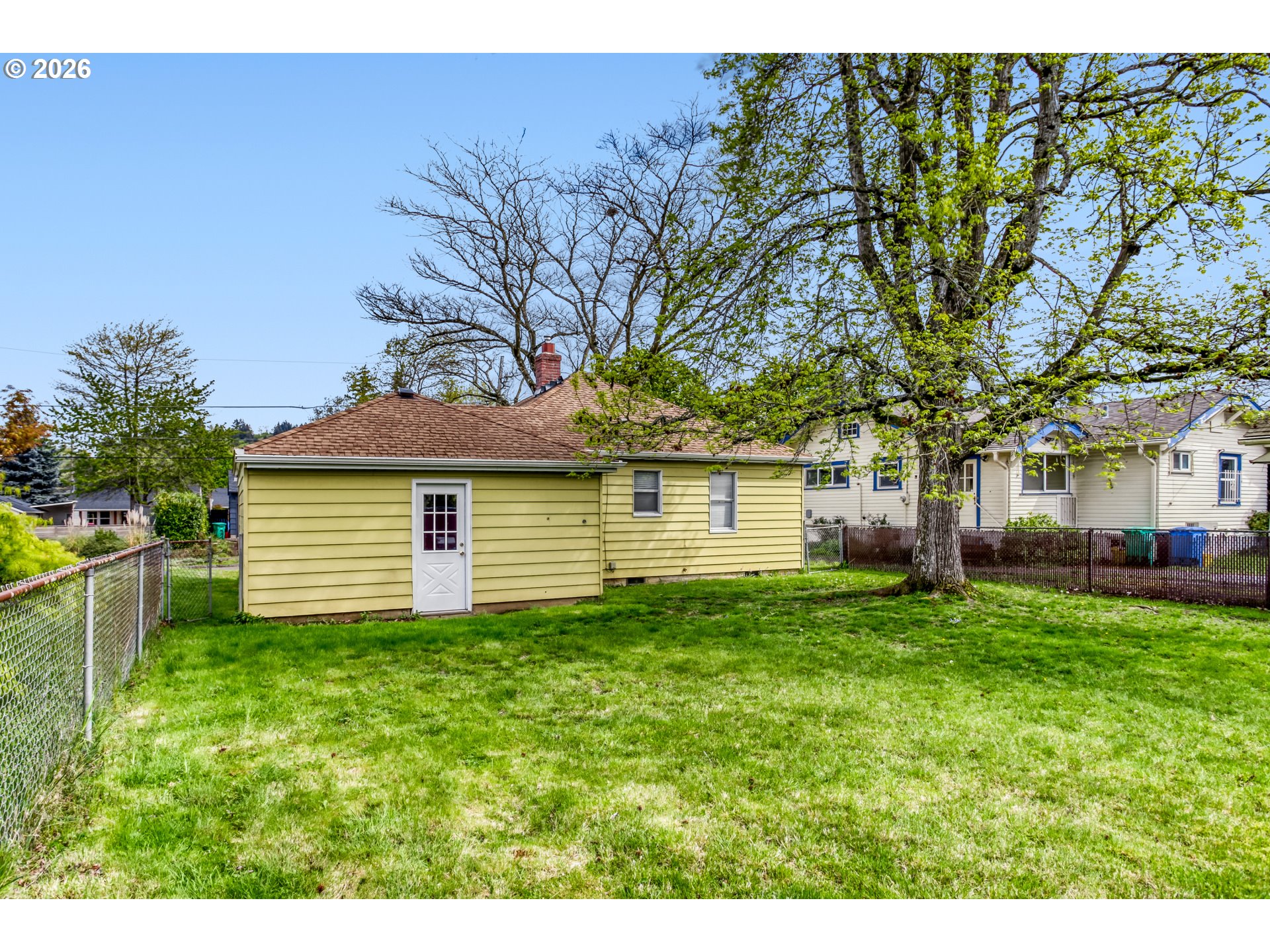 Charming 1948 bungalow offering timeless character with mature trees. This 2-bedroom, 1-bath home sits on a 0.11-acre lot and features refreshed hardwood floors and updated interior paint, creating a clean and inviting feel. Major system improvements provide added peace of mind, including a newer electrical panel, energy-efficient gas water heater, and a 50-year transferable roof warranty and Gutter Guards. The functional layout includes a bright, inviting kitchen with an eat-in area, perfect for everyday living. Both bedrooms overlook the fully fenced backyard, offering a pleasant and private outlook.Additional highlights include a one-car garage with abundant storage space and a fully fenced yard ideal for a variety of uses. Conveniently located with easy access to shopping, parks, and major commuter routes.A well-maintained home blending classic charm with practical updates—ready for its next owner.Listing agent has an equitable stake in the property.