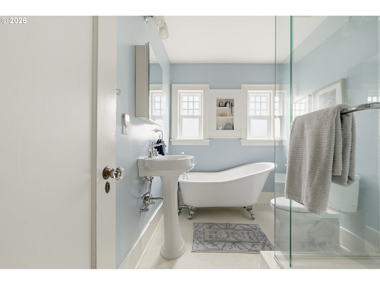 Welcome home to this charming Irvington bungalow that blends classic character with the modern updates we all secretly want. Hardwood floors, big bright windows, and those dreamy built-ins that frame a cozy gas fireplace are perfect for rainy Portland evenings and slow Sunday mornings.The kitchen is thoughtfully updated with tile floors, quartz countertops, a Viking gas range, Bosch dishwasher, and a Fisher & Paykel refrigerator—aka, ready for everything from weeknight pasta to full-on dinner parties.With two bedrooms on the main level and two more upstairs, the layout offers tons of flexibility: guest rooms, home office, workout space, or all of the above. The main floor bathroom is a true standout, featuring a generous walk-in shower and a high-back clawfoot tub—because sometimes you want quick and practical, and sometimes you want a long soak.Downstairs, the basement surprises with a fun bar and family room plus a convenient half bath—movie nights and game days just found their new home.Step outside to a beautifully hardscaped backyard with a pergola, raised garden beds, and plenty of room for grilling, gardening, and lingering summer evenings.And when you do feel like venturing out? Irving Park is just a stroll away, along with neighborhood coffee, shops, and restaurants that make Irvington such a special place to call home. [Home Energy Score = 6. HES Report at https://rpt.greenbuildingregistry.com/hes/OR10219216]