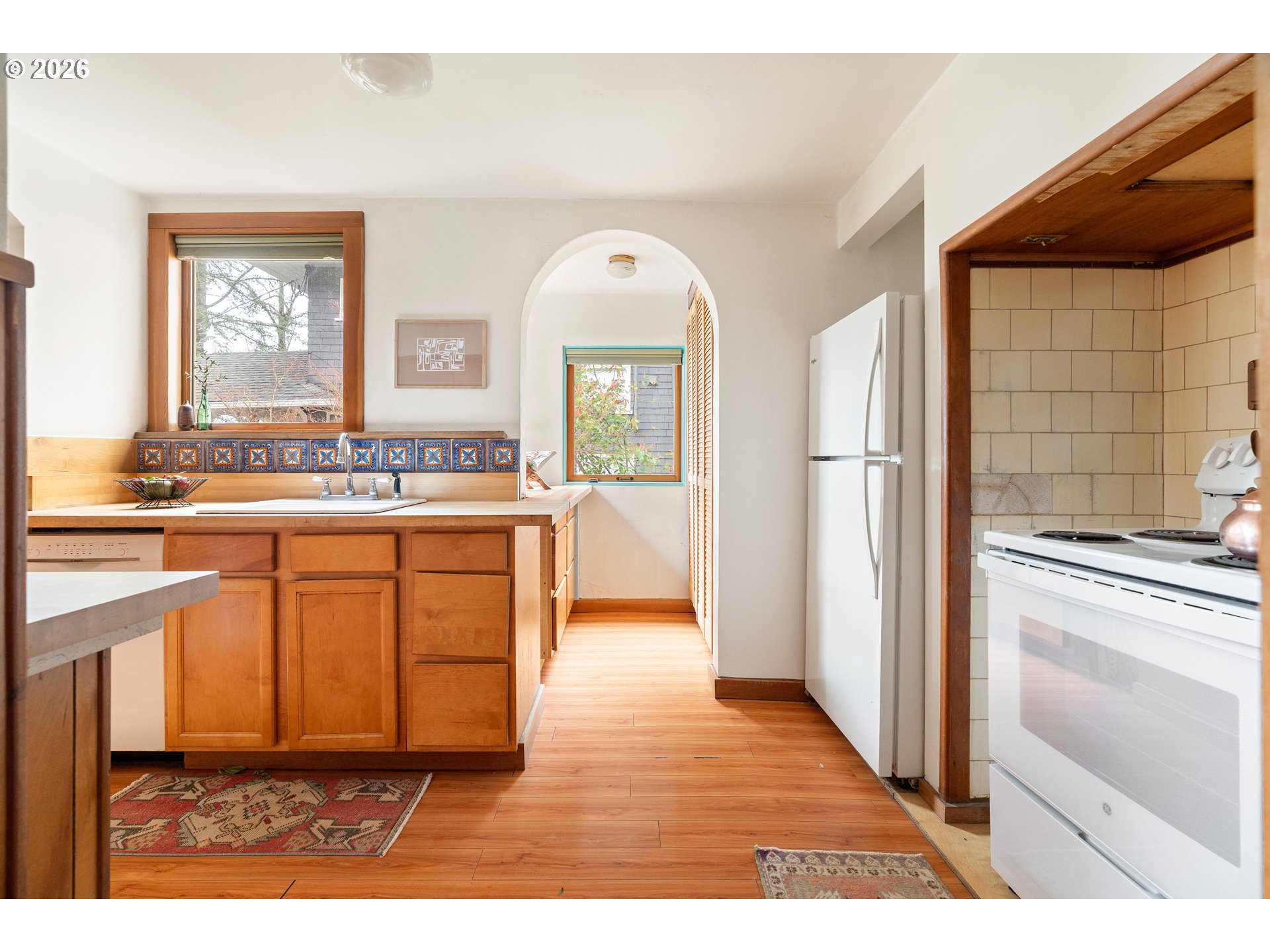 Timeless character meets thoughtful updates in this charming Spanish Colonial Revival nestled in the coveted Willamette Heights neighborhood. Rich hardwood floors, graceful arched openings, and cedar-lined closets reflect the home’s historic elegance, while a cozy fireplace with a newer insert (less than five years old) anchors the inviting living space. Distinctive wrought iron details are said to have been hand-forged by Orion “O.B.” Dawson, the renowned blacksmith who contributed to the iconic Timberline Lodge—adding a rare piece of regional craftsmanship and history to the home. The kitchen offers warmth and functionality with butcher block counters, a pantry, and a charming eat-in nook. A light-filled sunroom with French doors opens to decks in both the front and back, perfect for relaxing or entertaining while enjoying sweeping views of Mount St. Helens and Mount Rainier. Designed with efficiency in mind, the home features high-performance insulated casement windows, insulated exterior walls, and a solid double-concrete wall construction system for comfort and durability. Major systems have been updated, including a newer furnace (approximately five years old) and a classic clay tile roof redone about ten years ago. Additional highlights include a detached garage and close proximity to the miles of trails in Forest Park, along with the shops, cafés, and vibrant lifestyle of NW 23rd Avenue. A rare opportunity to own a character-rich home combining historic craftsmanship, modern efficiency, and one of Portland’s most desirable locations. [Home Energy Score = 4. HES Report at https://rpt.greenbuildingregistry.com/hes/OR10239866]