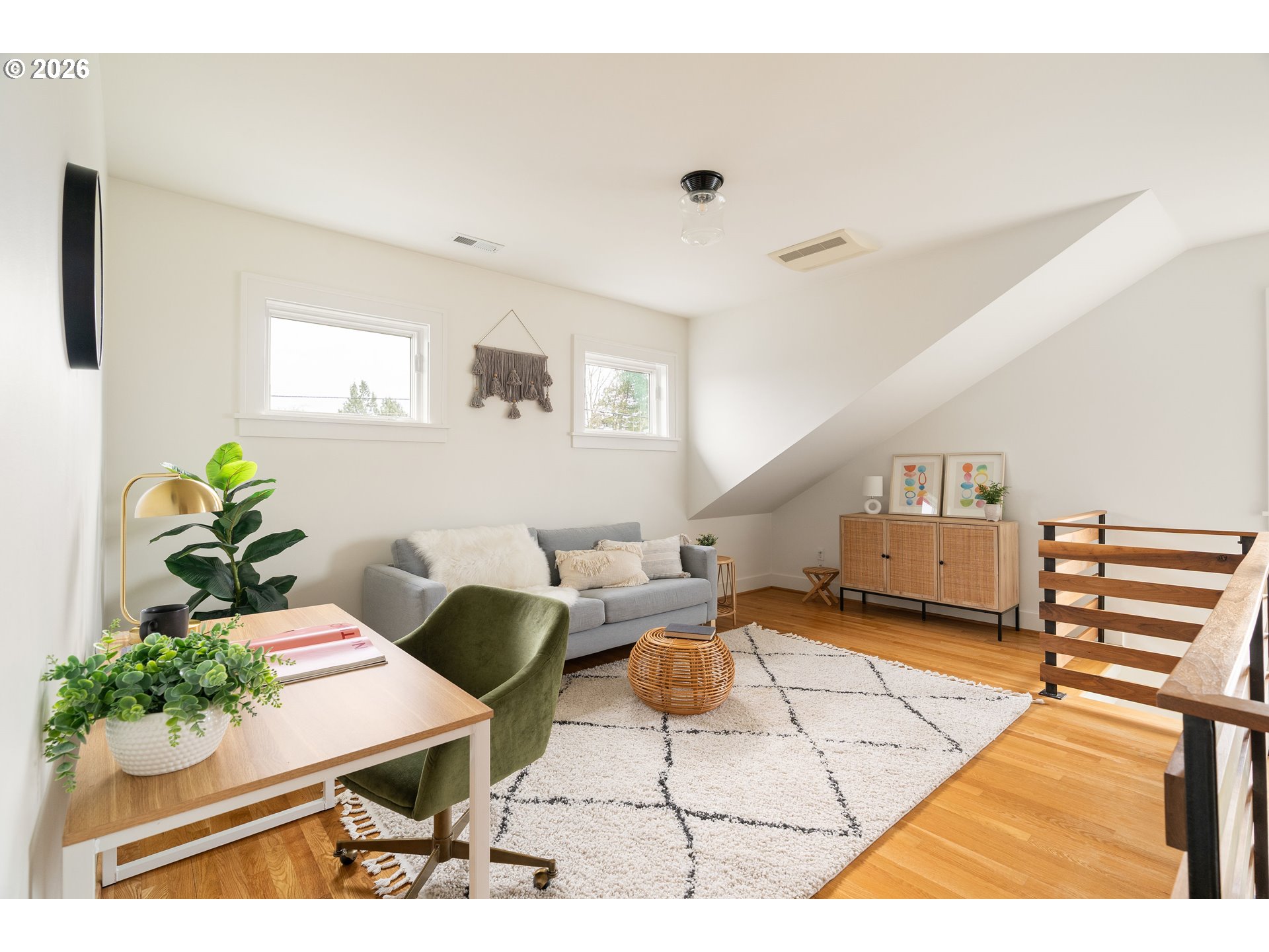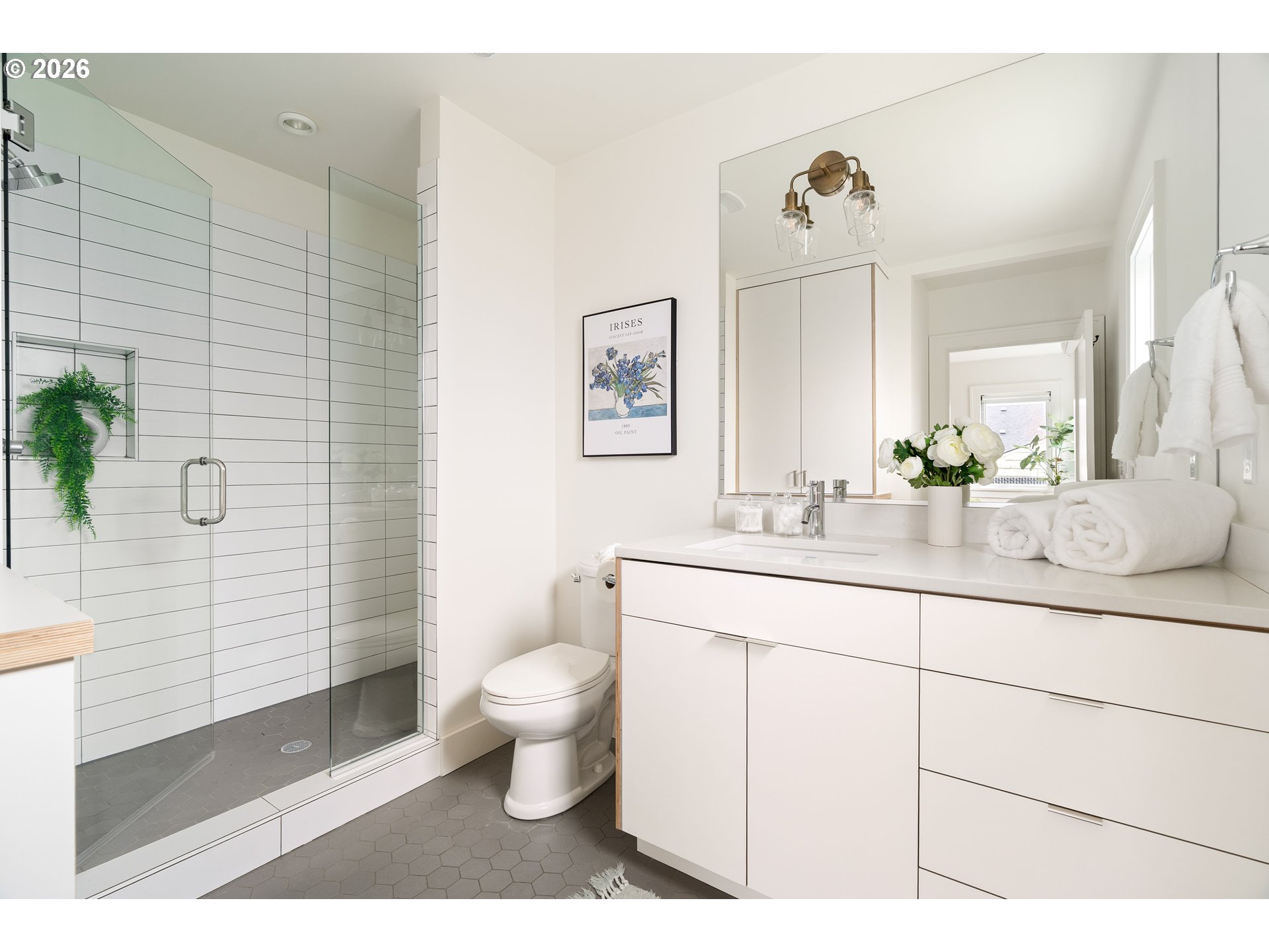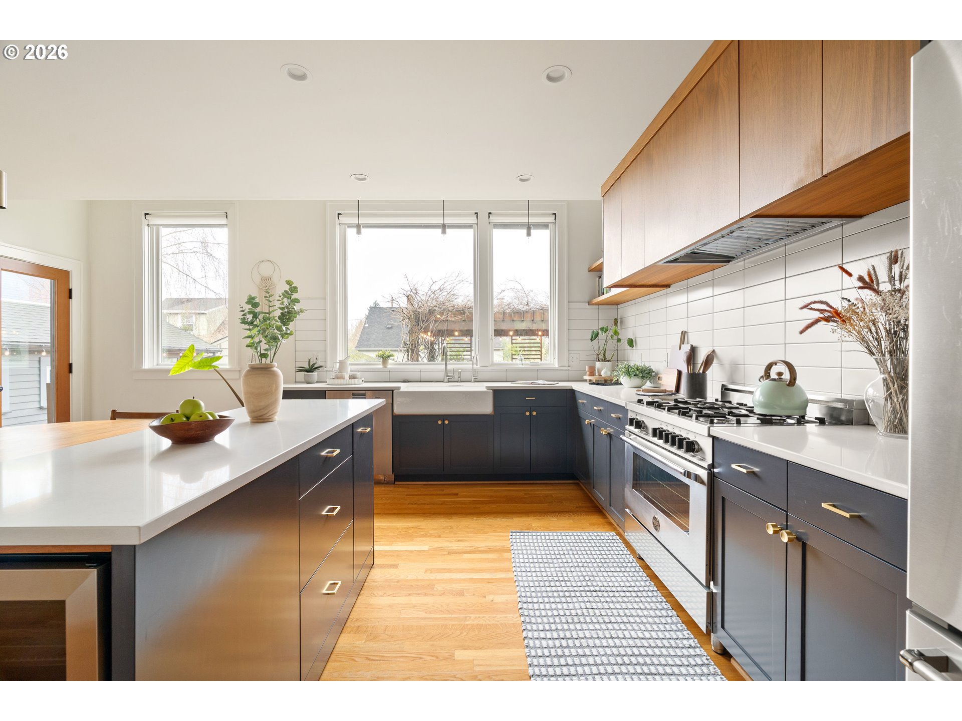 (503) 893-8874Thoughtfully designed and beautifully executed, this exceptional Beaumont bungalow stands apart. Reimagined from the ground up in 2015, the home blends Scandinavian-inspired simplicity with smart, highly livable design across three levels plus a detached studio. The flexible floor plan offers four bedrooms and three and a half baths, including a rare main-level en suite ideal for guests or multi-generational living. Upstairs, three additional bedrooms are anchored by a showstopper primary suite featuring a serene Japanese-style soaking tub and spa-like finishes. Expansive windows fill nearly every room with natural light, highlighting custom walnut built-ins, striking slab cabinetry, and thoughtfully integrated storage throughout. The kitchen is a true centerpiece—recently enhanced with a newly built island and custom eating nook—designed for both everyday living and effortless entertaining. High-end appliances, a walk-in pantry, and iconic Schoolhouse lighting complete the space. Additional living areas include an open second-floor loft perfect for reading or play, a spacious lower-level family room, and abundant storage on every level, including the basement and outbuilding. The fully finished detached studio features cork floors, built-ins, and mini-split heating and cooling, offering flexible options for work, guests, or creative use. Outdoor living is equally refined, with IPE decking on the covered front and back porches, two private patios, and a custom pergola draped in established wisteria. Located within the coveted Alameda and Grant school districts, the home is just blocks from Beaumont Village and Fremont Street, with cafés, popular restaurants, and boutique shopping close at hand. Blending architectural beauty, modern efficiency, and exceptional functionality, this rare modern bungalow delivers thoughtful design at every turn. [Home Energy Score = 8. HES Report at https://rpt.greenbuildingregistry.com/hes/OR10218603]