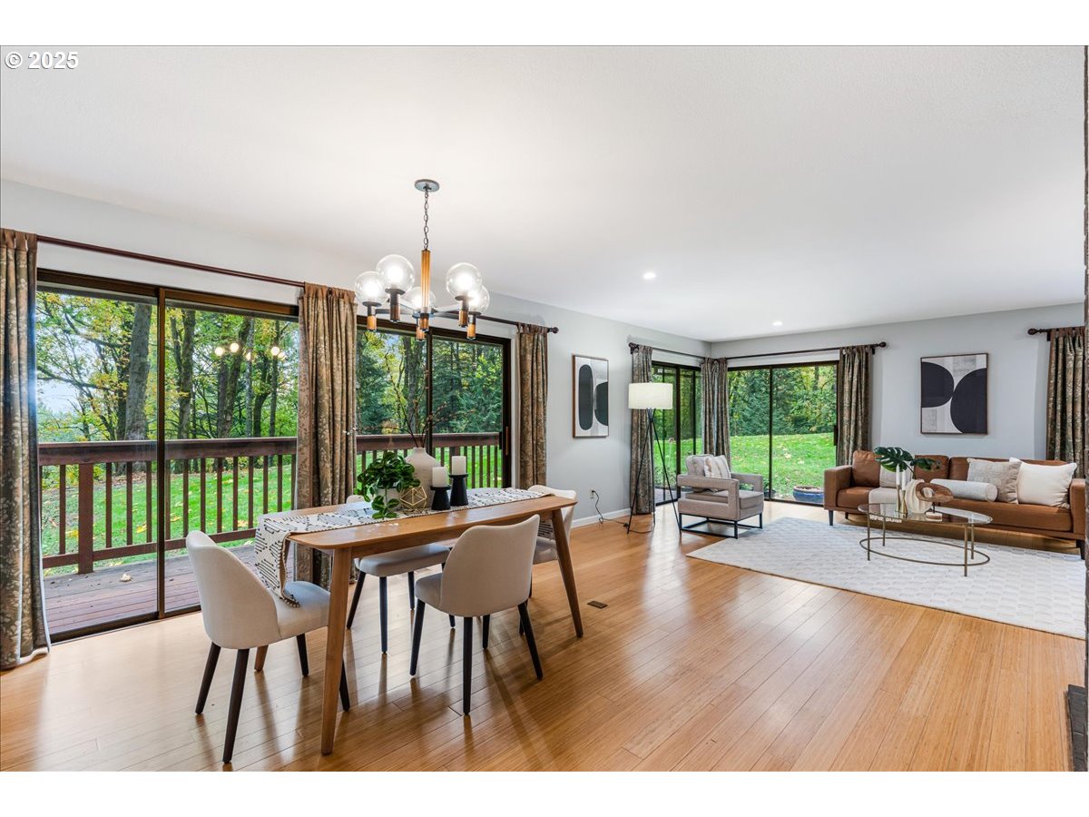 (503) 893-8874Incredible over 3 acre property abutting Forest Park! 5 sliding glass doors from living room to gorgeous, private oasis! Wrap around deck! Mid-century charm in brick fireplace. Bamboo hardwoods. Main floor Primary Suite with double closets and private deck access. Lower level perfect for separate living area with secondary primary and beautifully remodeled bathroom with tiled walk in shower, new vanite, tiled floor. Kitchen with gorgeous built-ins, corian counters, and nook. Great storage! Over 3 acres of beauty surrounding you with walking trails and also just minutes to downtown shopping and restaurants!