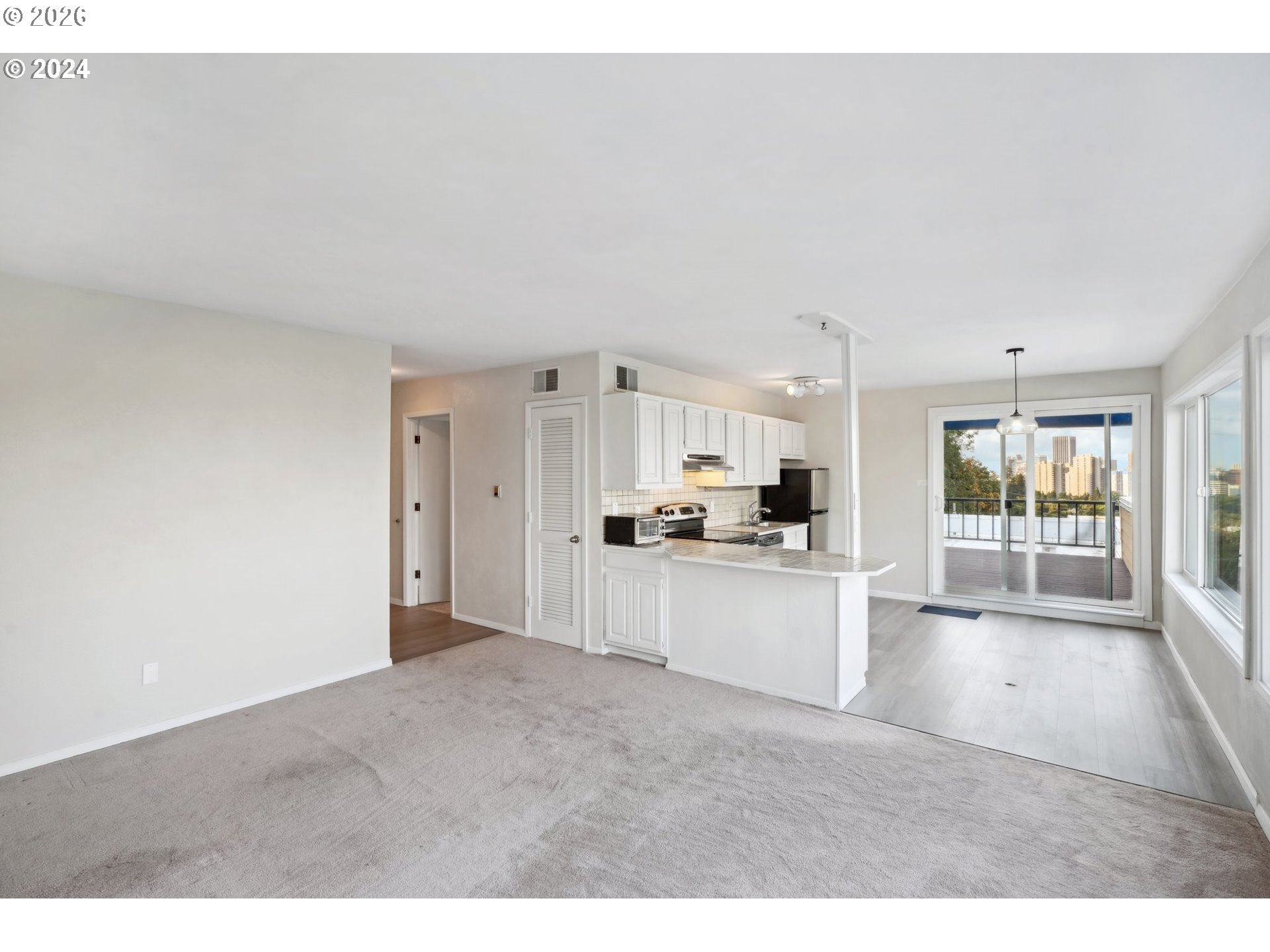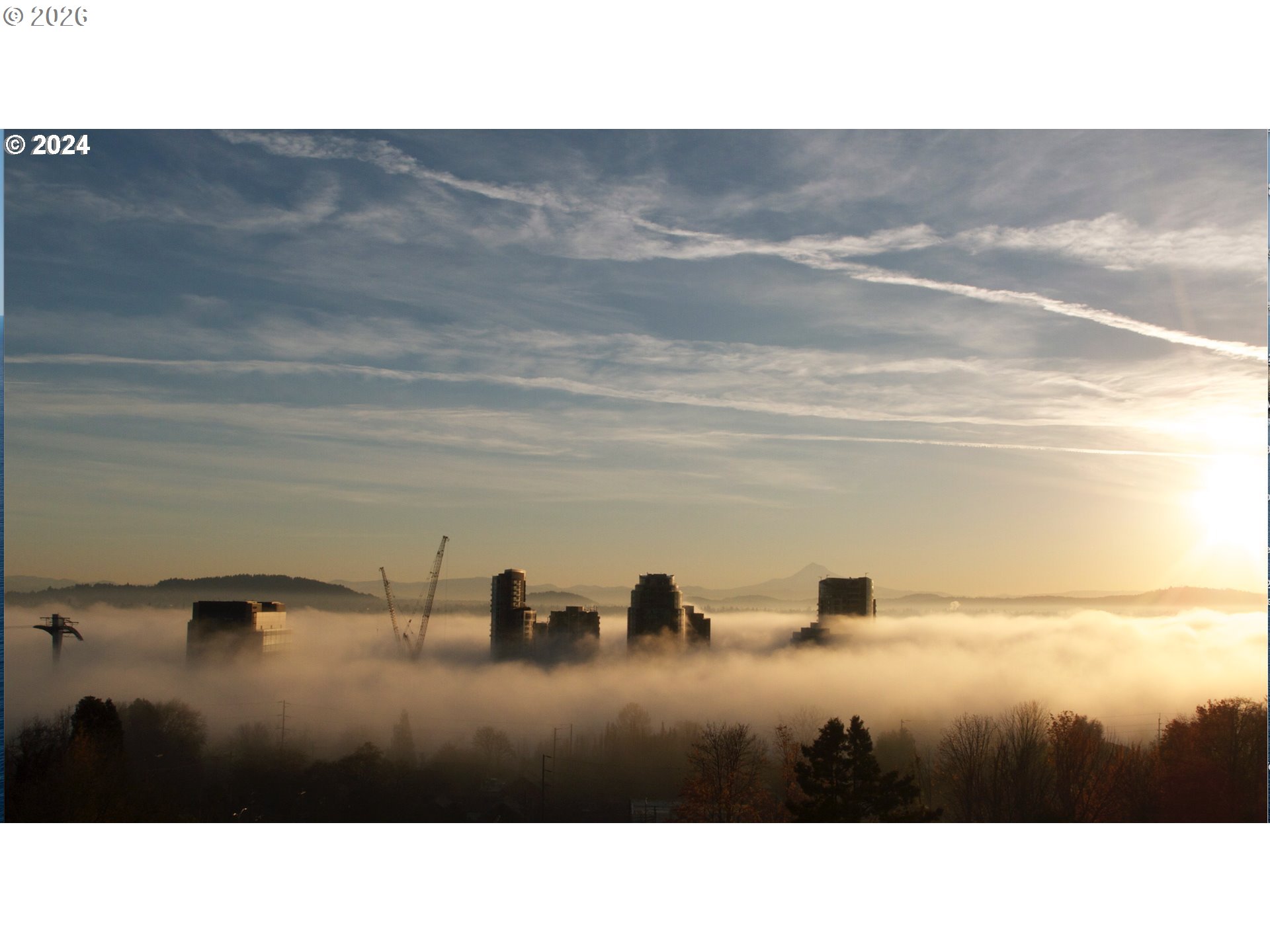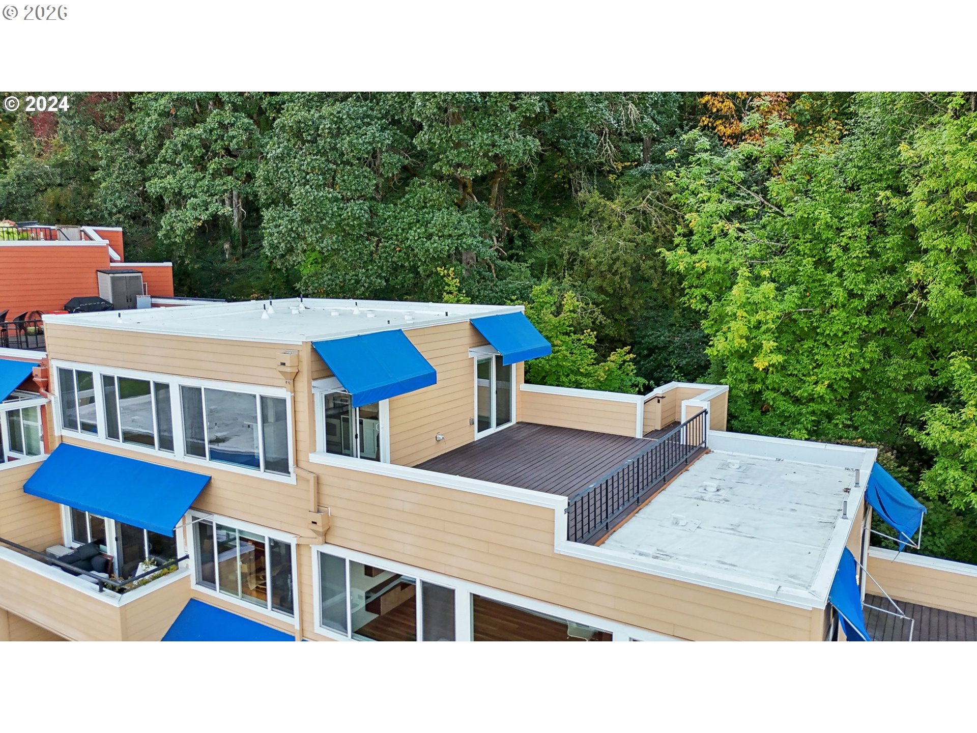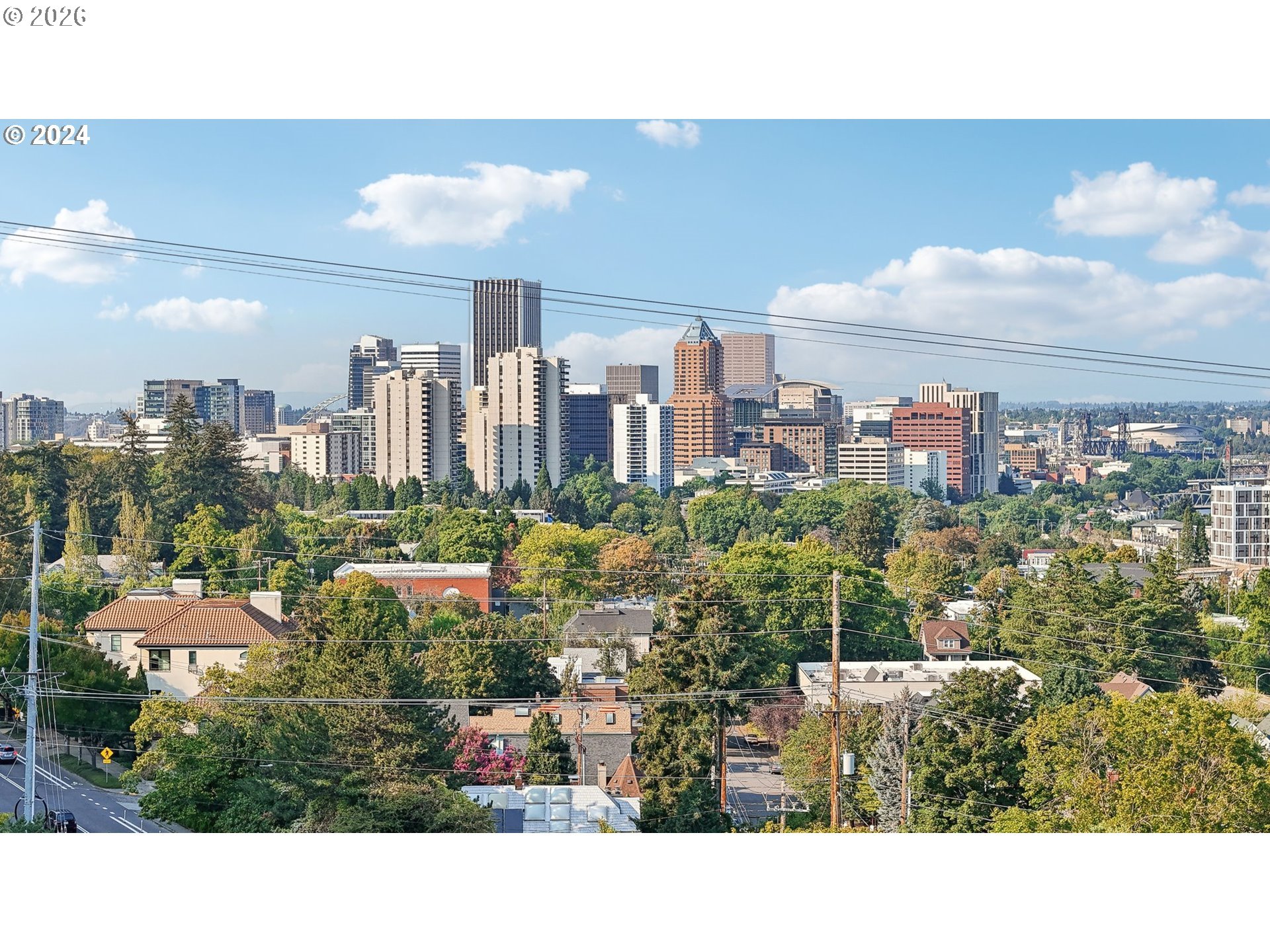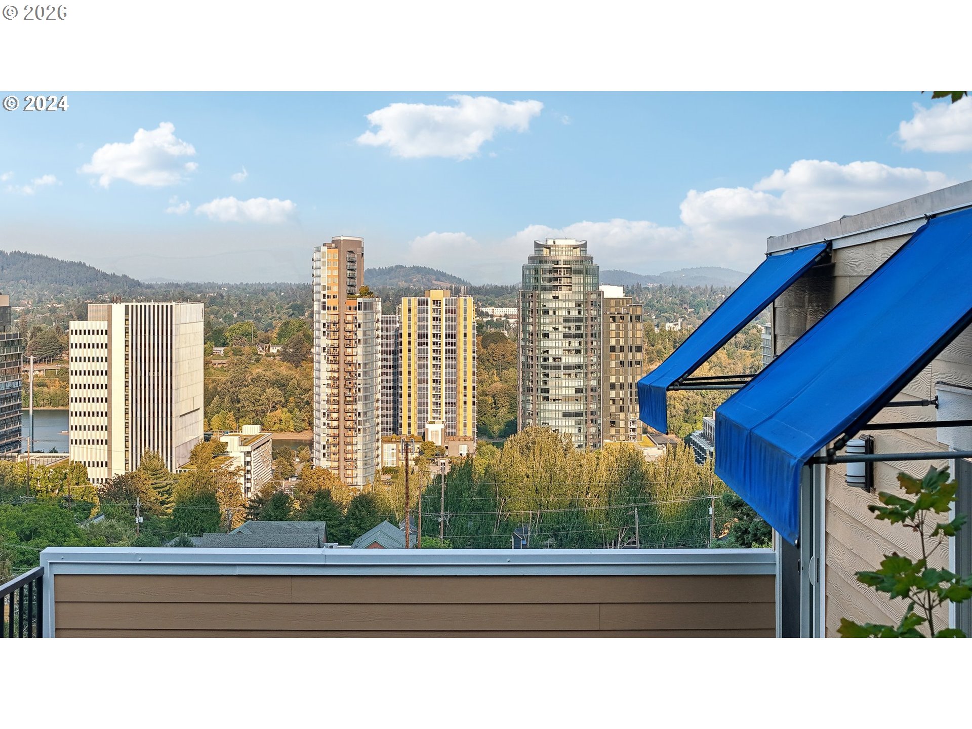 Perfectly anchored at the base of OHSU and Terwilliger Park this rare and totally private penthouse has Stunning 270º Mt Hood, Cascade Range, River and Multi-City skyline views! The Brand New 600sf Entertainment Deck has Unobstructed dynamic sunsets, moonrises + All-Horizon weather effects far as the eye can see. Fully renovated interiors include New luxury vinyl plank floors, Modernized walls and ceilings with Fresh paintwork throughout. The 12 Expansive windows open to the breath-taking views. While 2 sets of Double sliding doors connect the extensive new deck to bedroom + kitchen providing an Additional Scenic Entry to the unit. Recent Special Assessment includes $70k of upgrades: Fully warrantied exterior elements including Roof and Durable Seamless Trex Deck, Exterior Siding/Awnings and Earthquake Reinforcement. Additional Pluses are the In-Unit Washer/Dryer, Shaded Corner Parking, and Extra External storage unit. Low HOA, Pet friendly policies, and No Rental Cap a boon for investment ownership! Be the First to enjoy owning and living in this Unmissable Fully Renovated Habitation!