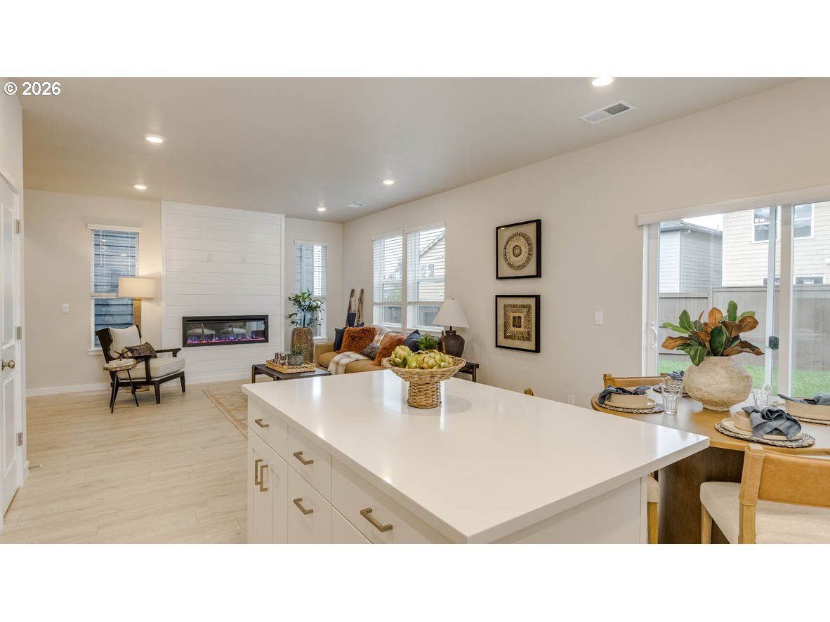 Welcome to the fabulous 2,042 square feet Rockwood floor plan at Butler Creek Crossing in Gresham featuring 5 bedrooms, 3 bathrooms, and an attached 2-car garage. This two-story layout includes a full bedroom and bathroom on the main floor, ideal for a guest room or home office with added privacy. The open concept design flows through the living room, dining area, and kitchen, where you’ll find stylish shaker cabinetry, solid surface countertops, stainless steel appliances, a large kitchen island, pantry, and a free-standing range oven. Cozy up by the fireplace for the perfect movie night setting. Upstairs, four additional bedrooms provide space for everyone, while the convenient upper-level laundry room makes daily routines easier. The primary bedroom is a relaxing retreat with an en suite bathroom, double vanity, walk-in shower, and a walk-in closet. The upstairs hall bathroom is centrally located for easy access. Located between Happy Valley and Gresham, Butler Creek Crossing offers the best of both towns. Receive a closing cost credit with use of builder’s preferred lender, reach out for more details. Photos are representative of plan only and may vary as built. Schedule a tour today and secure your gorgeous new home at Butler Creek Crossing!