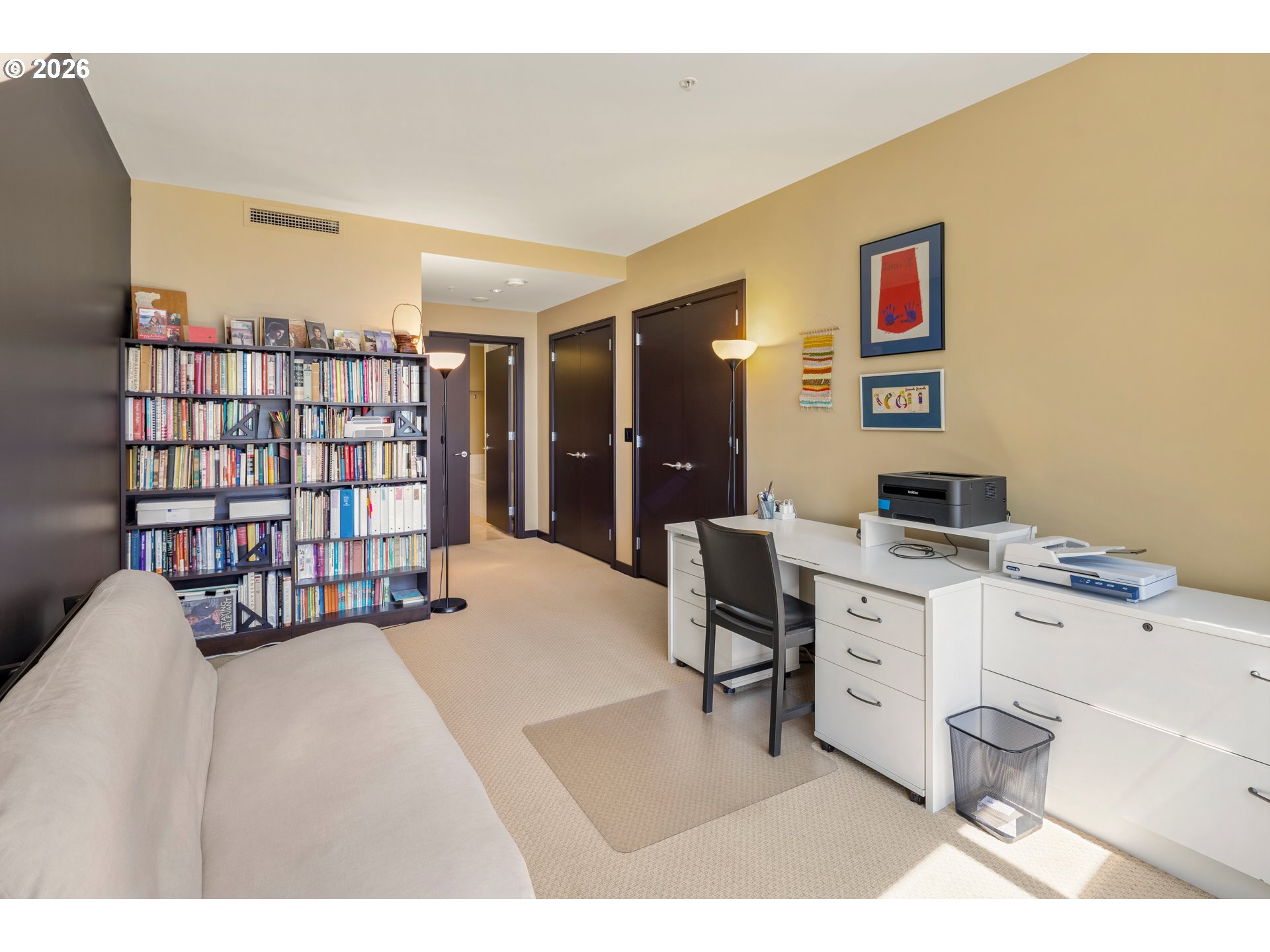 This stunning 2 bedroom, 2 parking spot south waterfront condo features one of the most sought after floor plans in all of the prestigious Meriwether Building. The large gourmet kitchen features custom cabinets, quartz countertops, two Miele convection ovens, gas cooktop with range hood, spacious island and ample storage. The gas-plumbed covered balcony offers space for year-round enjoyment with views of the Willamette River, Mt. Hood and city. The inviting living room has a cozy gas fireplace, large dining space perfect for hosting and an adjoining multi-functional den/flex space. The primary ensuite offers high end carpet, double closets with custom built ins and a beautiful bathroom. The spare bedroom is strategically placed on the other end of the unit and enjoys close proximity to second bathroom and beautiful city views. The coveted Meriwether offers an abundance of lifestyle amenities including 24/7 concierge, a large recreation room for parties/events, private guest parking, rentable guest suite, bike & kayak storage and beautiful courtyards. So close to the Riverwalk, shopping, restaurants, streetcar, OHSU and all the south waterfront has to offer!