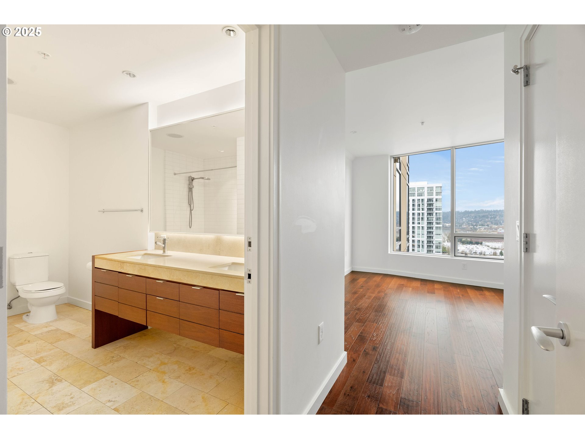 Fantastic opportunity to own a two bedroom home with 2 parking & storage in the coveted Meriwether in South Waterfront. This home features panoramic North to South views of the Willamette River, west hills, city, bridges, and Mt St Helens. This desirable floor plan features a large ensuite primary bedroom, spacious kitchen with pantry & covered balcony. Home has been upgraded & elevated with wood floors throughout & elegant crown moulding. Building amenities include 24/7 concierge, a rentable guest suite, private guest parking & kayak storage. Enjoy life in the beautiful South Waterfront along the river with parks, restaurants, shops, fitness studios, Greenway, OHSU, Streetcar & more.