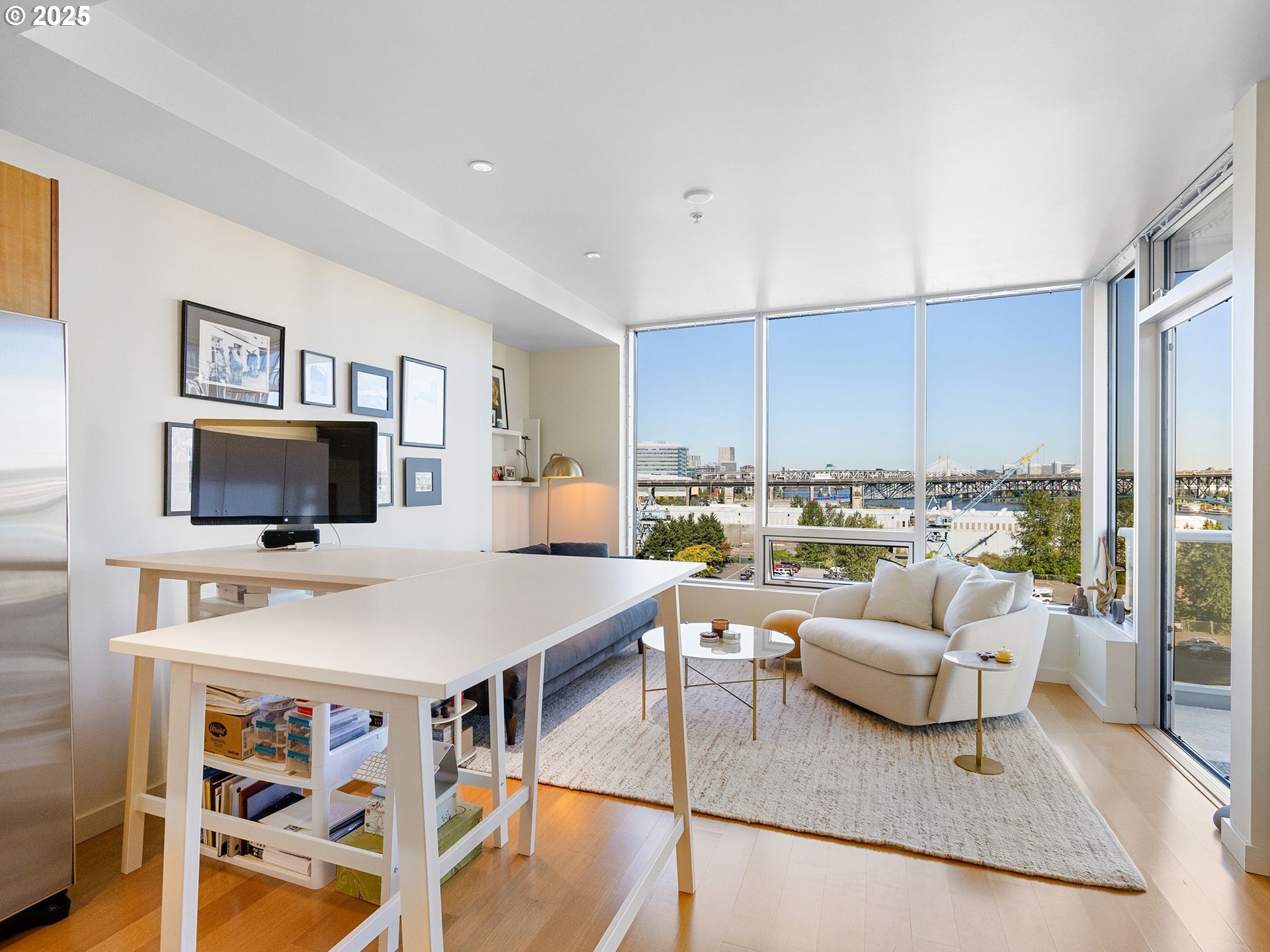 Elevated above the city, this stunning corner home at The Meriwether brings incredible views of Portland’s skyline, the Willamette River, and the surrounding mountains. Bright and open, this one-bedroom, one-bath home features floor-to-ceiling windows, a chef’s kitchen, and a generously sized balcony perfect for any time of day. Residents enjoy great perks like a full-time lobby attendant, EV charging, secure parking, a community room, and landscaped outdoor spaces with gardens, a water feature, and a bocce court. Plus, there’s a private access gate to the South Waterfront Greenway, making it easy to walk to parks, shops, and restaurants. This is truly a one-of-a-kind home in one of Portland’s most hip neighborhoods.