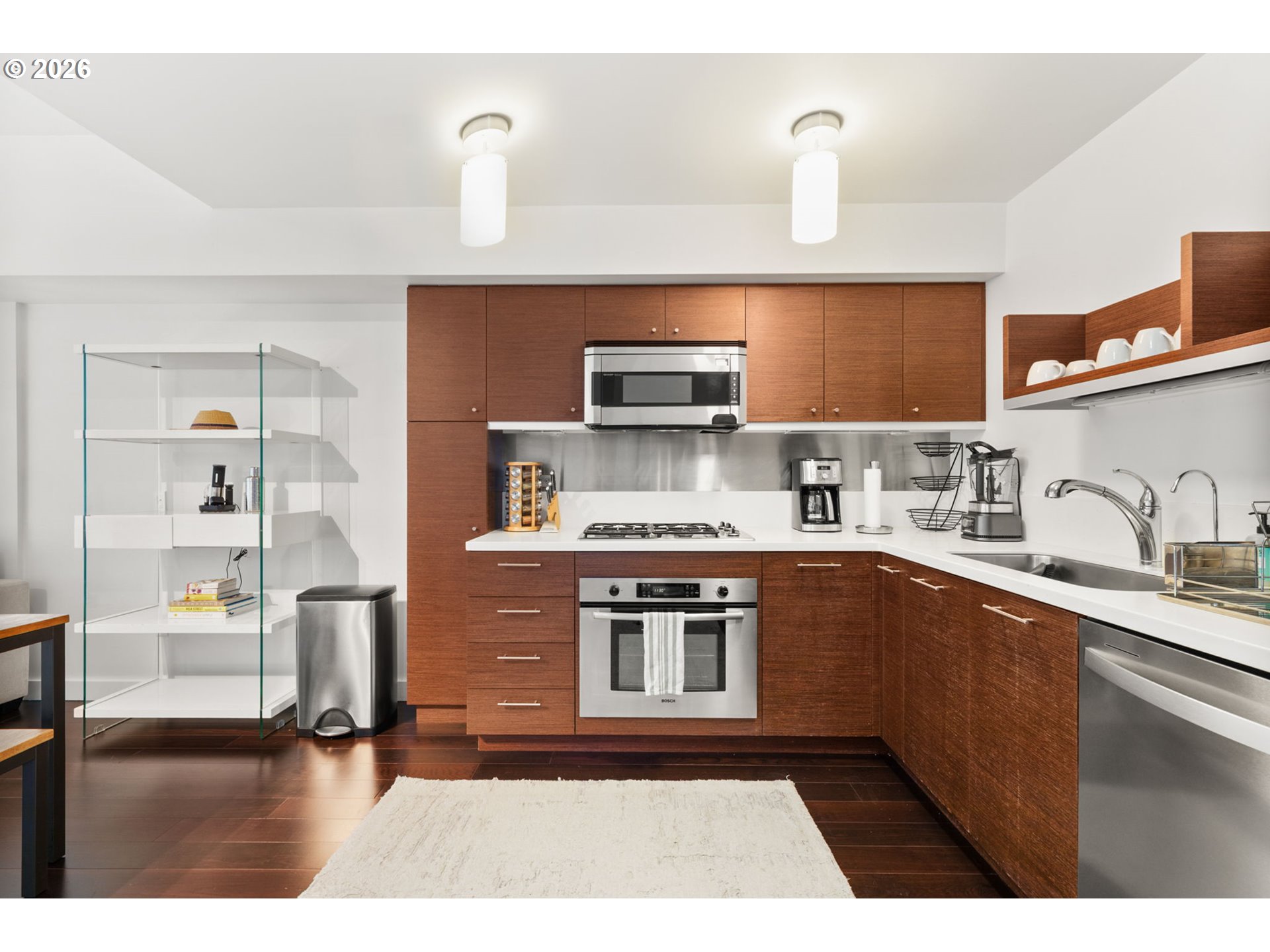 (503) 893-8874Welcome to this beautifully appointed residence in the heart of Portland’s vibrant South Waterfront. Unit #305 at the John Ross is a true one bedroom floorplan that offers a perfect blend of modern comfort and urban convenience, featuring an open-concept layout with expansive west facing windows that fill the space with natural light. The well-designed kitchen boasts sleek cabinetry, quality appliances, and ample counter space — ideal for both everyday living and entertaining. The spacious living area flows seamlessly to a private balcony, providing a peaceful retreat with serene views. The bedroom flows to a private balcony and features a walk-in closet, while the bathroom is thoughtfully finished with contemporary fixtures. Additional highlights include in-unit laundry, secure building access, and deeded parking. Residents enjoy access to premium amenities and a prime location just steps from the riverfront, walking trails, OHSU, shops, dining, and public transit. Whether you’re seeking a primary residence or a low-maintenance city retreat, this home delivers exceptional lifestyle and value in one of Portland’s most sought-after neighborhoods.