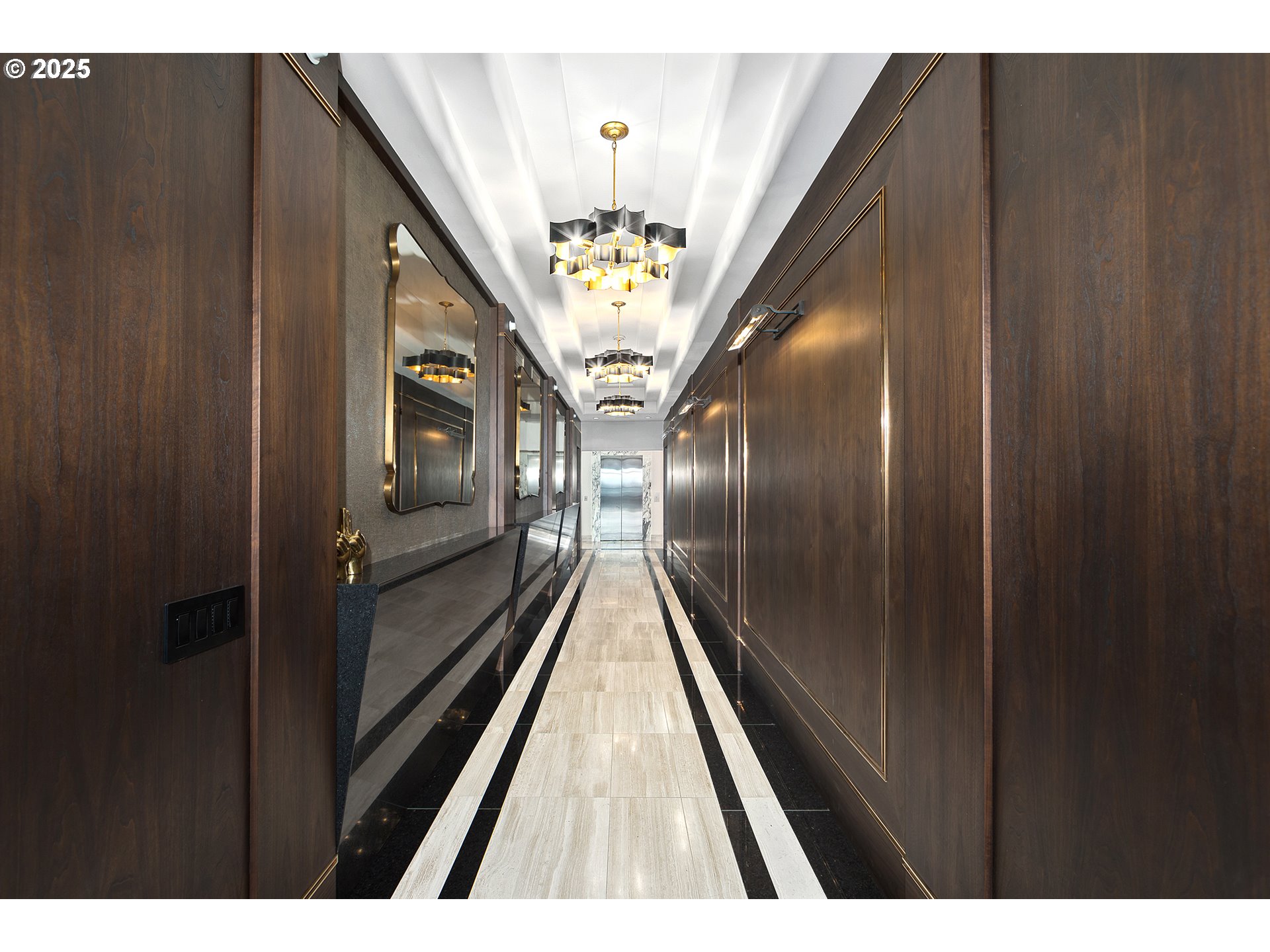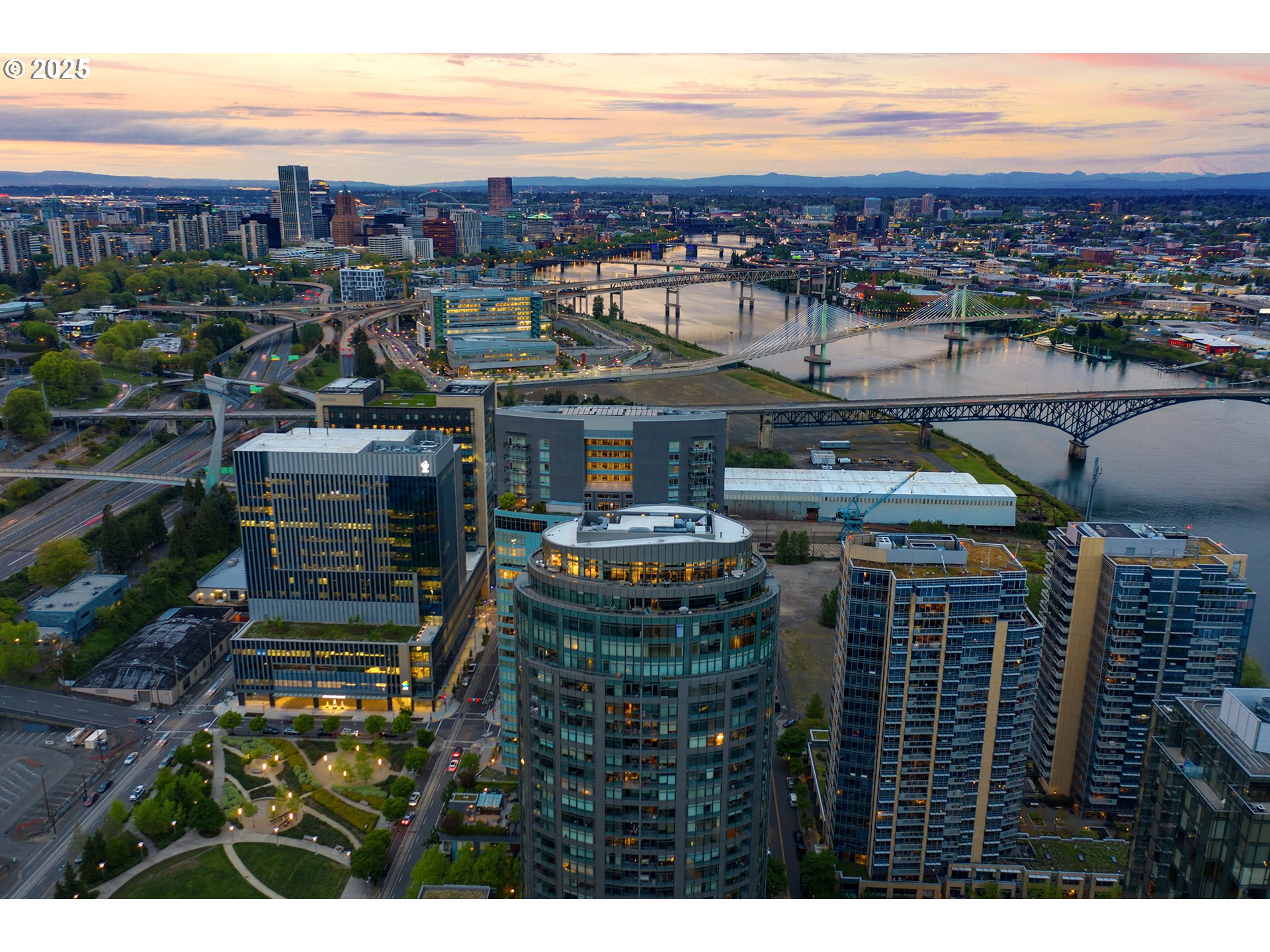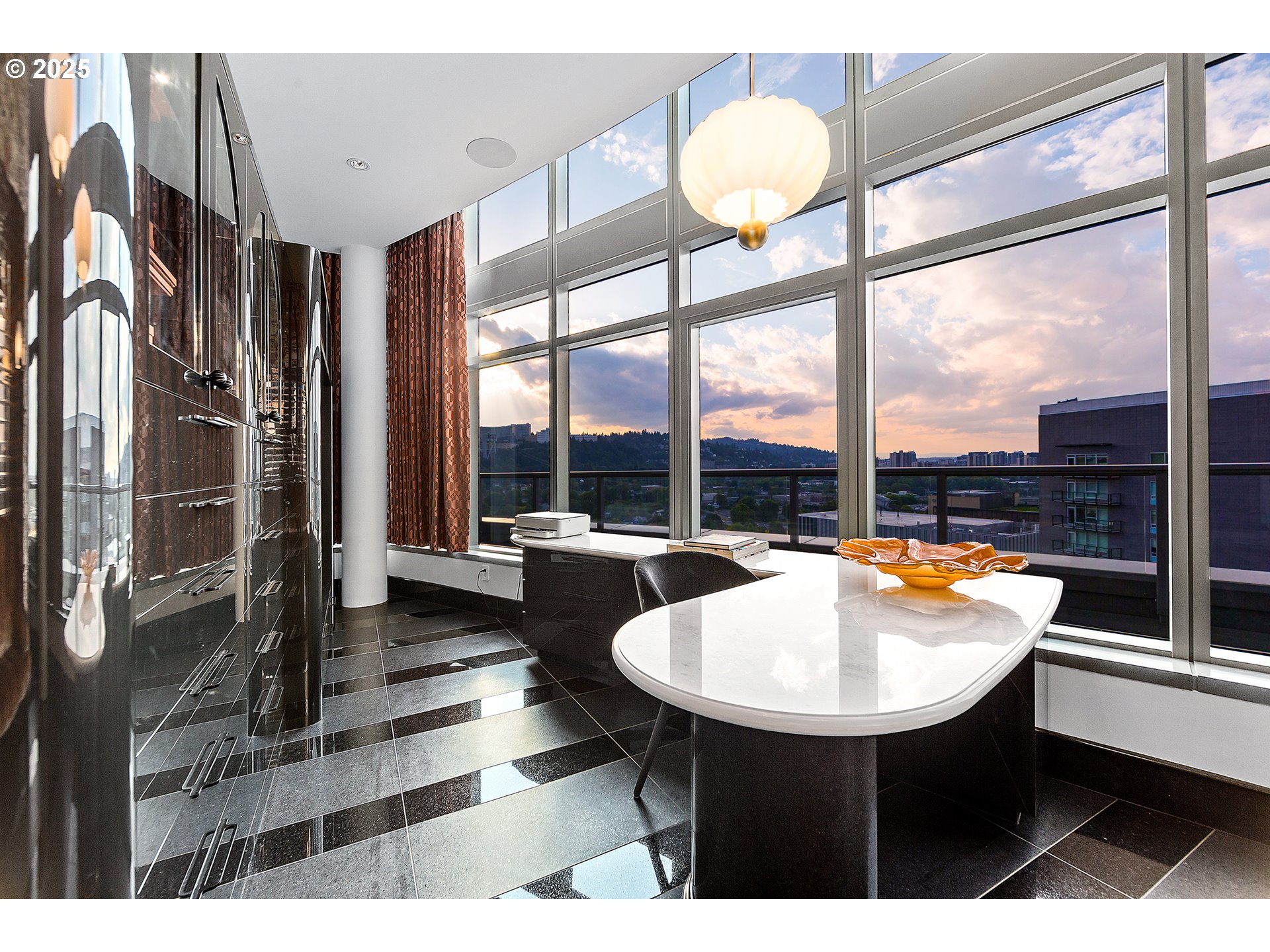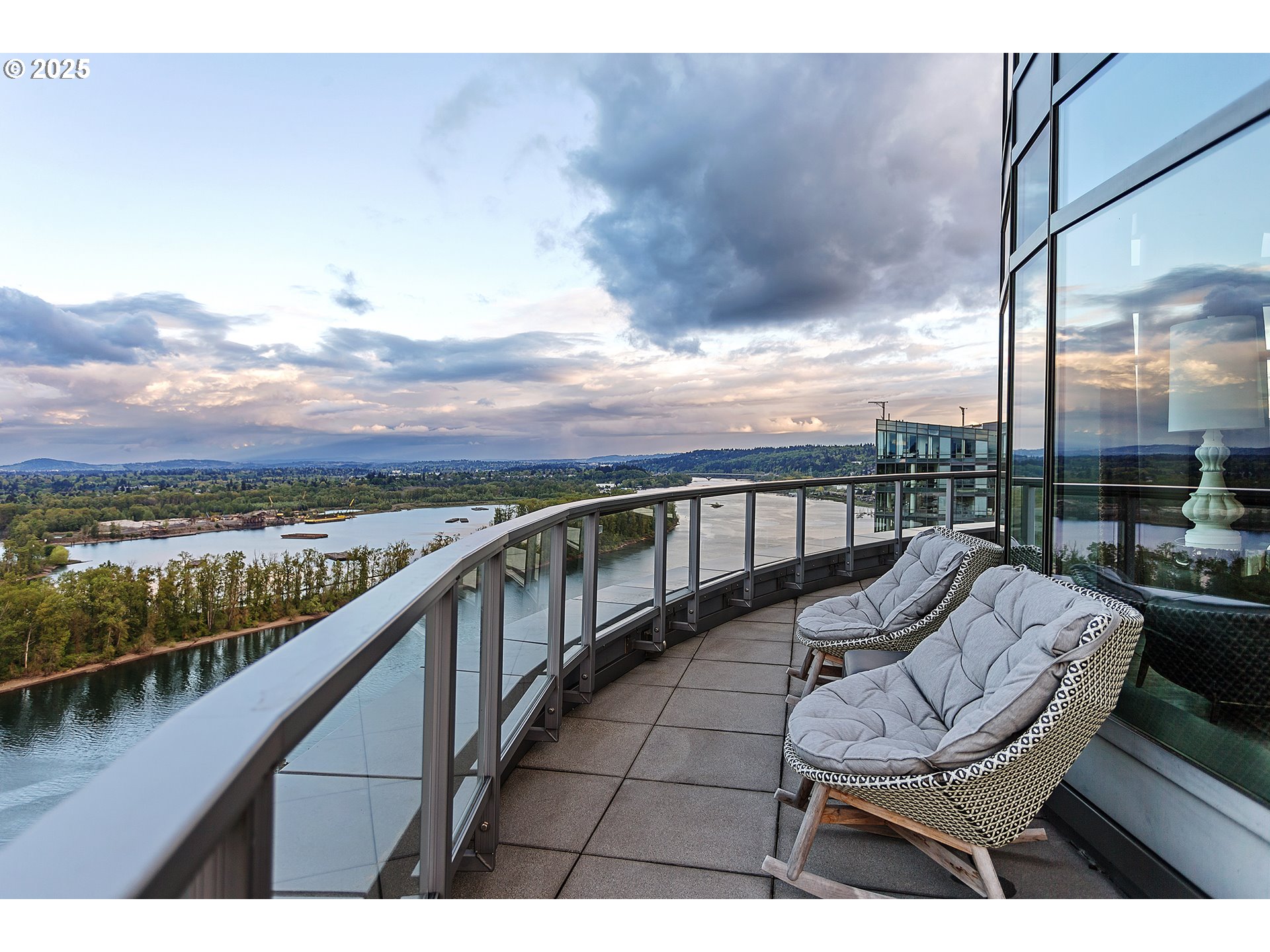 Live at the pinnacle of Portland luxury in this one-of-a-kind full-floor penthouse atop the iconic John Ross in the South Waterfront. Perched 325 feet above the city, this 4,865 sqft residence offers unmatched 360-degree views of Mt. Hood, the Willamette River, city lights, and surrounding mountains from every room and its private 2,094 sq ft wraparound terrace. Privately accessed via elevator, this 4 bed, 4.5 bath home is a masterclass in custom design, featuring rich natural materials, dramatic lighting, and luxe finishes hand-selected in Milan. The living spaces flow elegantly, perfect for both intimate evenings and grand entertaining. Highlights include a walnut-paneled hallway with inlaid marble floors, a show-stopping living room with mountain views, a striking bronze chandelier, and seamless access to the expansive terrace. The gourmet kitchen features floor-to-ceiling custom cabinetry, Ciopllini marble slab backsplash, Miele appliances, and a waterfall walnut/concrete island. A lounge with built-in bar, burl wood accents, and custom snakeskin glass cabinetry adds flair. The formal dining room features a smoked glass/marble Roche Bobois table and glass-enclosed wine cellar. The primary suite is a private sanctuary with city views, patio access, and a lavish ensuite with marble soaking tub, rose gold fixtures, and Gessi Italian sinks. Three additional oversized bedrooms each feature ensuite baths. Includes 4 parking spaces, private storage, 24/7 concierge, gym, and access to the Greenway Trail. This is Portland penthouse living at its finest—exclusive, elevated, and unforgettable.