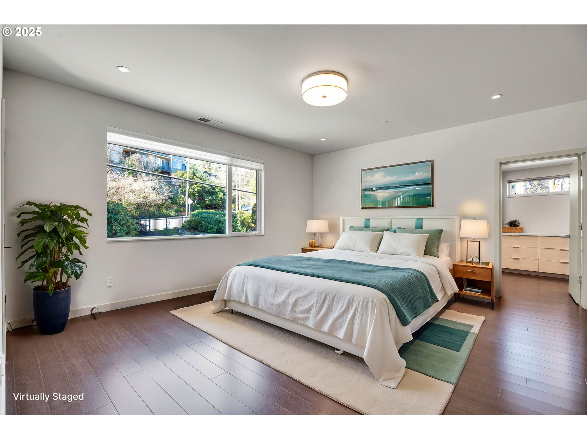 Experience the pinnacle of luxury living in this modern masterpiece nestled in the historic Willamette Heights neighborhood. Built in 2015, this stunning home offers a harmonious blend of contemporary design, comfort, and natural beauty. Interior Features: Open-Concept Living Area: Towering windows frame serene views of the surrounding green space, complemented by vaulted ceilings and a cozy gas fireplace. Gourmet Kitchen: Equipped with quartz countertops, stainless steel appliances, a pot filler, instant hot water, and custom cabinetry, this kitchen is both functional and stylish. Primary Suite: A spa-like retreat featuring a lavish shower, heated floors, and a spacious soaking tub. Additional Suites: Two more spacious bedroom suites provide comfort and privacy. Extra Spaces: Includes a separate gym space and a pre-installed area for a future elevator shaft, enhancing accessibility. Exterior Features: Composite Decks: Multiple decks offer perfect venues for year-round entertaining and relaxation. Low Maintenance: Features like a metal roof, tankless water heater, and LED lighting throughout ensure ease of upkeep. Oversized Garage: Includes electric car charging capabilities, catering to modern needs. Location Highlights: Situated just minutes from some of Portland's finest restaurants and Providence Park, this home offers both tranquility and convenience. The Willamette Heights neighborhood is renowned for its historic charm and lush surroundings, providing a serene backdrop for this contemporary residence.