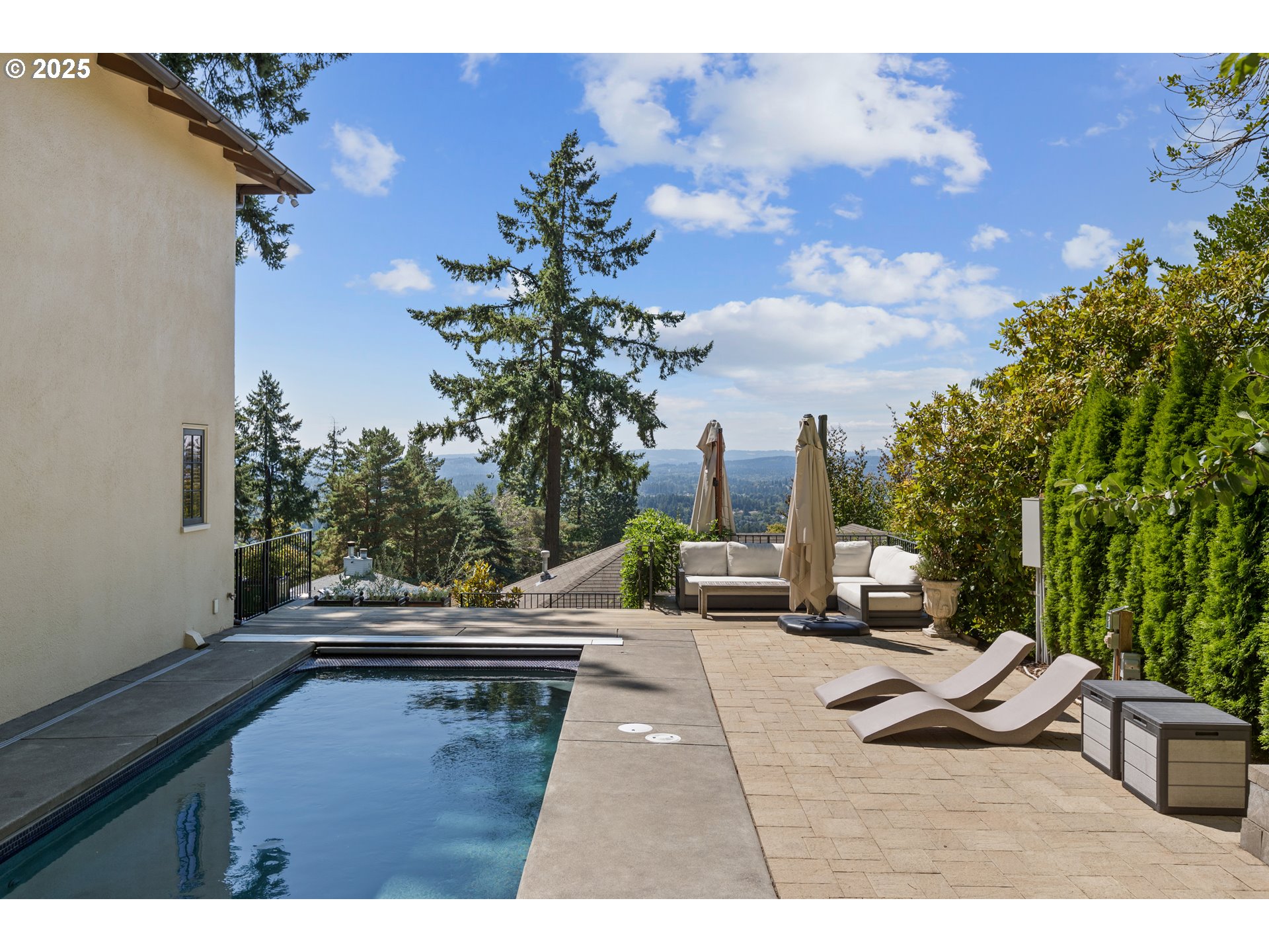 Mediterranean Retreat in Portland’s Coveted West Hills – Private, Versatile & Full of Character. Situated on a peaceful 1.31-acres in the prestigious West Hills, this extraordinary Mediterranean-style estate offers a rare combination of timeless elegance, modern updates, and incredible versatility—ideal for multigenerational living, entertaining, or generating income through a private guest space or short-term rental.The main residence (4,289 sq ft) was extensively rebuilt and remodeled in 2015–2016 and features 3 spacious bedrooms, 3.1 bathrooms, and multiple flex spaces on the lower level. Soaring ceilings, oversized windows, French doors, and multiple terraces invite in abundant natural light and capture stunning territorial views. The expansive family room boasts hardwood floors, a wet bar, and architectural charm, while the elegant living/dining room features a fireplace and Mediterranean accents. A chef’s dream kitchen awaits with an 8-burner Wolf gas stove, butcher block island, and sunny breakfast nook. Hardwood floors flow throughout the main and upper levels, creating a cohesive and warm atmosphere.A separate 1,557 sq ft ADU adds tremendous value and flexibility with 2 bedrooms, 1.1 bathrooms, a main-level office/den, and a spacious living room with a gas fireplace. custom wood shutters and quality finishes throughout make it ideal for guests, extended family, or as a high-demand rental.The outdoor living is equally impressive: enjoy a private in-ground pool, expansive patio with a built-in pizza oven, and mature landscaping that provides a peaceful, secluded setting for both entertaining and relaxation.A truly unique opportunity to own a private sanctuary just minutes from downtown Portland—offering luxury, privacy, and exceptional lifestyle potential