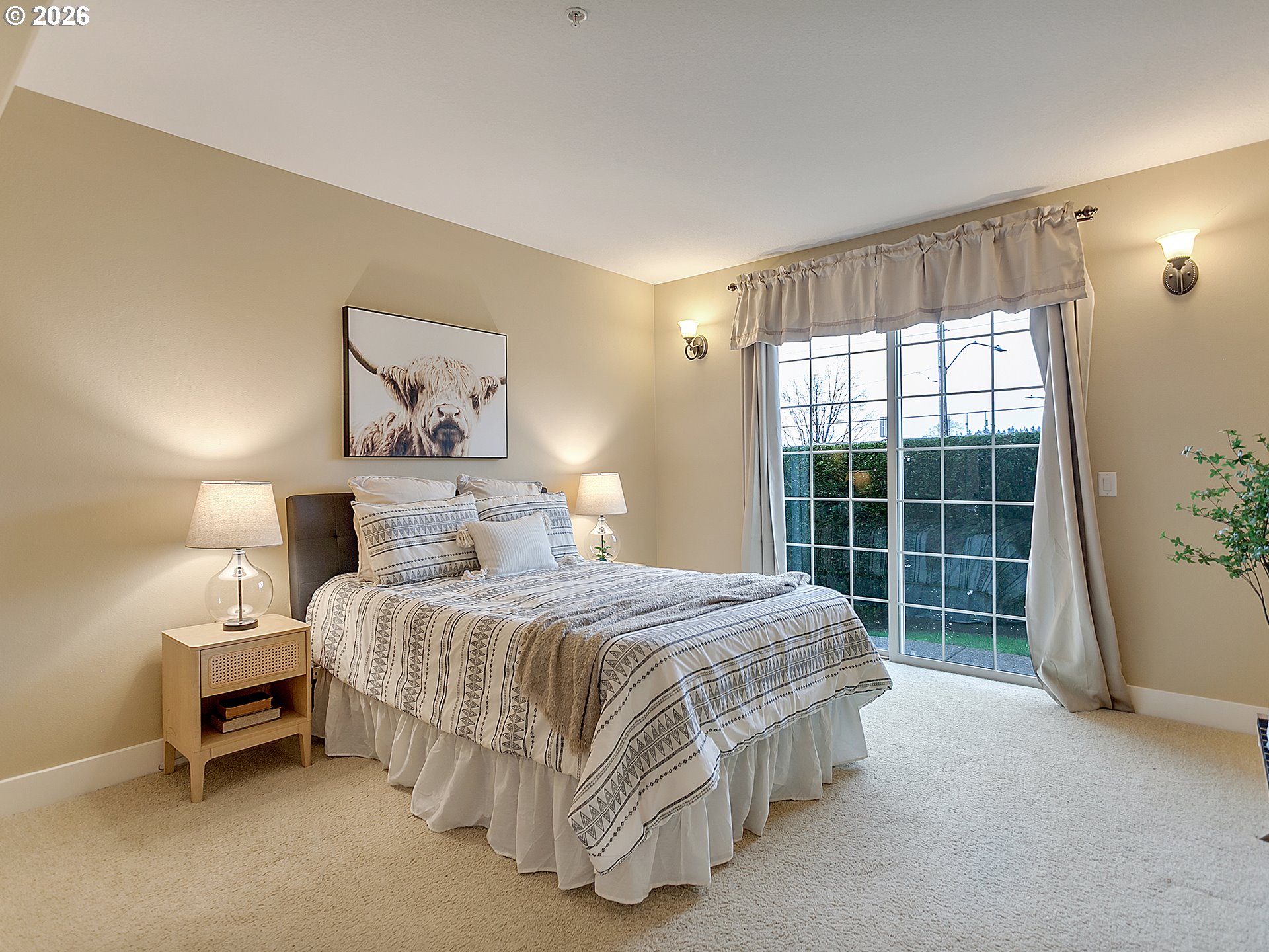 Welcome to this stylish 2-bedroom, 2-bath condo in a prime Portland location, where comfort meets convenience. Gorgeous hard floors run throughout the living spaces, leading to a warm and inviting living room with a cozy fireplace and easy access to the backyard, complete with a BBQ gas hookup perfect for weekend gatherings. The dining room features elegant wainscoting, adding charm to your meals, while just off the kitchen is a convenient laundry room, making chores effortless. The kitchen is a chef’s dream, featuring ample counter space, a convenient eating bar, and modern appliances, plus a small desk perfect for working from home or staying organized while cooking. The primary suite is a true retreat, complete with a walk-in closet, a walk-in shower, and a soaking tub made for relaxing after a long day. The second full bathroom offers a shower/tub combo ideal for guests. Located in desirable Southwest Portland, this home offers easy access to parks, shopping, dining, and major commuter routes, making it an ideal spot for both everyday living and getting around the city with ease. With bright, thoughtfully designed spaces and seamless indoor-outdoor flow, this condo effortlessly blends comfort with a touch of luxury.